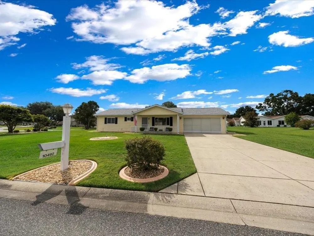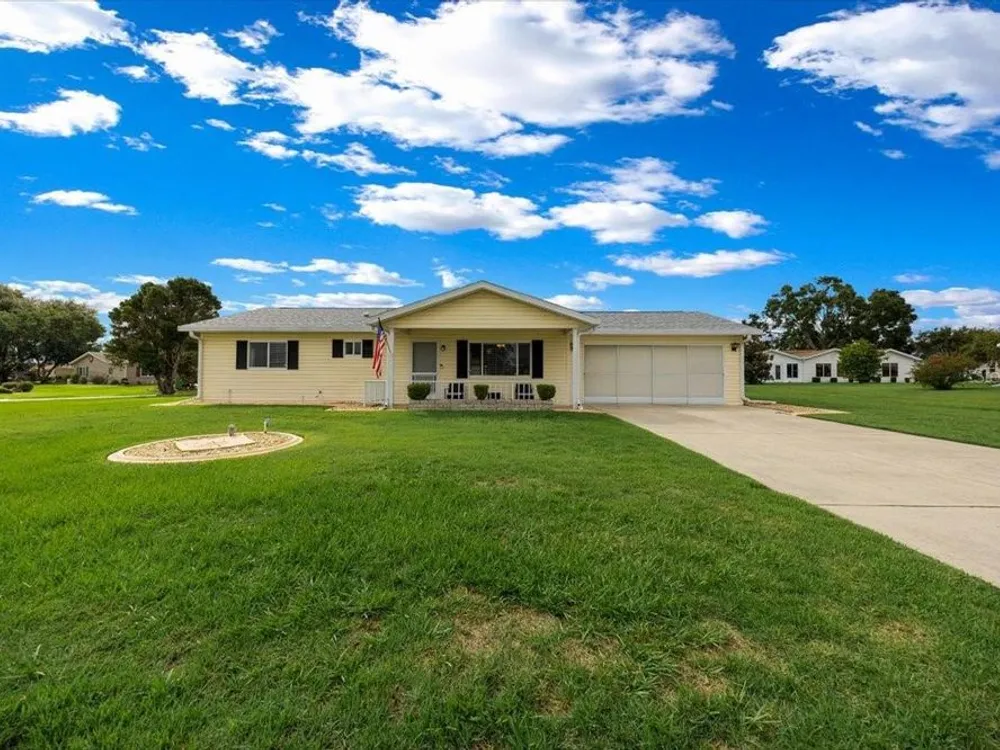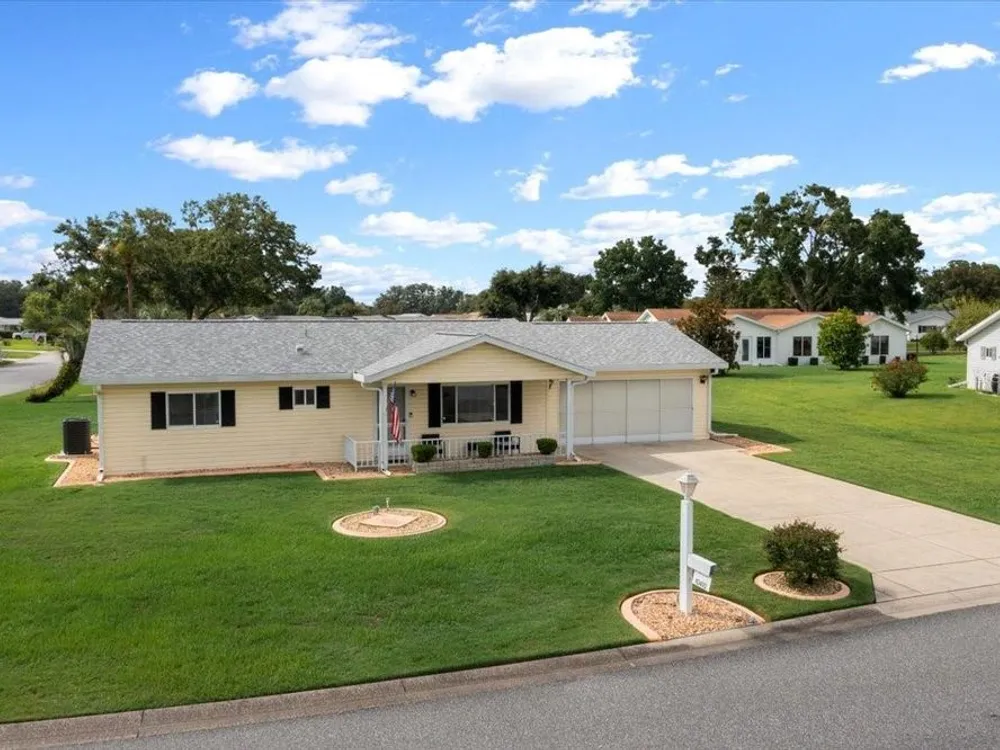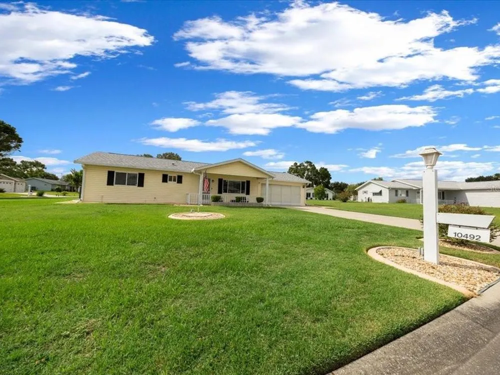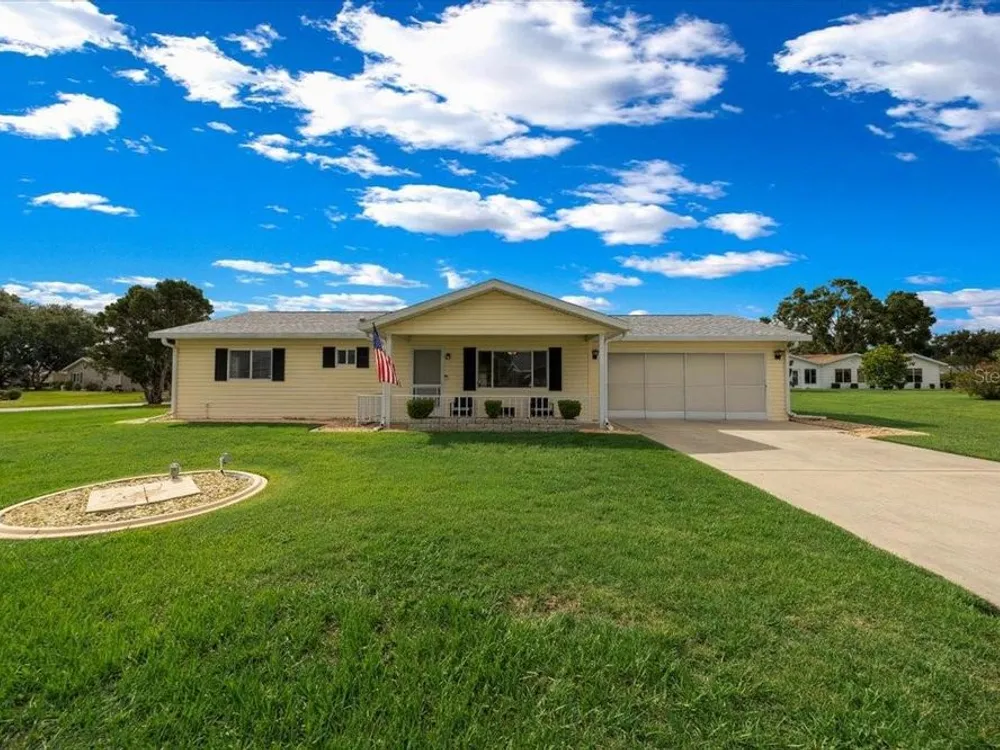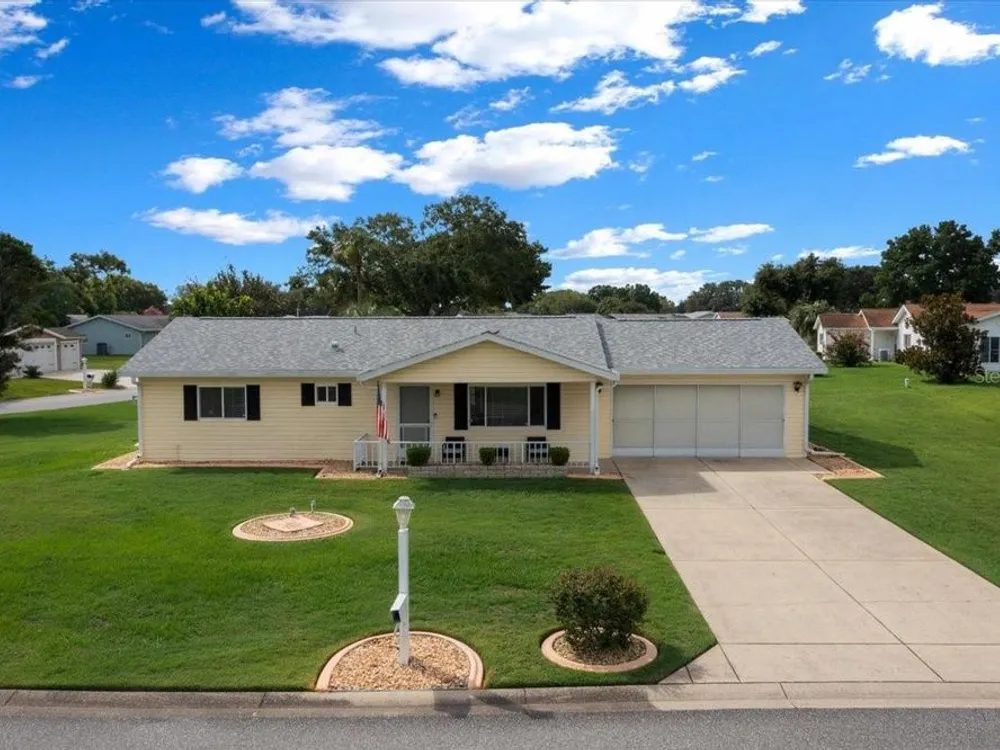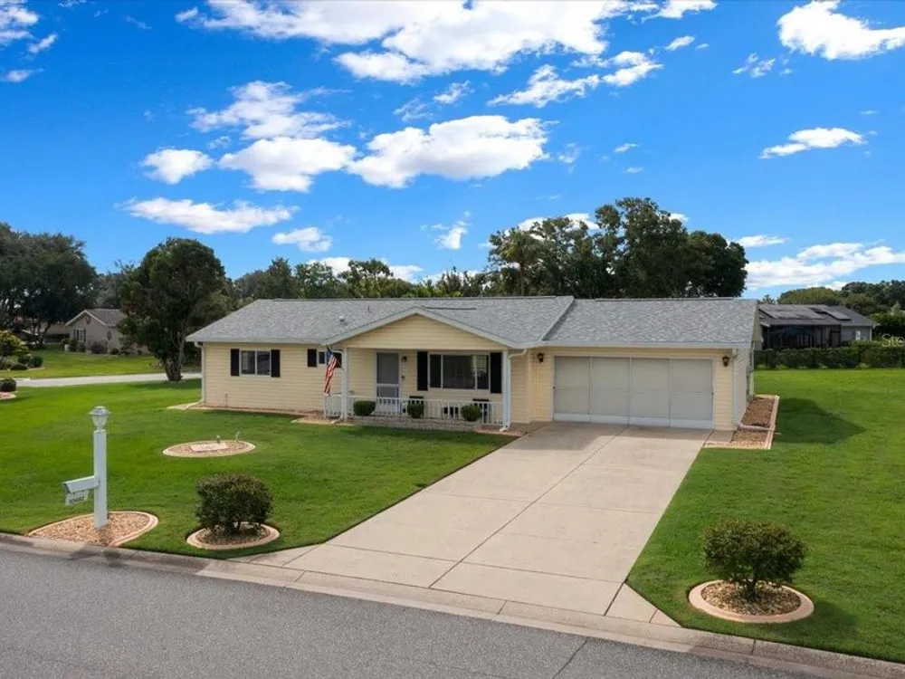 Graciously positioned on a .3-acre corner lot in Spruce Creek South, this updated 2-bedroom, 2-bath Evergreen model has a strong street presence with added breathing room in one of Summerfield’s premier 55+ golf communities. From the front, a curbed landscape frames the home with neat edges and inviting charm, and the wide front porch creates a welcoming entry with plenty of room to sit, stay awhile, and quietly take in the neighborhood. Inside, porcelain tile extends across the main living areas met by fresh paint, Bali window treatments, updated 6-panel doors, and new AC vent covers + ceiling fans in every room. Crisp and bright, the kitchen is smartly arranged with granite counters, stainless appliances, and a built-in microwave to suit the everyday cook. Sliding doors from the dining room open onto a full-length lanai lined with vinyl windows and cooled by ceiling fans. It lives like part of the interior, with space that supports year-round use and adds flexibility to the home's overall layout. The primary suite is spacious and serene, with a walk-in closet and renovated ensuite that includes soft-close cabinetry, granite surfaces, and a Bathfitter shower finished with classic subway tile. A generous guest room includes a walk-in closet and convenient access to a refreshed full bath with updated vanity, modern lighting, and a convenient tub-shower combination. Storage and utility are quite exceptional here. The two-car garage includes a new opener with security camera, insulated panels, attic access via built-in ladder, and updated springs. At the back of the property, a separate golf cart garage with roll-up door offers space for hobbies or seasonal storage. Recent improvements include a 2021 roof, 2023 HVAC, 2024 water heater, and a new electrical panel installed in 2025. The irrigation system, installed in 2022, is WiFi-enabled and fully operational. Kitchen appliances were replaced in 2023, with washer and dryer updated in 2024. Septic inspected and pumped 2024. Termite inspection July 2025 with transferable warranty. Spruce Creek South surrounds the Links Golf Course, an 18-hole, par-72 championship course designed by Terry Doss. Residents also enjoy access to a clubhouse, fitness center, pool, pub, library, billiards room, and an active schedule of social and recreational events. The community is located just minutes from The Villages, offering even more options for shopping, dining, and entertainment.