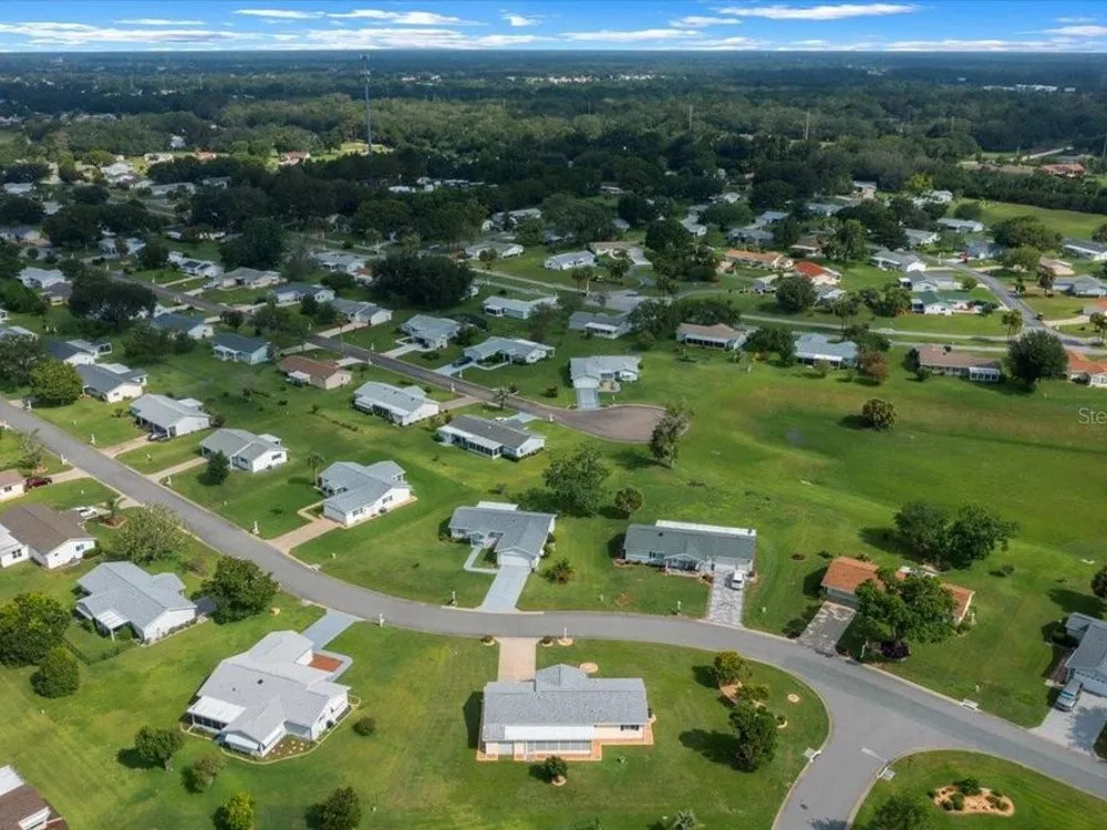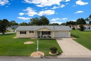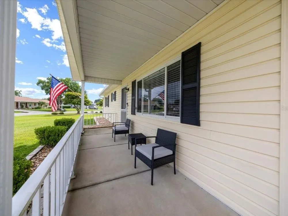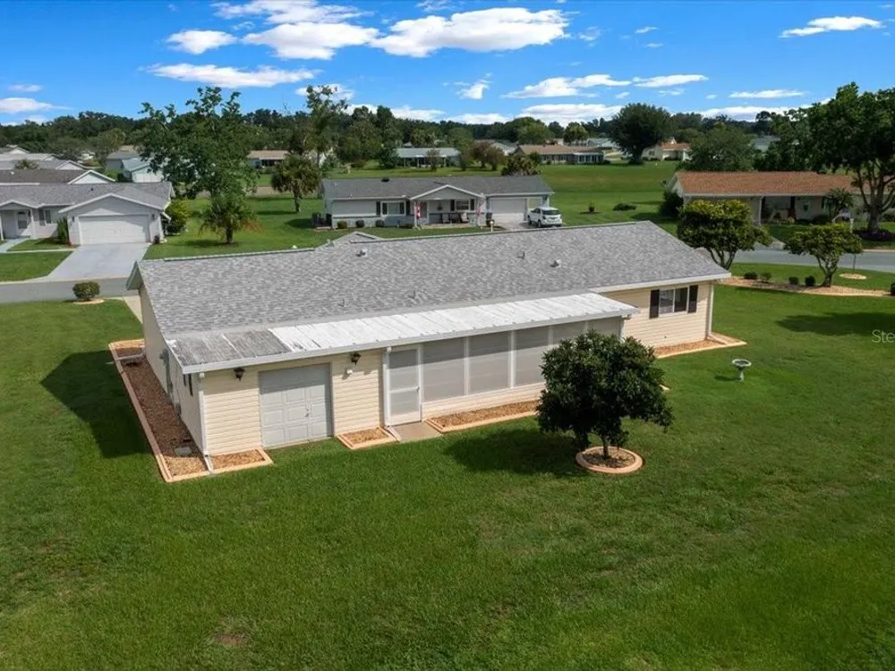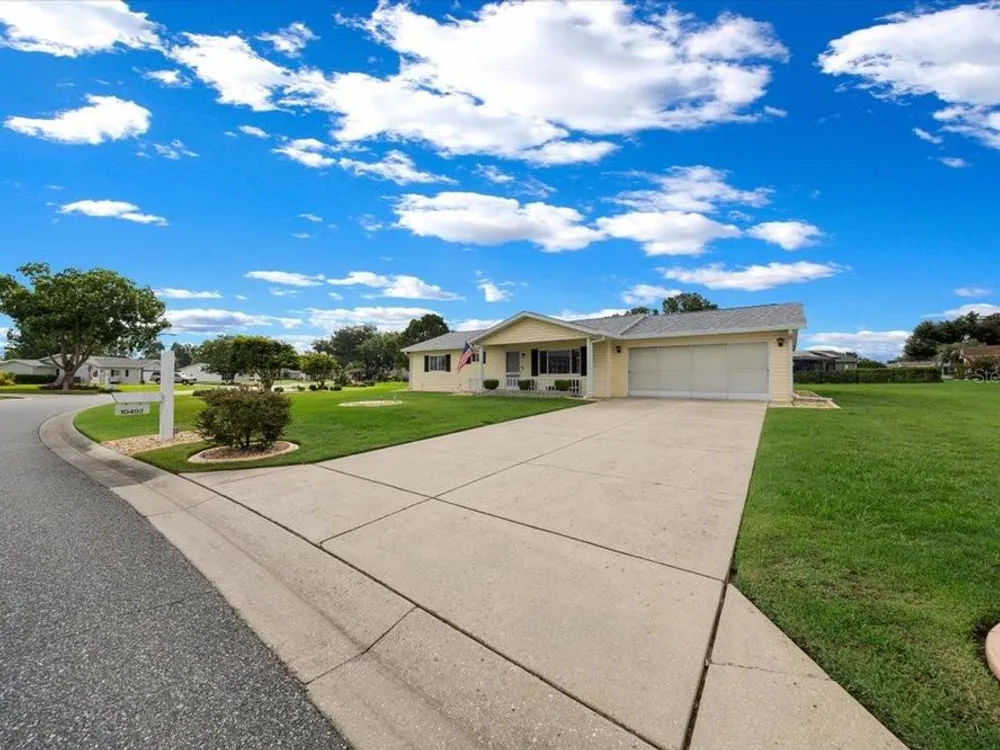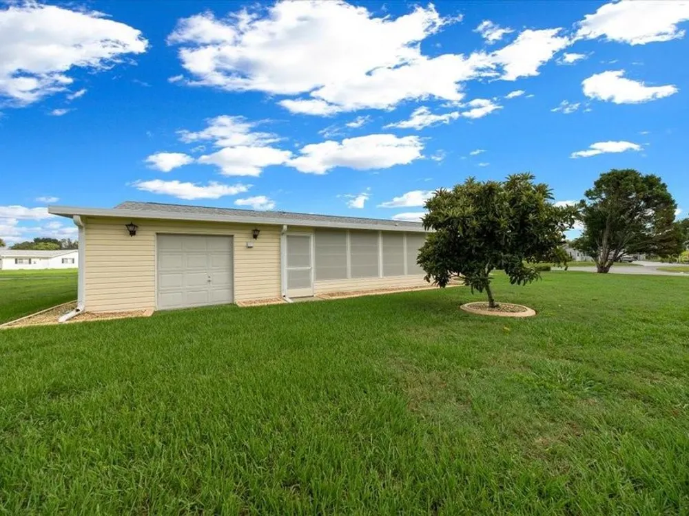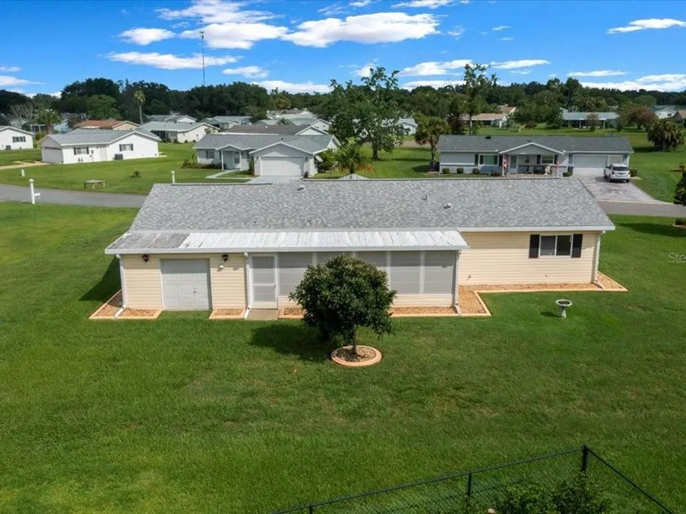 Graciously positioned on a .3-acre corner lot in Spruce Creek South, this updated 2-bedroom, 2-bath Evergreen model has a strong street presence with added breathing room in one of Summerfield’s premier 55+ golf communities. From the front, a curbed landscape frames the home with neat edges and inviting charm, and the wide front porch creates a welcoming entry with plenty of room to sit, stay awhile, and quietly take in the neighborhood. Inside, porcelain tile extends across the main living areas met by fresh paint, Bali window treatments, updated 6-panel doors, and new AC vent covers + ceiling fans in every room. Crisp and bright, the kitchen is smartly arranged with granite counters, stainless appliances, and a built-in microwave to suit the everyday cook. Sliding doors from the dining room open onto a full-length lanai lined with vinyl windows and cooled by ceiling fans. It lives like part of the interior, with space that supports year-round use and adds flexibility to the home's overall layout. The primary suite is spacious and serene, with a walk-in closet and renovated ensuite that includes soft-close cabinetry, granite surfaces, and a Bathfitter shower finished with classic subway tile. A generous guest room includes a walk-in closet and convenient access to a refreshed full bath with updated vanity, modern lighting, and a convenient tub-shower combination. Storage and utility are quite exceptional here. The two-car garage includes a new opener with security camera, insulated panels, attic access via built-in ladder, and updated springs. At the back of the property, a separate golf cart garage with roll-up door offers space for hobbies or seasonal storage. Recent improvements include a 2021 roof, 2023 HVAC, 2024 water heater, and a new electrical panel installed in 2025. The irrigation system, installed in 2022, is WiFi-enabled and fully operational. Kitchen appliances were replaced in 2023, with washer and dryer updated in 2024. Septic inspected and pumped 2024. Termite inspection July 2025 with transferable warranty. Spruce Creek South surrounds the Links Golf Course, an 18-hole, par-72 championship course designed by Terry Doss. Residents also enjoy access to a clubhouse, fitness center, pool, pub, library, billiards room, and an active schedule of social and recreational events. The community is located just minutes from The Villages, offering even more options for shopping, dining, and entertainment.