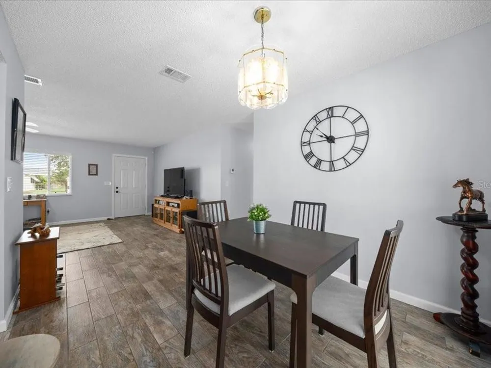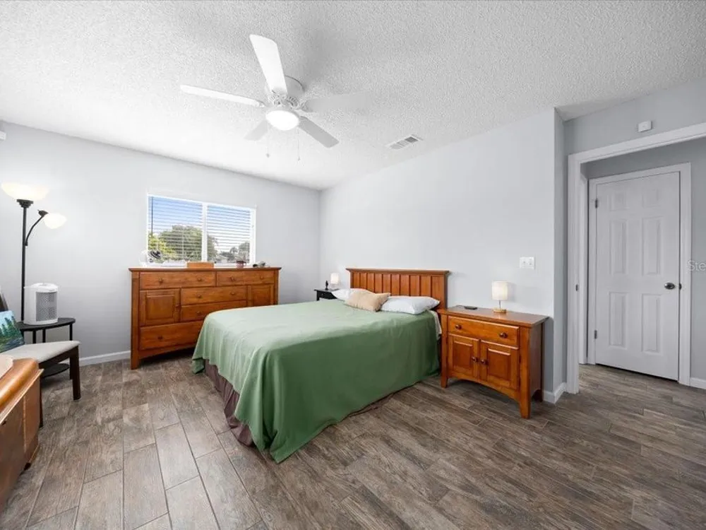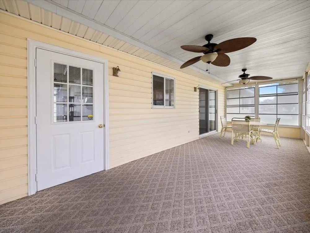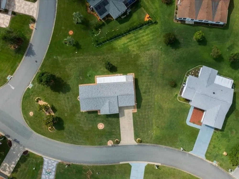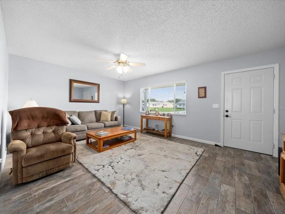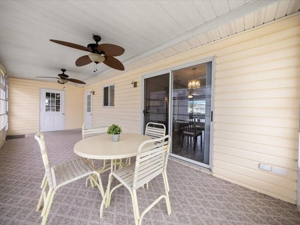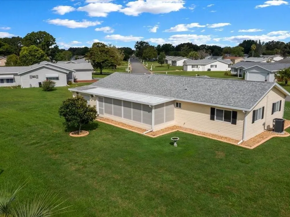 Graciously positioned on a .3-acre corner lot in Spruce Creek South, this updated 2-bedroom, 2-bath Evergreen model has a strong street presence with added breathing room in one of Summerfield’s premier 55+ golf communities. From the front, a curbed landscape frames the home with neat edges and inviting charm, and the wide front porch creates a welcoming entry with plenty of room to sit, stay awhile, and quietly take in the neighborhood. Inside, porcelain tile extends across the main living areas met by fresh paint, Bali window treatments, updated 6-panel doors, and new AC vent covers + ceiling fans in every room. Crisp and bright, the kitchen is smartly arranged with granite counters, stainless appliances, and a built-in microwave to suit the everyday cook. Sliding doors from the dining room open onto a full-length lanai lined with vinyl windows and cooled by ceiling fans. It lives like part of the interior, with space that supports year-round use and adds flexibility to the home's overall layout. The primary suite is spacious and serene, with a walk-in closet and renovated ensuite that includes soft-close cabinetry, granite surfaces, and a Bathfitter shower finished with classic subway tile. A generous guest room includes a walk-in closet and convenient access to a refreshed full bath with updated vanity, modern lighting, and a convenient tub-shower combination. Storage and utility are quite exceptional here. The two-car garage includes a new opener with security camera, insulated panels, attic access via built-in ladder, and updated springs. At the back of the property, a separate golf cart garage with roll-up door offers space for hobbies or seasonal storage. Recent improvements include a 2021 roof, 2023 HVAC, 2024 water heater, and a new electrical panel installed in 2025. The irrigation system, installed in 2022, is WiFi-enabled and fully operational. Kitchen appliances were replaced in 2023, with washer and dryer updated in 2024. Septic inspected and pumped 2024. Termite inspection July 2025 with transferable warranty. Spruce Creek South surrounds the Links Golf Course, an 18-hole, par-72 championship course designed by Terry Doss. Residents also enjoy access to a clubhouse, fitness center, pool, pub, library, billiards room, and an active schedule of social and recreational events. The community is located just minutes from The Villages, offering even more options for shopping, dining, and entertainment.