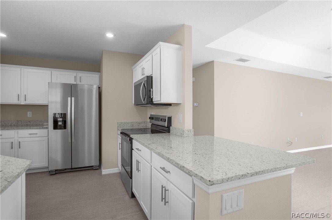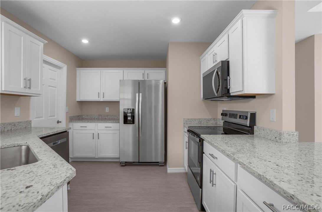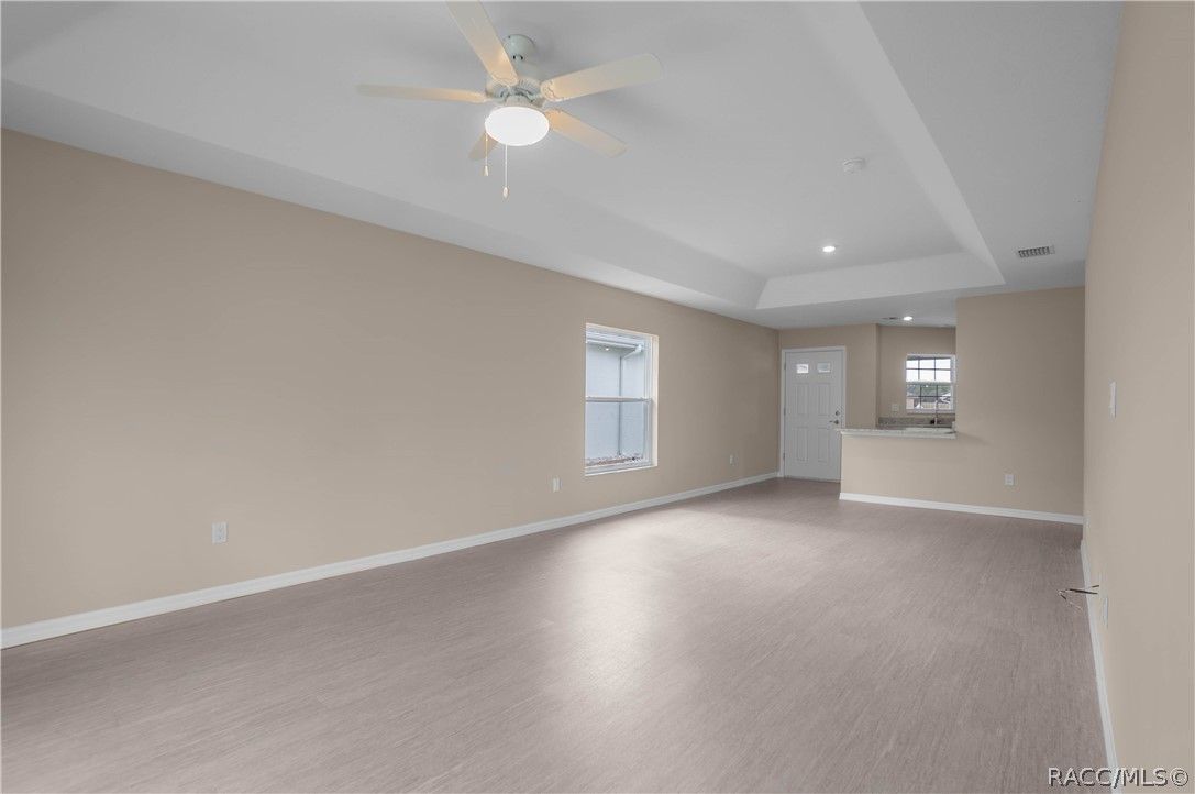 Welcome to the BRAND NEW Poinciana Model nestled in the beautiful 55+ community of Tarawood. This thoughtfully designed 3-bedroom, 2-bathroom residence with a 2-car garage offers 1,311 square feet of well-appointed living space, blending modern style with everyday comfort. The interior presents an inviting open-concept layout featuring a spacious living and dining combination highlighted with a tray ceiling and an abundance of natural light. The gourmet kitchen is functional, showcasing white Aristacraft cabinetry, granite countertops, stainless steel appliances, and a convenient breakfast bar—perfect for casual dining or entertaining guests. The primary suite offers a generous walk-in closet and a full en-suite bathroom and two additional bedrooms provide flexibility for guests, hobbies, or a home office. In addition, the home features luxury vinyl plank flooring throughout the main living areas, providing both durability and contemporary appeal, an interior laundry room, and a rear covered lanai ideal for relaxing or enjoying Florida’s beautiful weather. Experience low-maintenance living in a vibrant, active adult community in this exceptional new construction home designed for comfort, style, and ease Community amenities include cable, Wi-Fi, trash service, an exercise room, shuffleboard, horseshoe pit, and more offering plenty of opportunities for recreation and convenience. The location provides easy access to both Citrus and Hernando Counties. Schedule your showing today—don’t miss out on this fantastic opportunity!