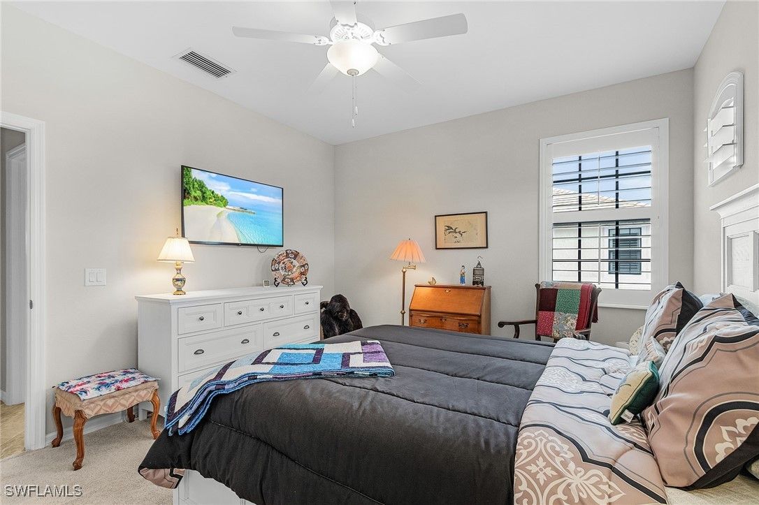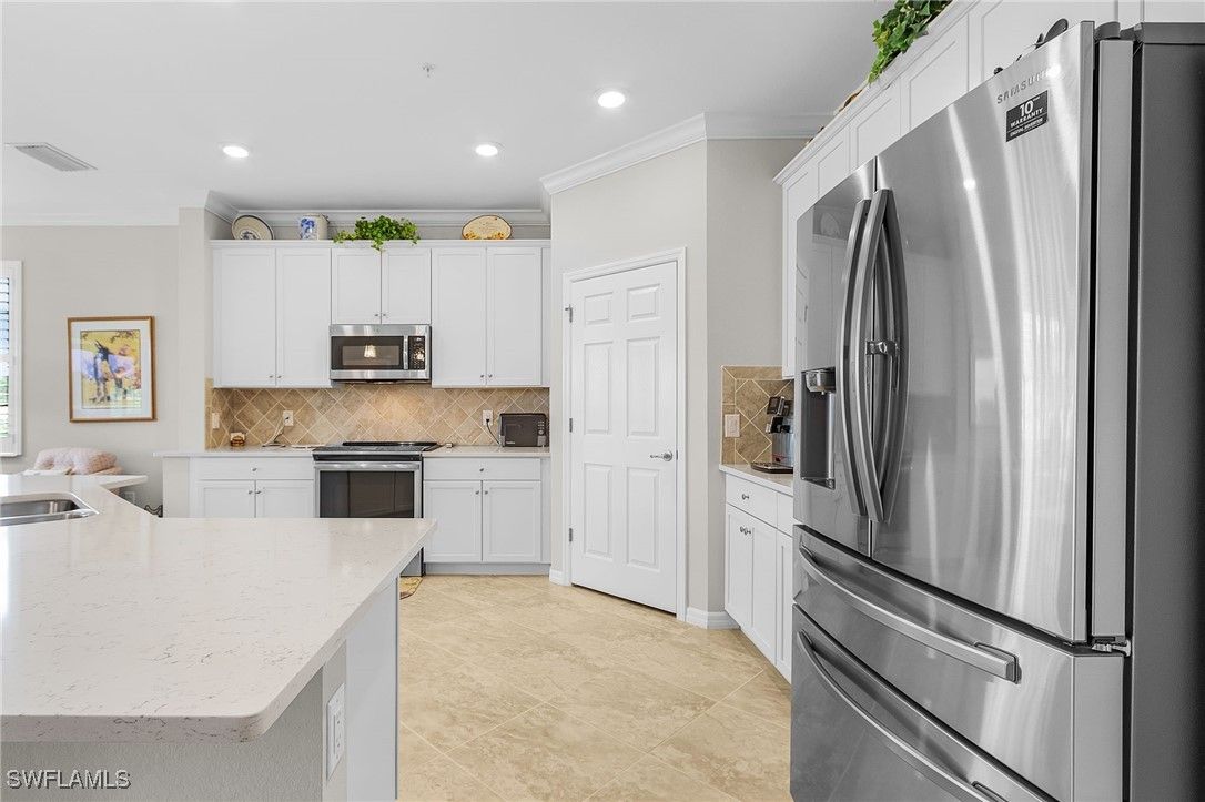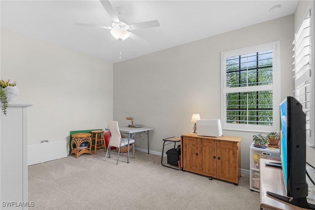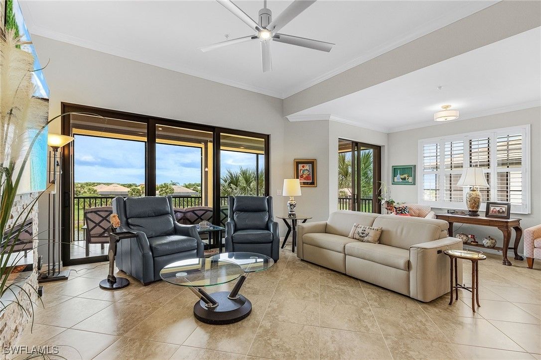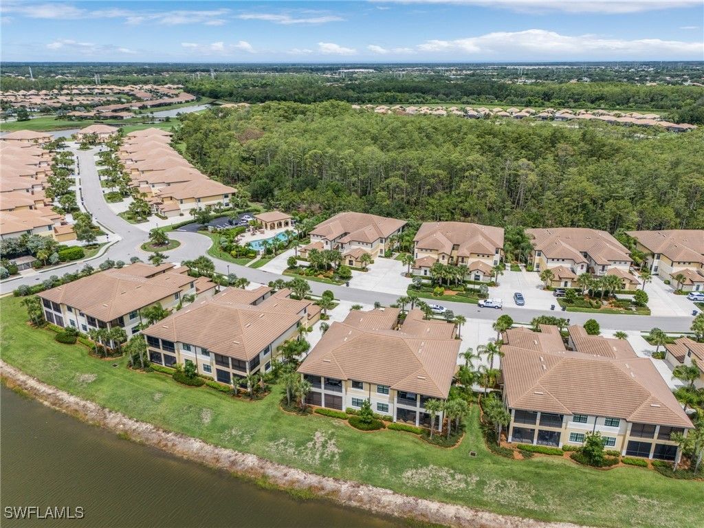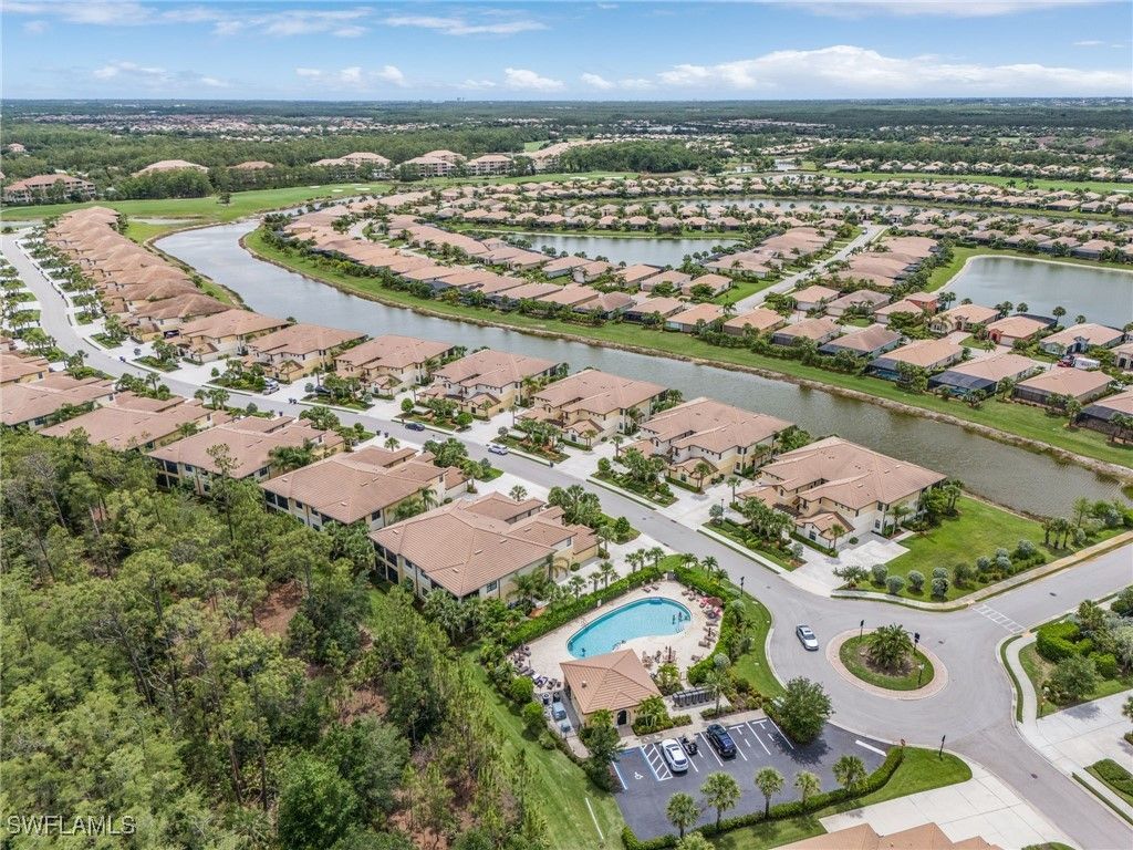 CASELLA II, the newest Carriage/Coach home neighborhood in Pelican Preserve! Lovely 2nd floor 3+Den, 2-bath, 2-car garage unit with PRIVATE ELEVATOR (as well as stairs) and tranquil water views. This one-owner, spacious condo features the following upgrades: * Custom stone entertainment center with electric fireplace feature *Plantation Shutters *New, elegant lighting fixtures and ceiling fans *STORM SMART electric shades *Tiled lanai flooring *GE Profile INDUCTION range, Bosch and Samsung kitchen appliances *Pull-outs in kitchen cabinets *Wood shelving in pantry closet *Swedish Engineered hardwood flooring in master bedroom *Hunter-Douglas power, room-darkening shades in master bedroom (windows and lanai access door) *AQUA SYSTEMS no scale whole house water system *Laundry room with upgraded washer & dryer, laundry sink and cabinets *UV lights on AC system *new stairway carpeting *EV CHARGER and overhead storage in 2-car attached garage. Pelican Preserve is a state-of-the-art, active "55 and better" community with a Town Center offering endless amenities, including 3 Pools, Fitness Center, Tennis, Pickleball, Bocce, Softball, “Destination’s Restaurant”, “Flip-Flops Poolside Grill”, Movie Theater, Billiards,Hobby rooms(including a full woodworking shop, sewing, ceramics, painting, etc. rooms) Amphitheater with live music, Card rooms, Coffee Center and many special events. Private golf memberships (27 holes) are available and optional.