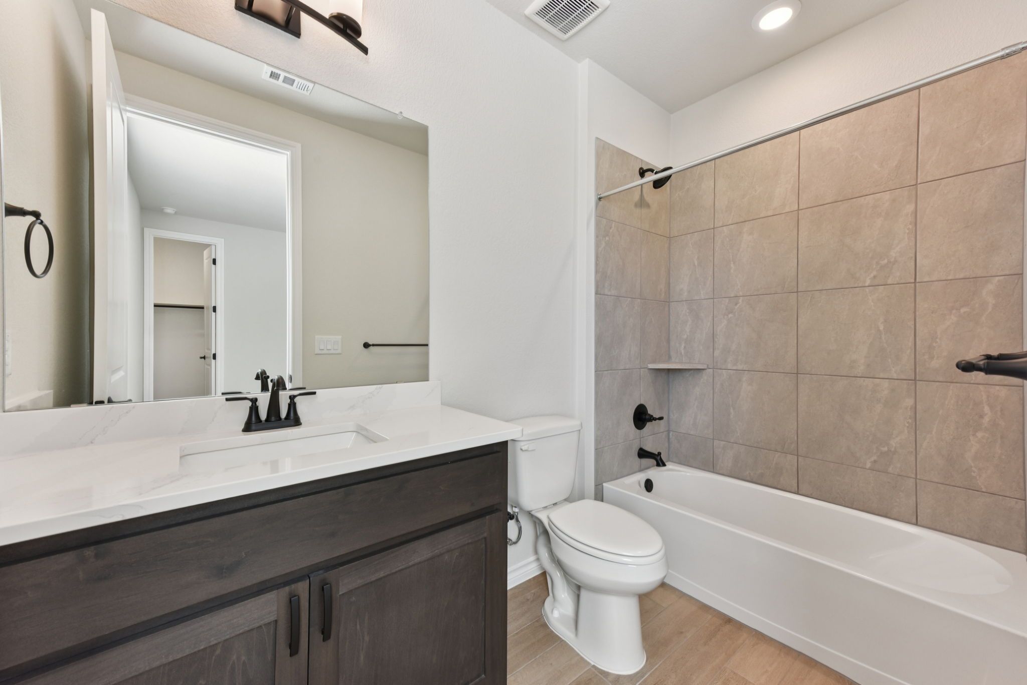 Burke plan with upgraded kitchen, quartz countertops, up graded SHORE flooring, 8' doors throughout, sliding glass door in living, Express cordless blinds