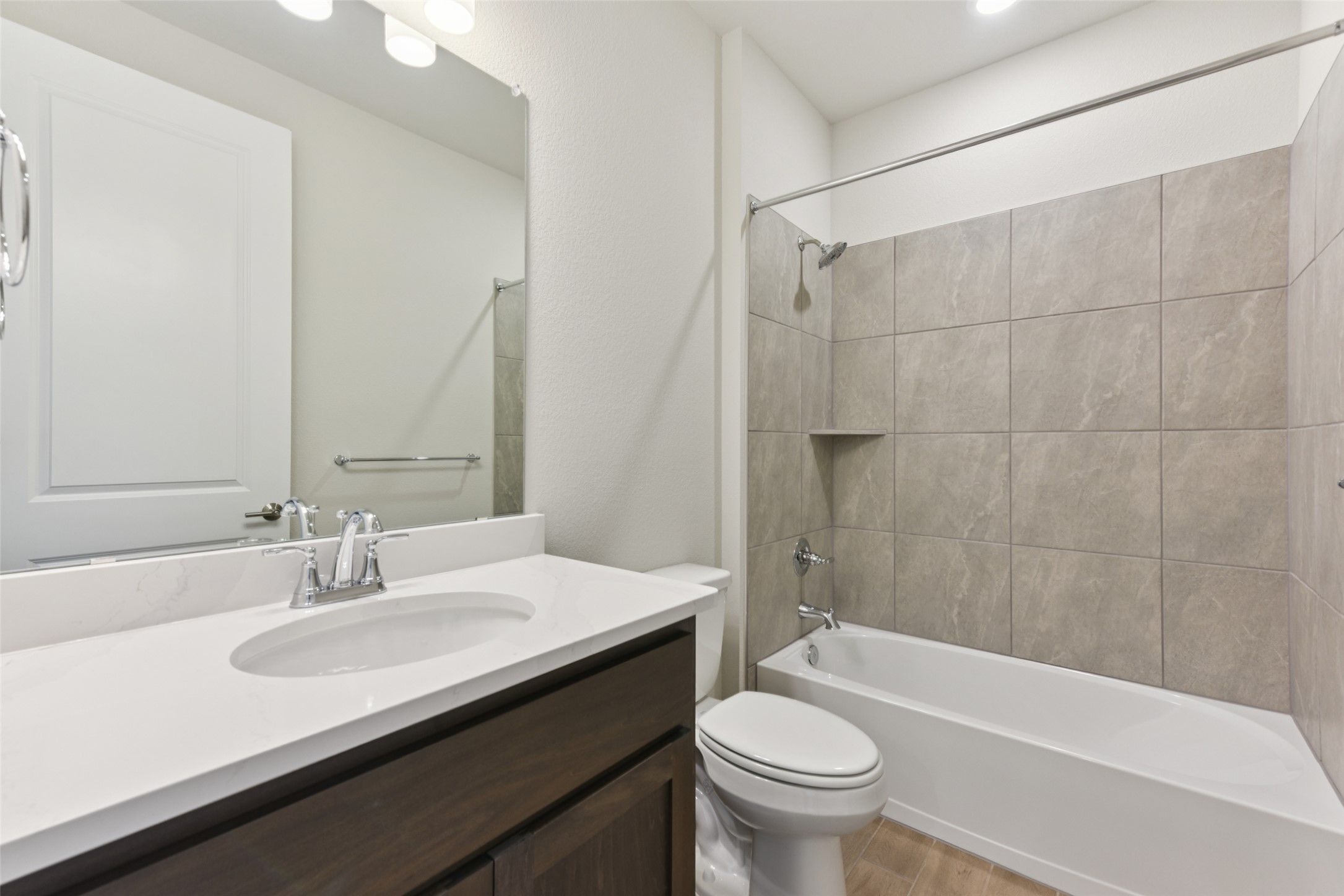 Spieth plan with upgraded SHORE flooring, quartz countertops, 8' doors throughout, optional 2 car side entry garage, Express cordless blinds