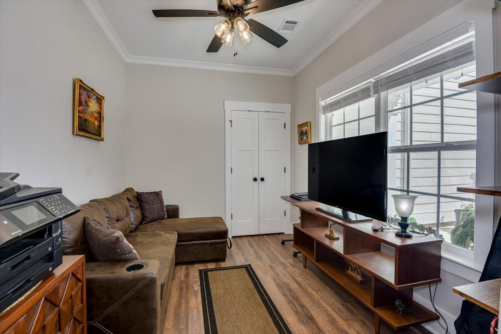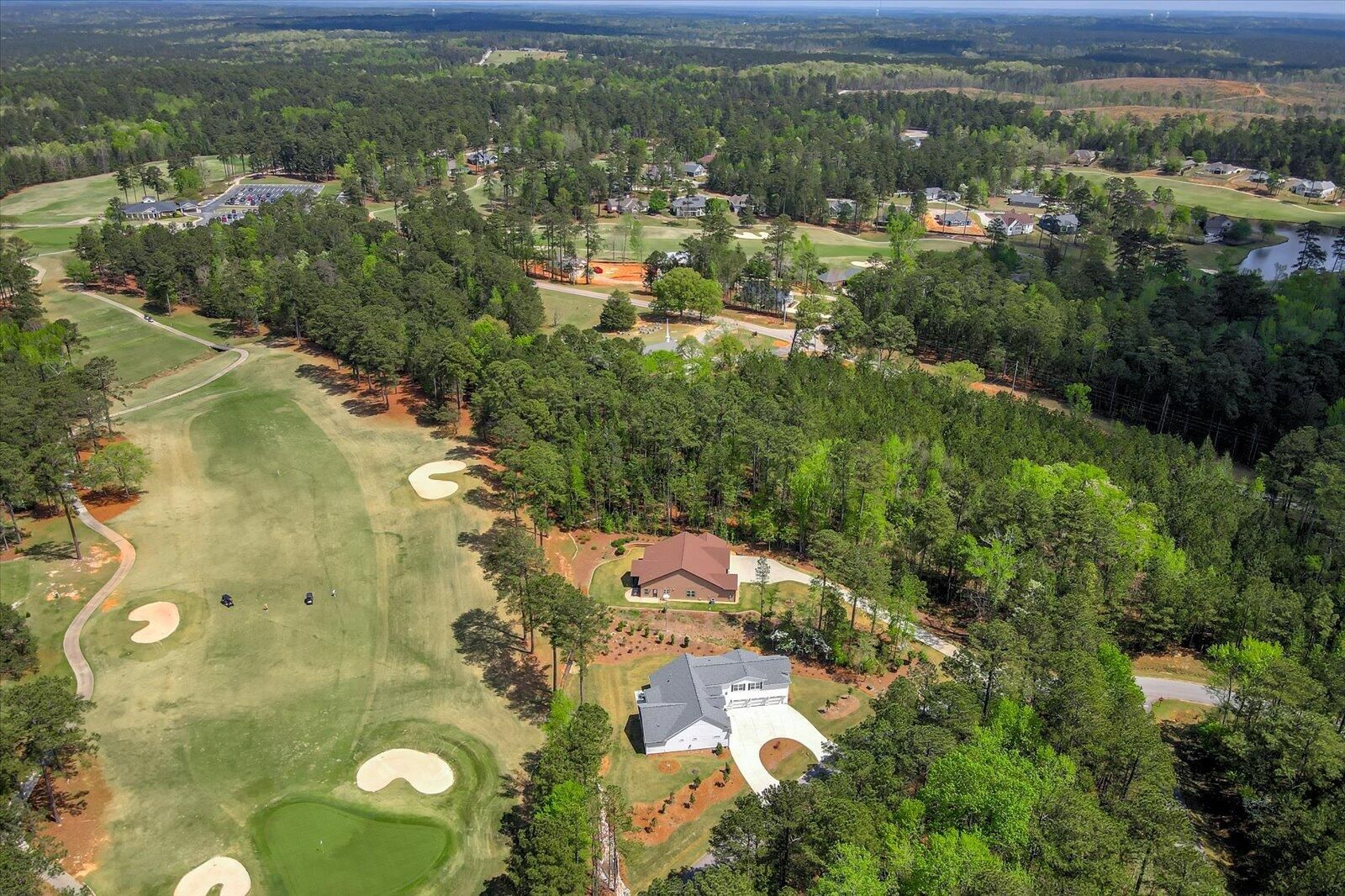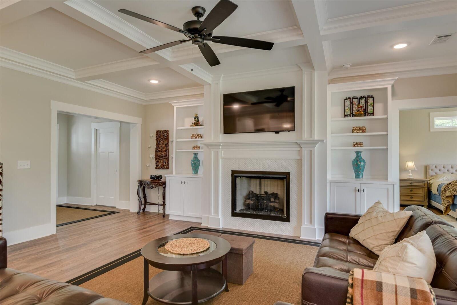 3 bedrooms with private en-suite plus upstairs apartment! Unique Contemporary Farmhouse: Two Homes in One on the Monticello Golf Course Discover an extraordinary living experience at this unique and contemporary farmhouse, designed to offer unparalleled flexibility and privacy. This unique property features two completely separate living spaces, effectively creating two homes within one, with absolutely no noise transfer between units. Main Level Living (No Stairs!): Effortless One-Story Living: Enjoy the convenience of single-level living, ideal for all stages of life. Spacious Layout: Three bedrooms, each with ensuite bathrooms, provide luxurious comfort. Versatile Den/Guest Bedroom: A flexible den space can easily transform into a comfortable guest room. Gourmet Kitchens & Luxurious Baths: Quartz countertops grace both kitchens, bathrooms, and the laundry room, offering a touch of modern elegance. Elegant Details: Flat ceilings with crown molding throughout, coffered ceiling in the main living room, and two gas fireplaces with built-in bookcases create a warm and inviting atmosphere. Oversized 3-Car Garage: Ample space for three vehicles, can accommodate up to a 23 foot boat, a golf cart, and abundant storage. Second Story Suite: Independent Living Space: A complete second living area featuring a large living room, full bath, full kitchen, and bedroom. Flexible Space: Plenty of room for a desk area, kitchen table, and more. Abundant Storage: Two large storage rooms provide ample space for all your belongings. Outdoor Paradise: Expansive Lot: Nearly half an acre of land with only one neighboring property, ensuring privacy and tranquility. Private Buffer: Backing up to a protected buffer zone, guaranteeing no future development. Golf Course Views: Enjoy stunning views of the first hole green of the Monticello Golf Course, with 246.40 feet of direct golf course frontage. Flat Yard: Perfect for outdoor activities like croquet and horseshoes. Circular Driveway: Generous circular driveway provides ample parking for guests. This exceptional property offers a rare combination of luxury, privacy, and versatility. Ideal for multi-generational living, rental income, or simply enjoying the ultimate in spacious living. Don't miss this opportunity to own a truly unique home in Savannah Lakes Village!