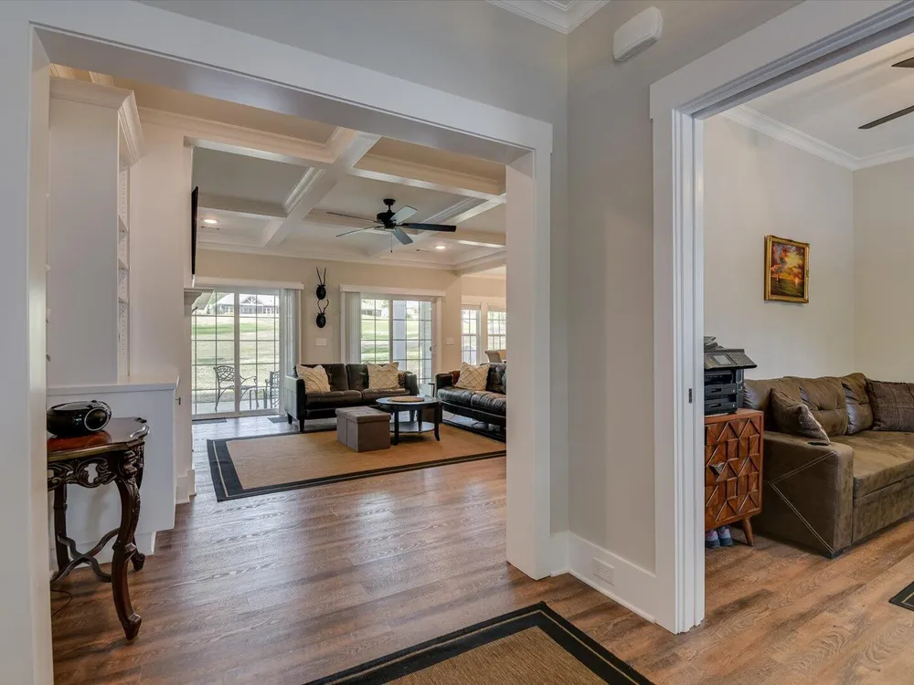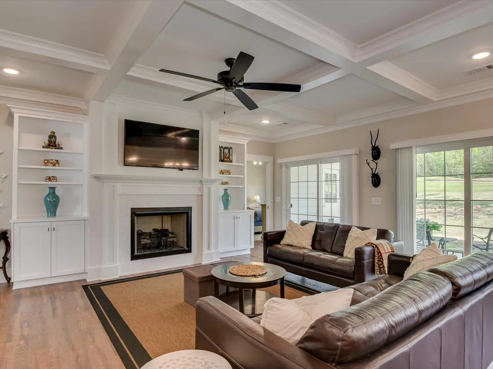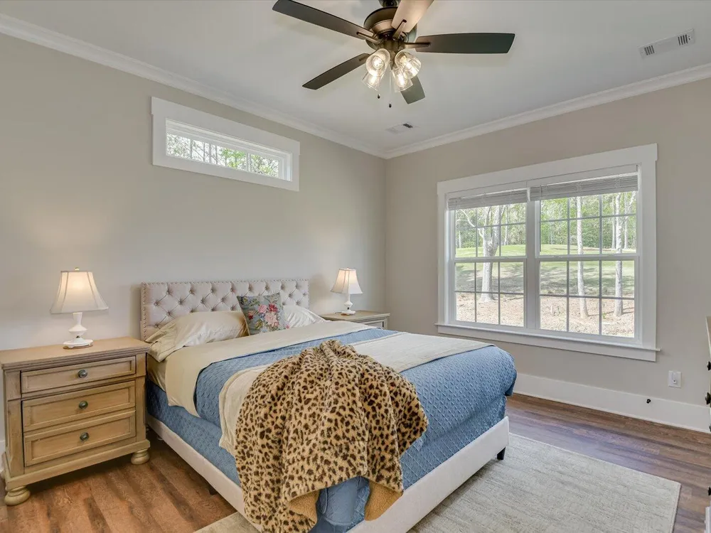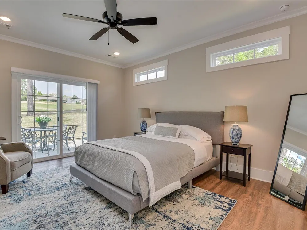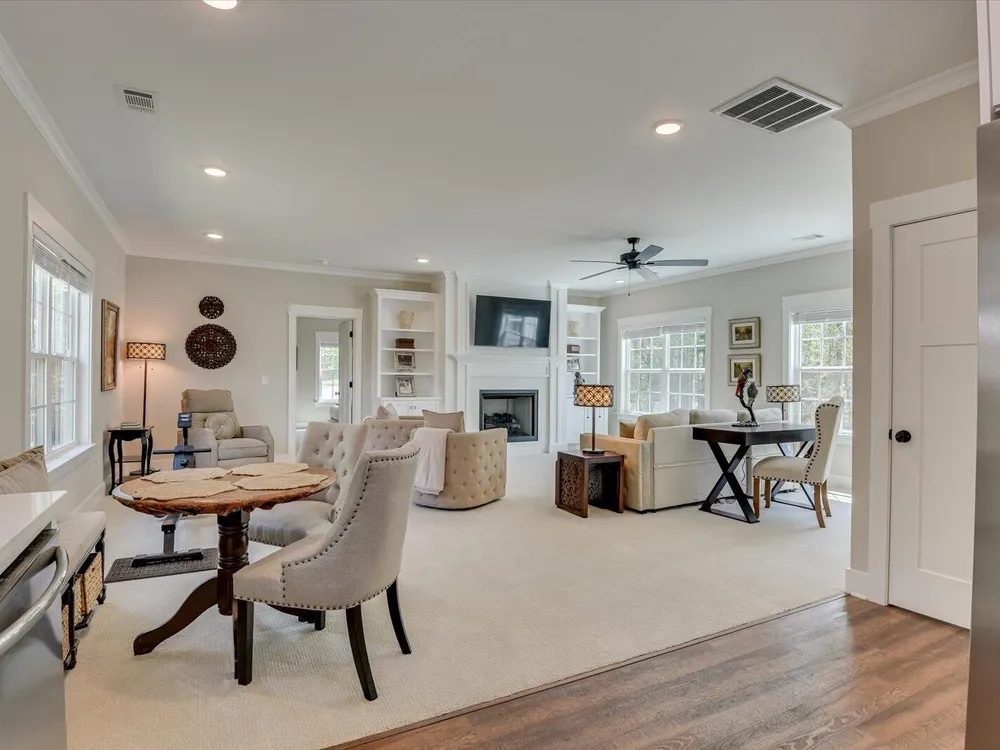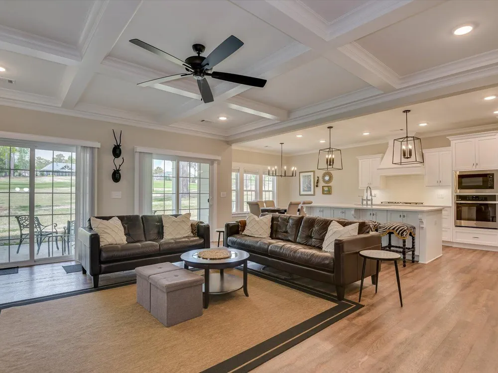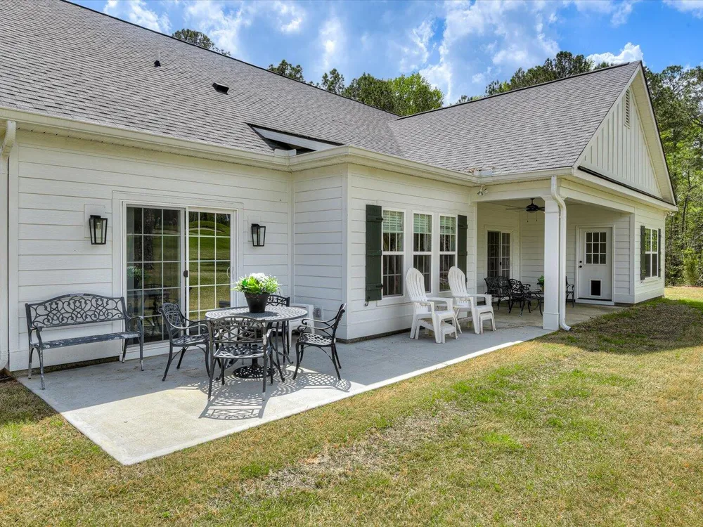 Unique Contemporary Farmhouse: Two Homes in One on the Monticello Golf CourseDiscover an extraordinary living experience at this unique and contemporary farmhouse, designed to offer unparalleled flexibility and privacy. This unique property features two completely separate living spaces, effectively creating two homes within one, with absolutely no noise transfer between units.Main Level Living (No Stairs!):Effortless One-Story Living: Enjoy the convenience of single-level living, ideal for all stages of life.Spacious Layout: Three bedrooms, each with ensuite bathrooms, provide luxurious comfort.Versatile Den/Guest Bedroom: A flexible den space can easily transform into a comfortable guest room.Gourmet Kitchens & Luxurious Baths: Quartz countertops grace both kitchens, bathrooms, and the laundry room, offering a touch of modern elegance.Elegant Details: Flat ceilings with crown molding throughout, coffered ceiling in the main living room, and two gas fireplaces with built-in bookcases create a warm and inviting atmosphere.Oversized 3-Car Garage: Ample space for three vehicles, can accommodate up to a 23 foot boat, a golf cart, and abundant storage.Second Story Suite:Independent Living Space: A complete second living area featuring a large living room, full bath, full kitchen, and bedroom.Flexible Space: Plenty of room for a desk area, kitchen table, and more.Abundant Storage: Two large storage rooms provide ample space for all your belongings.Outdoor Paradise:Expansive Lot: Nearly half an acre of land with only one neighboring property, ensuring privacy and tranquility.Private Buffer: Backing up to a protected buffer zone, guaranteeing no future development.Golf Course Views: Enjoy stunning views of the first hole green of the Monticello Golf Course, with 246.40 feet of direct golf course frontage.Flat Yard: Perfect for outdoor activities like croquet and horseshoes.Circular Driveway: Generous circular driveway provides ample parking for guests.This exceptional property offers a rare combination of luxury, privacy, and versatility. Ideal for multi-generational living, rental income, or simply enjoying the ultimate in spacious living.Don't miss this opportunity to own a truly unique home in Savannah Lakes Village!