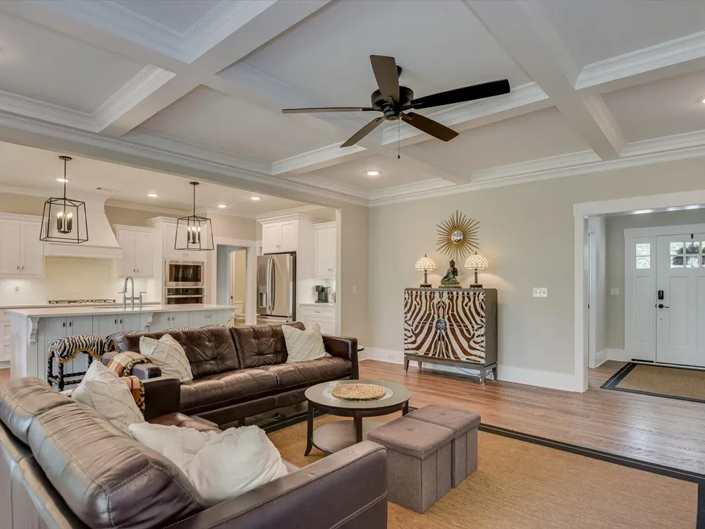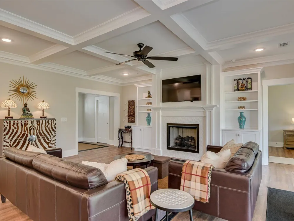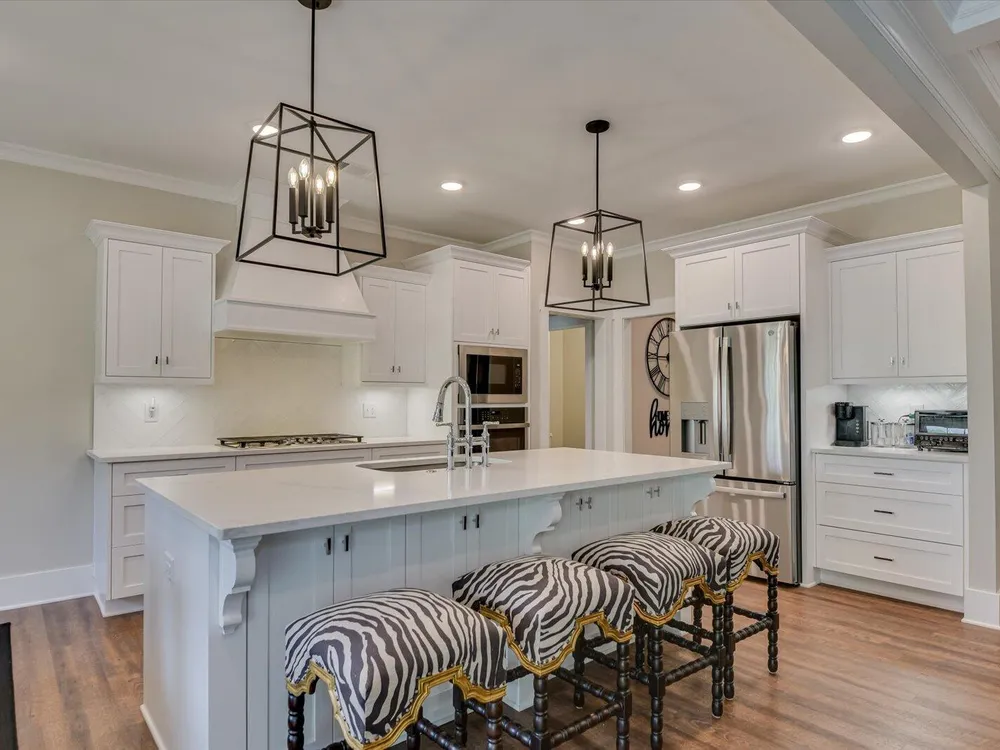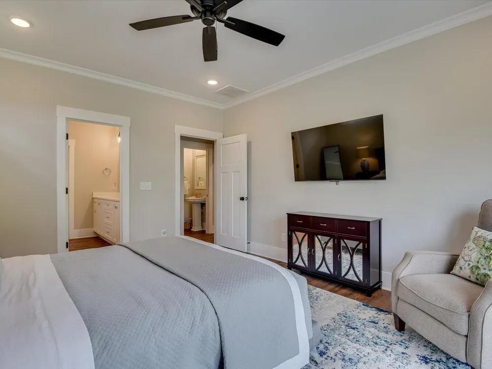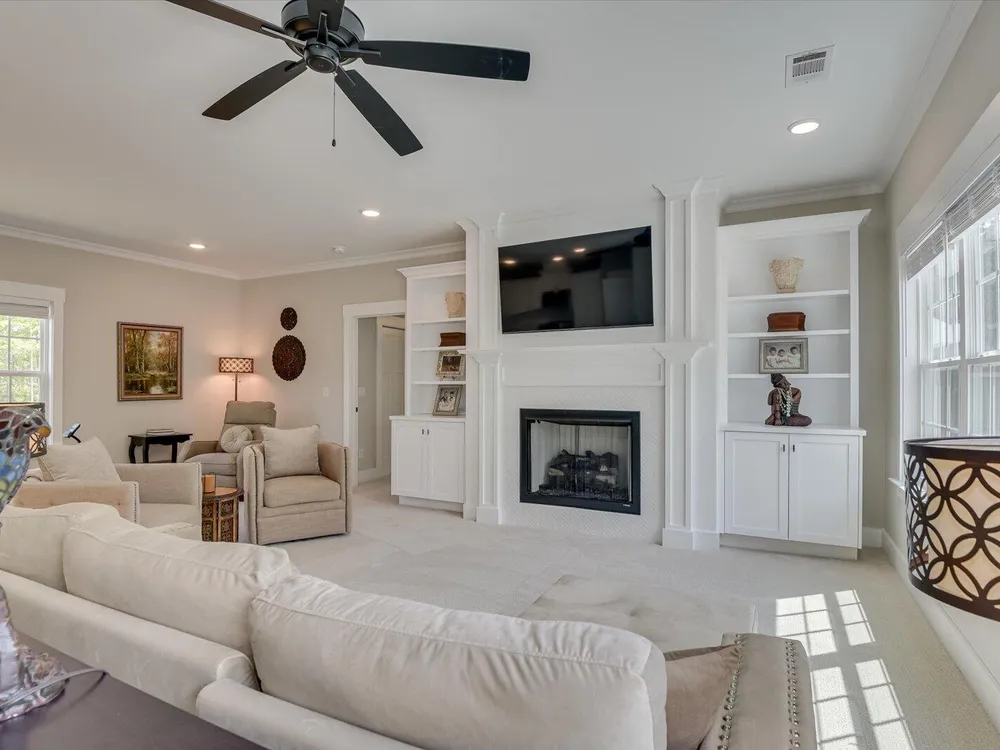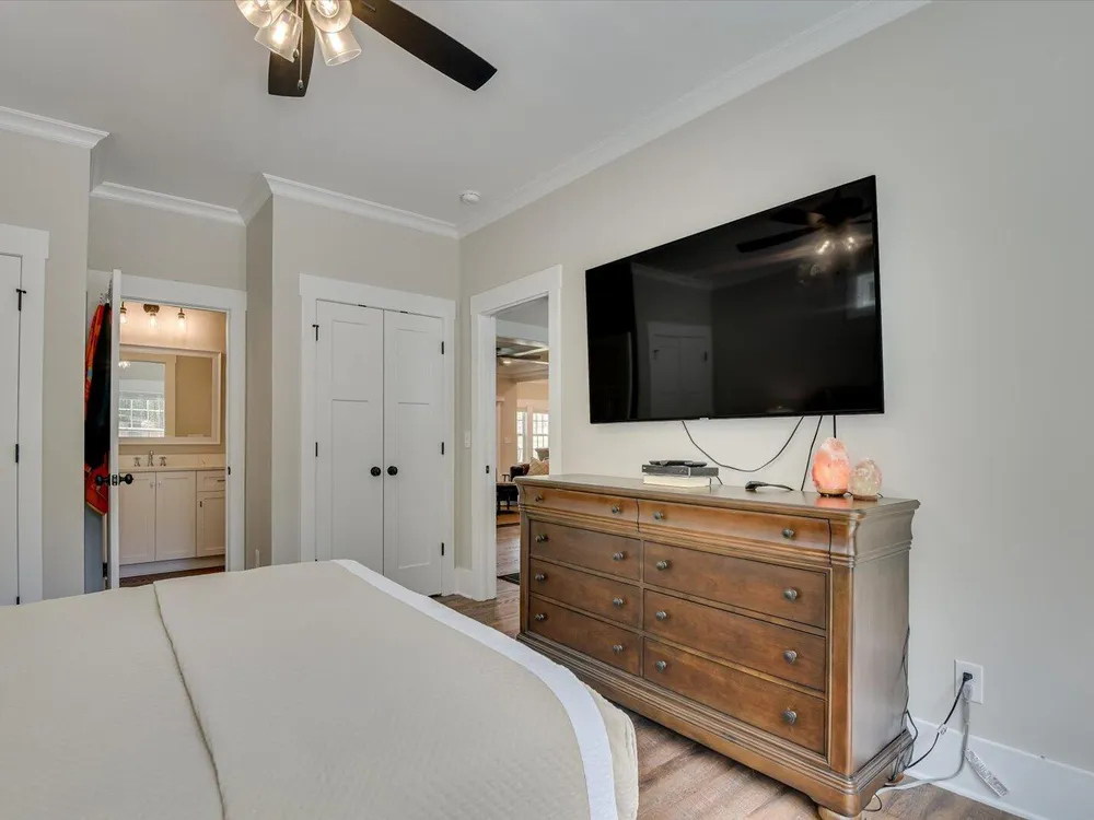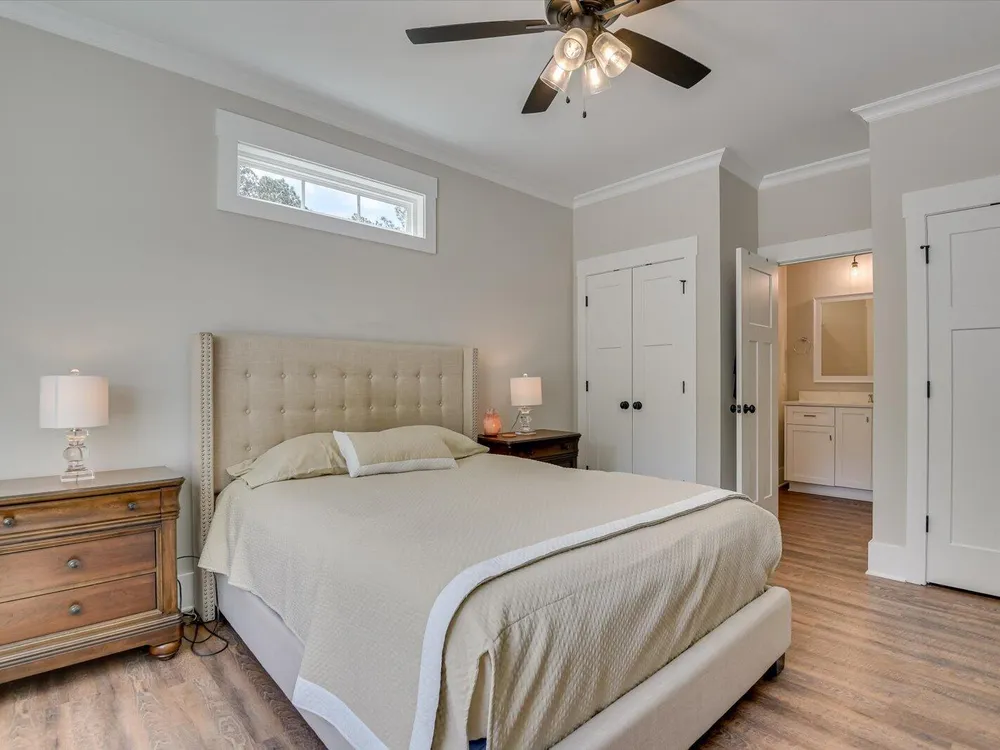 Unique Contemporary Farmhouse: Two Homes in One on the Monticello Golf CourseDiscover an extraordinary living experience at this unique and contemporary farmhouse, designed to offer unparalleled flexibility and privacy. This unique property features two completely separate living spaces, effectively creating two homes within one, with absolutely no noise transfer between units.Main Level Living (No Stairs!):Effortless One-Story Living: Enjoy the convenience of single-level living, ideal for all stages of life.Spacious Layout: Three bedrooms, each with ensuite bathrooms, provide luxurious comfort.Versatile Den/Guest Bedroom: A flexible den space can easily transform into a comfortable guest room.Gourmet Kitchens & Luxurious Baths: Quartz countertops grace both kitchens, bathrooms, and the laundry room, offering a touch of modern elegance.Elegant Details: Flat ceilings with crown molding throughout, coffered ceiling in the main living room, and two gas fireplaces with built-in bookcases create a warm and inviting atmosphere.Oversized 3-Car Garage: Ample space for three vehicles, can accommodate up to a 23 foot boat, a golf cart, and abundant storage.Second Story Suite:Independent Living Space: A complete second living area featuring a large living room, full bath, full kitchen, and bedroom.Flexible Space: Plenty of room for a desk area, kitchen table, and more.Abundant Storage: Two large storage rooms provide ample space for all your belongings.Outdoor Paradise:Expansive Lot: Nearly half an acre of land with only one neighboring property, ensuring privacy and tranquility.Private Buffer: Backing up to a protected buffer zone, guaranteeing no future development.Golf Course Views: Enjoy stunning views of the first hole green of the Monticello Golf Course, with 246.40 feet of direct golf course frontage.Flat Yard: Perfect for outdoor activities like croquet and horseshoes.Circular Driveway: Generous circular driveway provides ample parking for guests.This exceptional property offers a rare combination of luxury, privacy, and versatility. Ideal for multi-generational living, rental income, or simply enjoying the ultimate in spacious living.Don't miss this opportunity to own a truly unique home in Savannah Lakes Village!