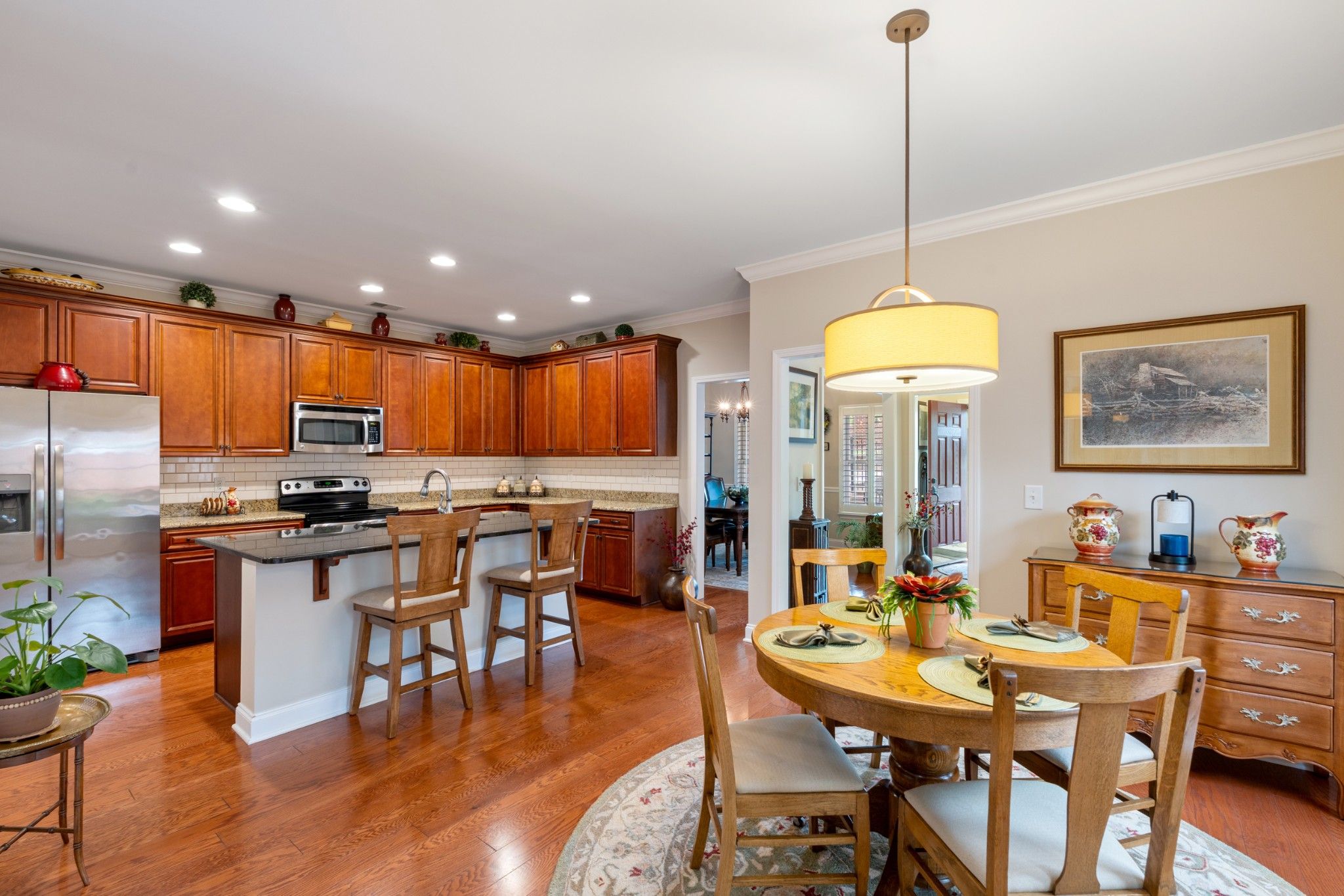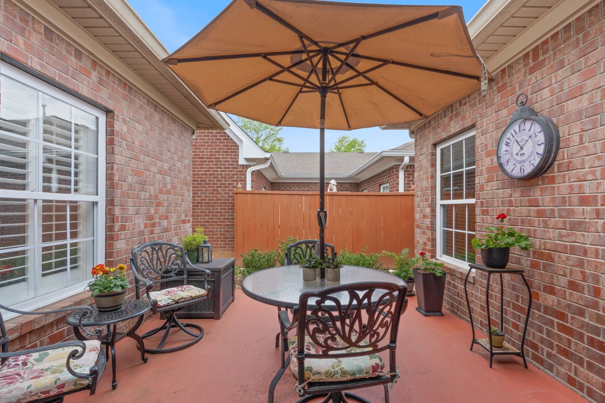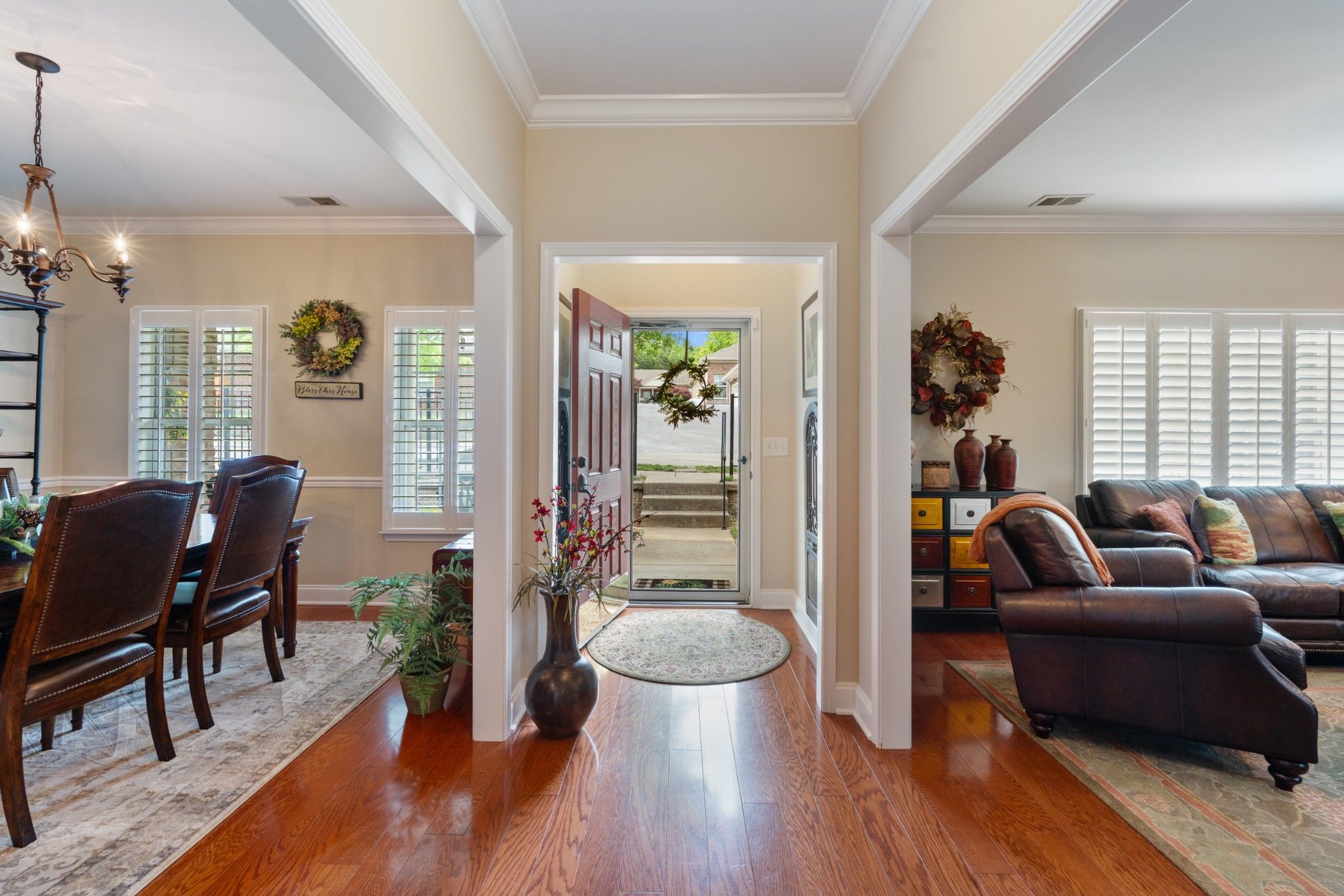 Premium floor plan and location in highly desirable Reid Hill Commons! This spacious one-level 55+ patio home offers an ideal layout with thoughtful design throughout. Featuring a welcoming rocking chair front porch, the home includes separate formal living and dining rooms with hardwood flooring, a dedicated den/study, and a large laundry room. The renovated kitchen is equipped with an island, breakfast area, and abundant storage, complemented by beautiful plantation shutters throughout the home. The expansive owner’s suite includes two closets and an en suite bath with a walk-in shower, while the secondary bedroom and hall bath provide comfortable space for guests. Enjoy outdoor living on the completely private side patio—perfect for entertaining. Additional highlights include a 2-car rear-entry garage with shelving, accessible attic storage, and ample visitor parking nearby. Ideally located just minutes from historic downtown Franklin and Westhaven Town Center, with convenient walkability to everyday essentials including shopping, dining, and medical services. Overlooking serene landscaped common space, this beautifully maintained home is the largest floor plan offered in the neighborhood and truly stands out.