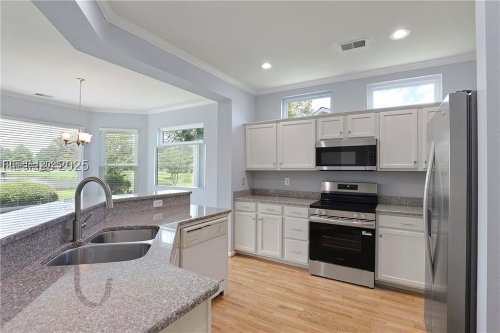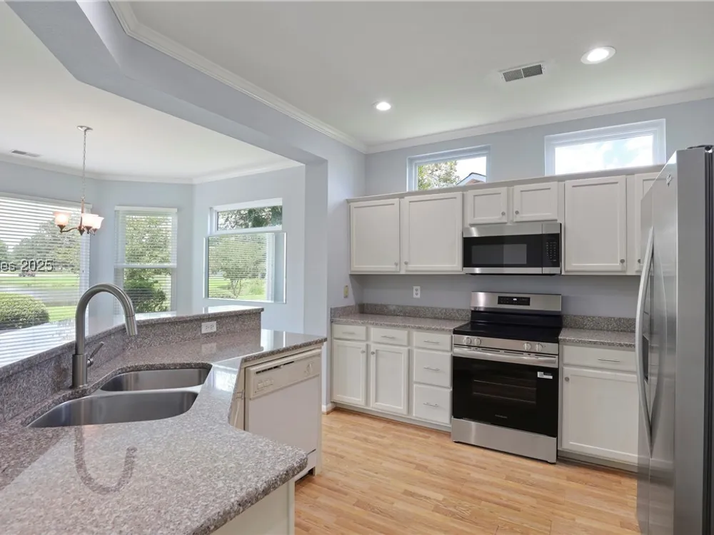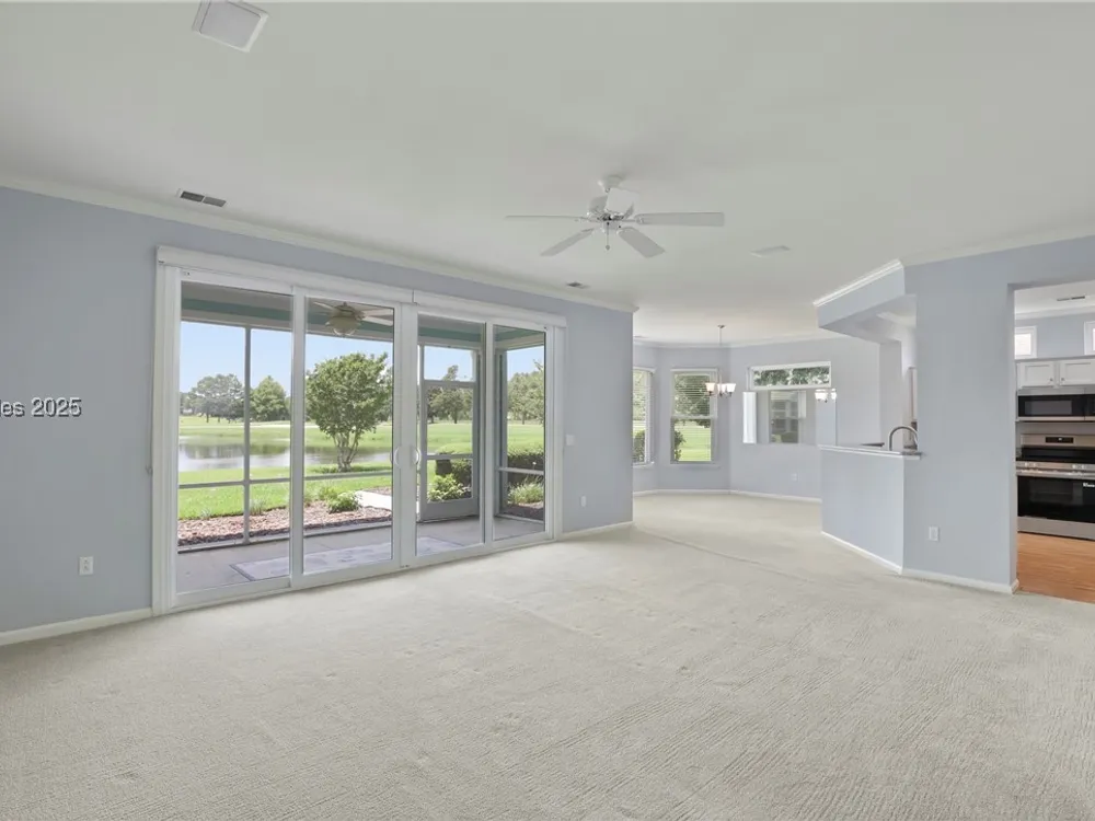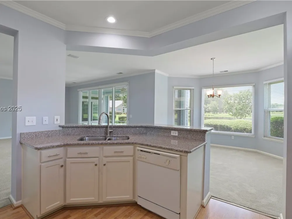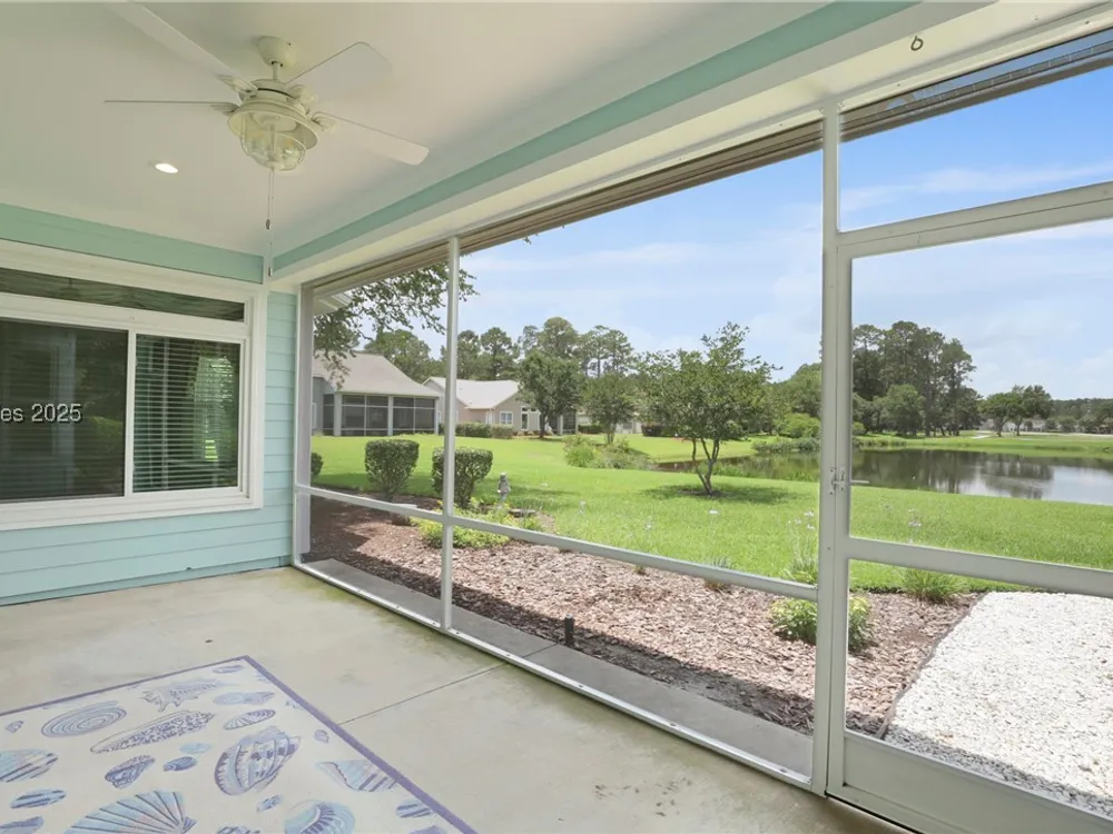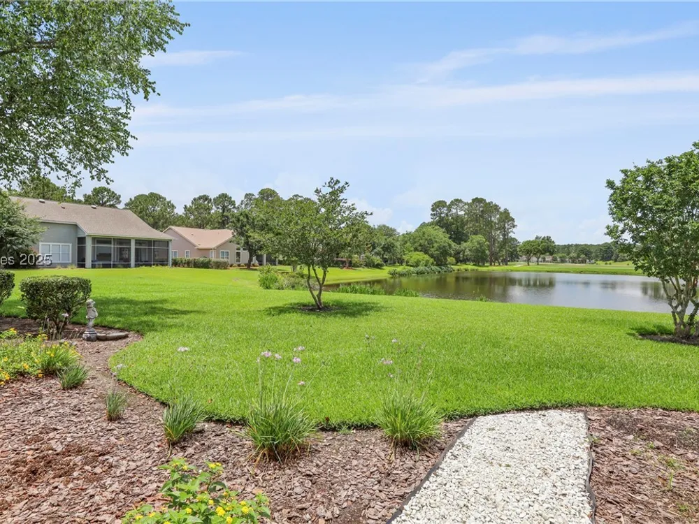 Don't miss this beautifully updated Hamilton/Jefferson model nestled in the desirable Historic Village of Sun City Hilton Head. Ideally situated on an oversized lot along a quiet circle, this 2-bedroom + den, 2-bath home offers 1,669 sq. ft. of comfortable, light-filled living space with breathtaking lagoon and golf course views. Enjoy peace of mind with major improvements already completed, including Exterior paint & 6" gutters, Hurricane-rated windows & doors, HVAC system and washer/dryer (2021),Garage door opener (2022), Water heater (2023) Step outside to a screened porch perfect for year-round Lowcountry living, where youll take in tranquil water views and resort-style scenery. Inside, you will find thoughtful upgrades, a spacious layout, and timeless charm at every turn. With its prime Southside location near all amenities and a serene setting, this home is truly a standout opportunity in Sun City Hilton Head.