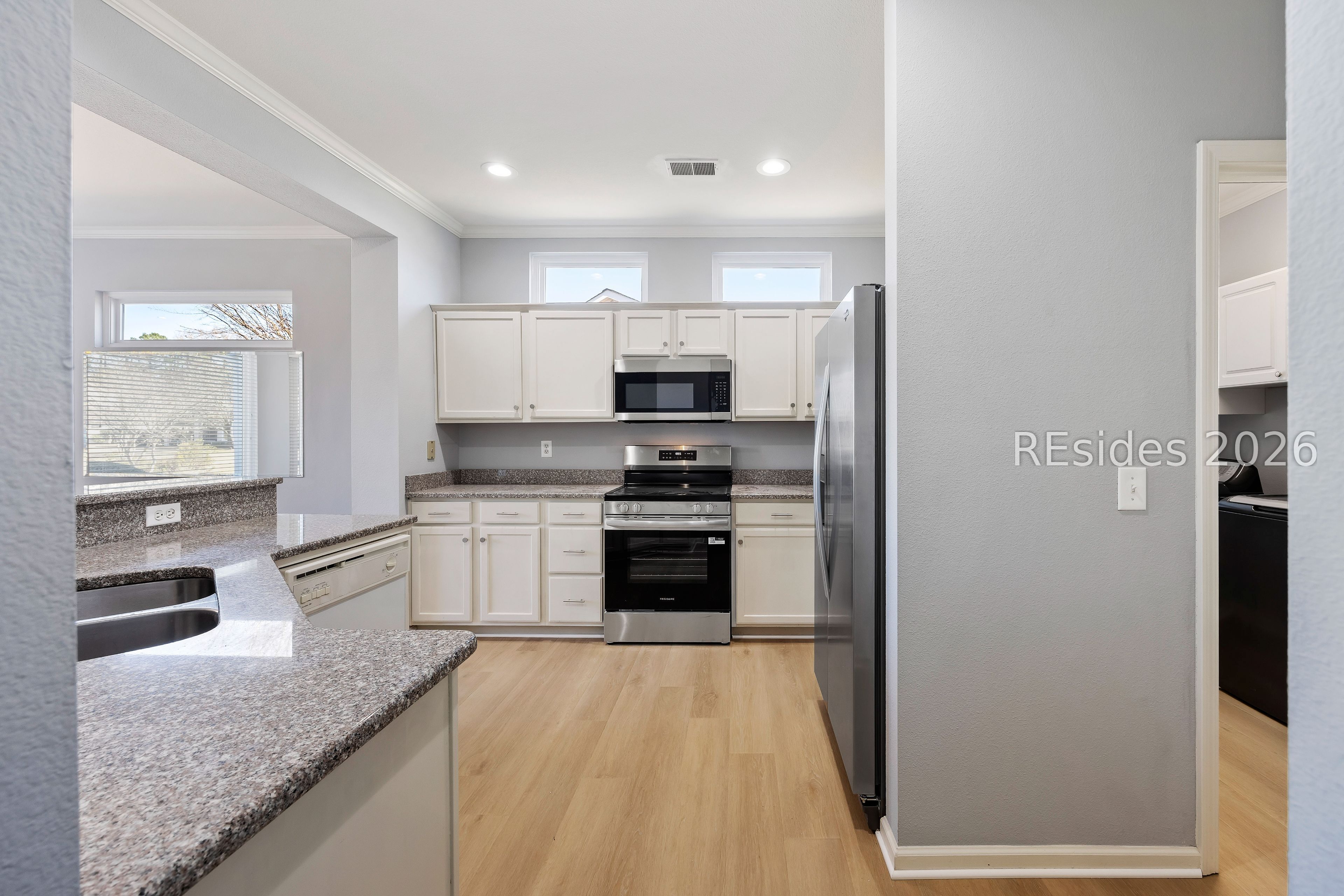 Welcome to 105 Col Dunovant Court in Sun City Hilton Head, a beautifully updated 2-bedroom, 2-bath home with a den/office, ideally located near the end of a quiet cul-de-sac and offering expansive lagoon and golf course views. This popular Hamilton/Jefferson model combines privacy, scenic outdoor living, and extensive recent upgrades for peace of mind. Inside, you'll find new luxury vinyl plank flooring installed throughout in February 2026, granite countertops, and stainless-steel appliances, including a new microwave and range (2025). The open layout flows seamlessly to a screened porch (added 2021)-the perfect place to relax and enjoy serene water and golf views year-round. Major system updates include hurricane-impact windows and patio doors (2022), HVAC system with Aprilaire filtration (2021), water heater (2023), washer and dryer (2021), and new toilets (2021). The primary suite has been tastefully refreshed, featuring a new shower (2024) and new bathroom and closet flooring (2024). Additional improvements include exterior painting (2024), 6-inch gutters (2021), and a garage door opener with keypad (2022).This move-in-ready home offers low-maintenance living, modern upgrades, hurricane protection, and exceptional golf and lagoon views, all within the highly sought-after 55+ gated community of Sun City Hilton Head, known for its golf courses, pools, fitness centers, clubs, and vibrant Lowcountry lifestyle.