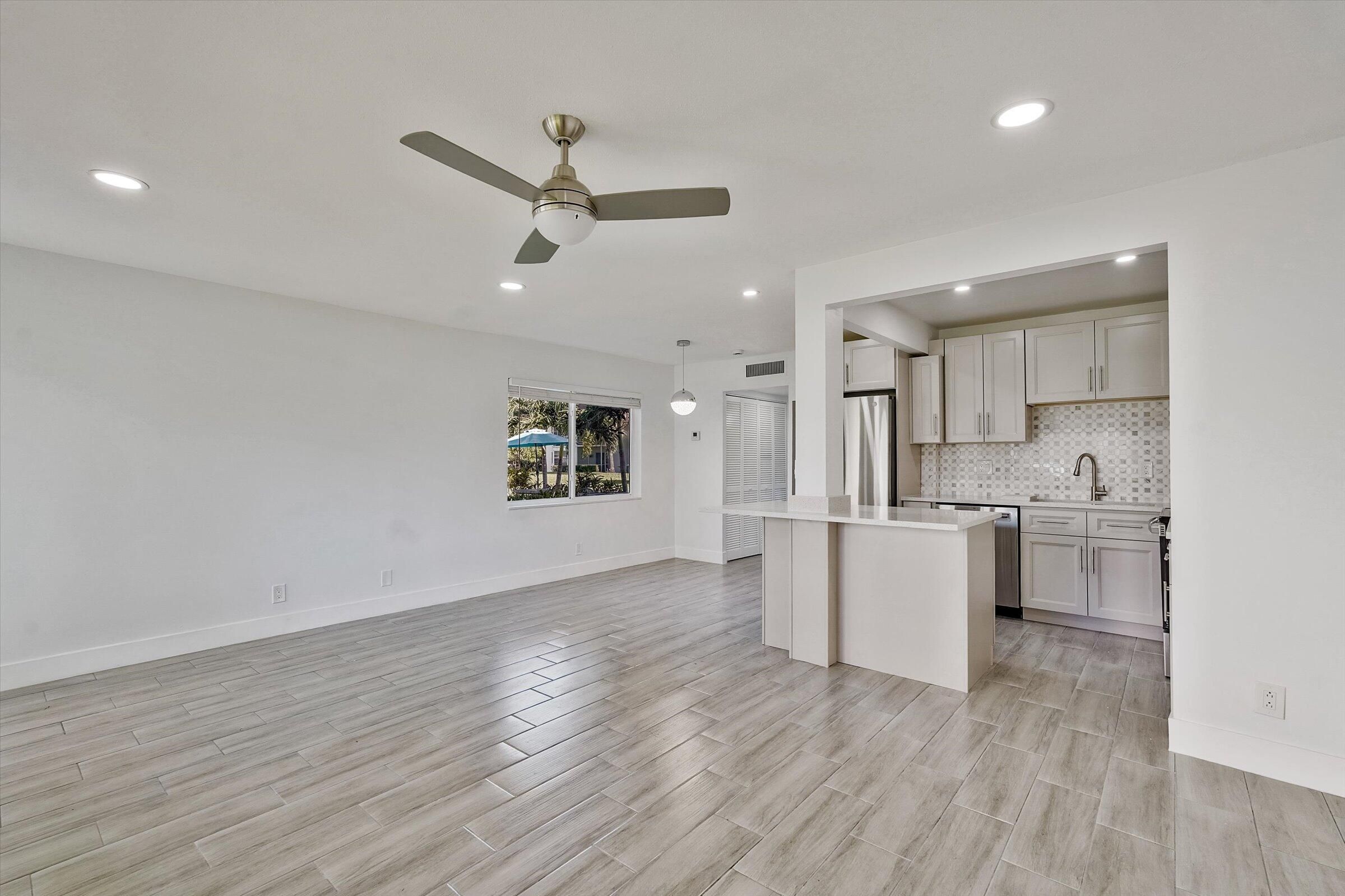 STOP LOOKING- This is the unit for you and just move in. Everything new: High quality impact windows and doors, new central AC, dishwasher, quartz counter tops, high quality wood cabinets, new appliances, open concept kitchen, lights galore, two closets, etc. Beautiful garden view. All done under County permits. Close to gyms, doctors, big stores. 15 minutes to beach, downtown, Cityplace, etc. Best community Entertaiment, bus service, etc.