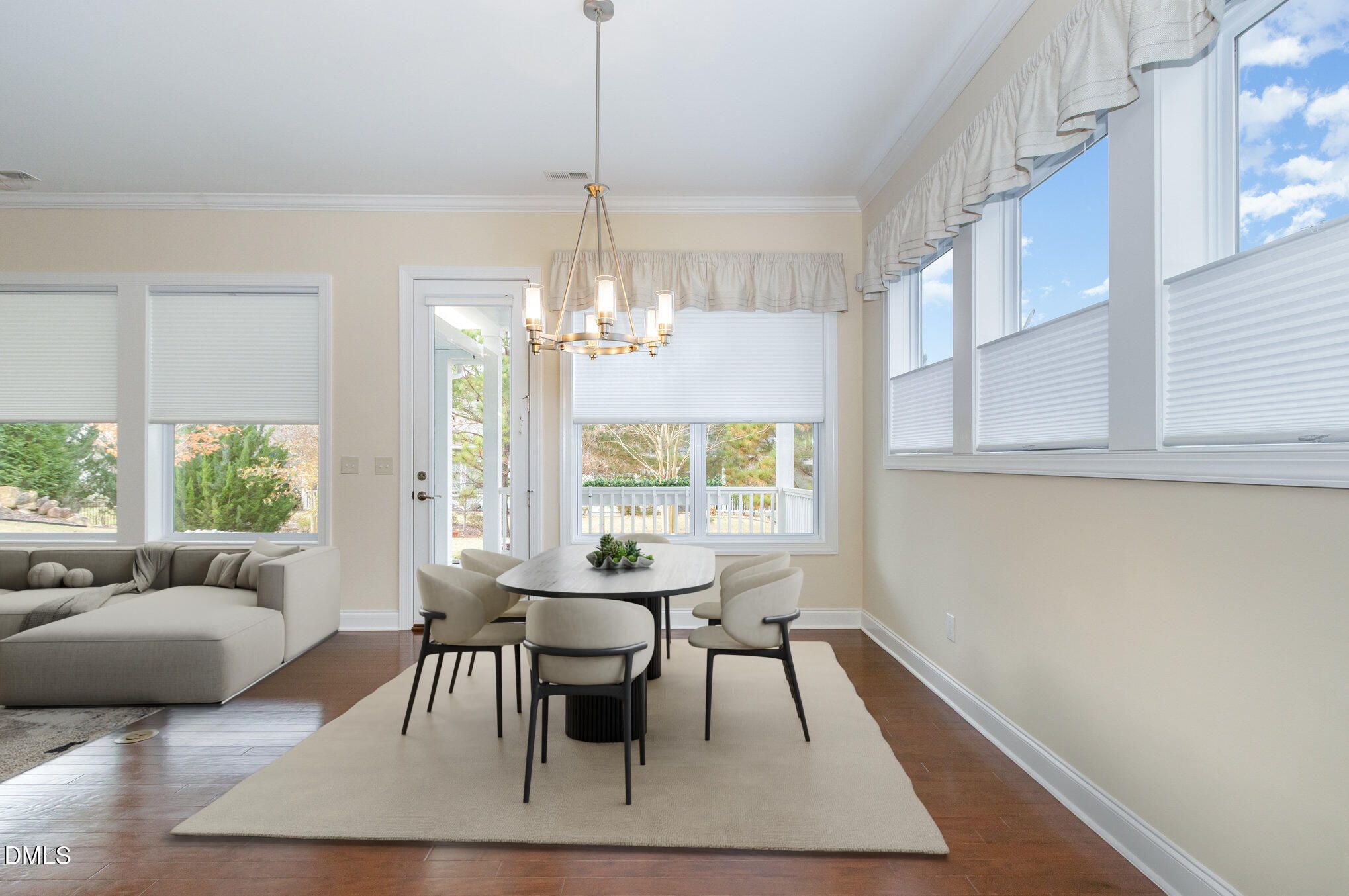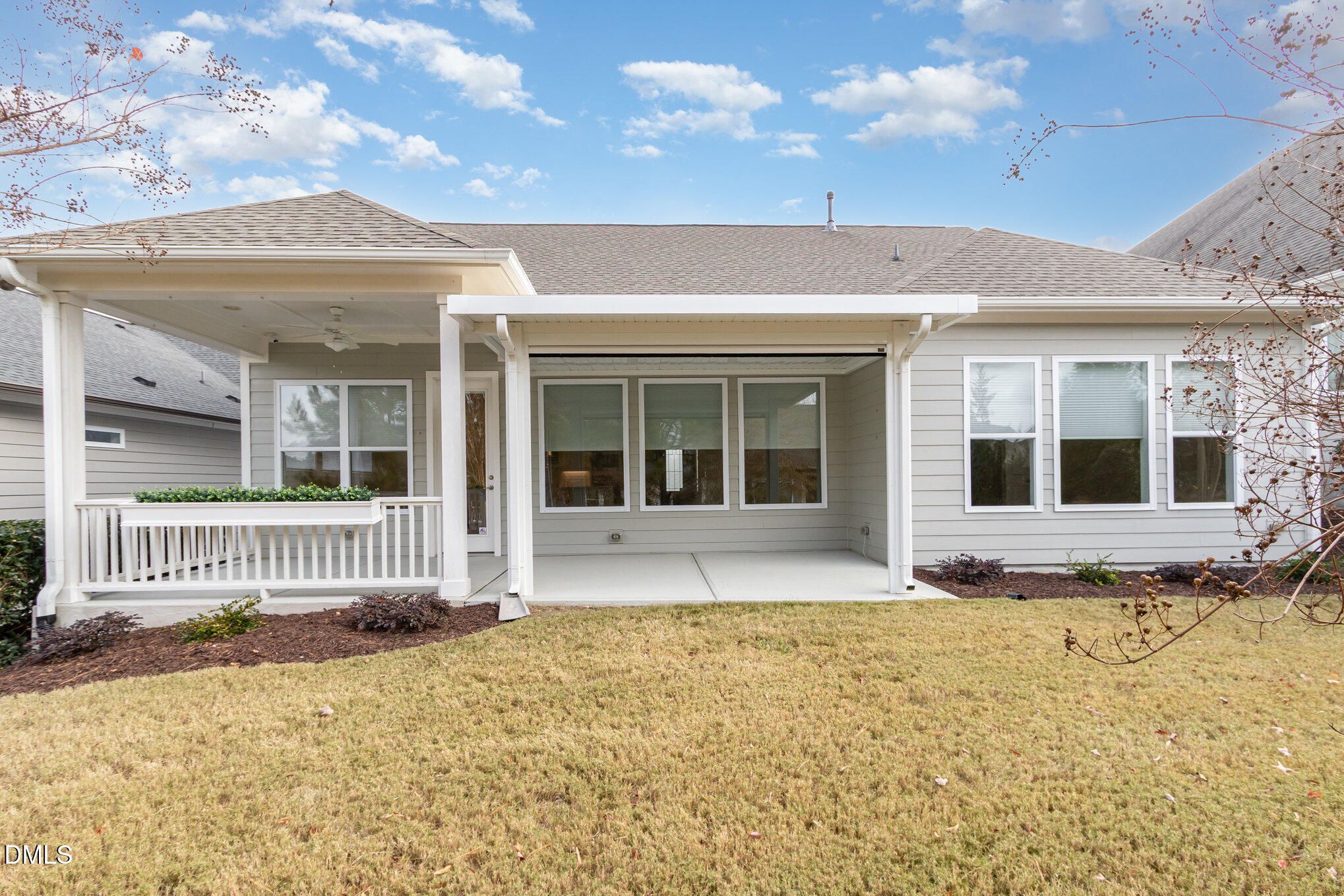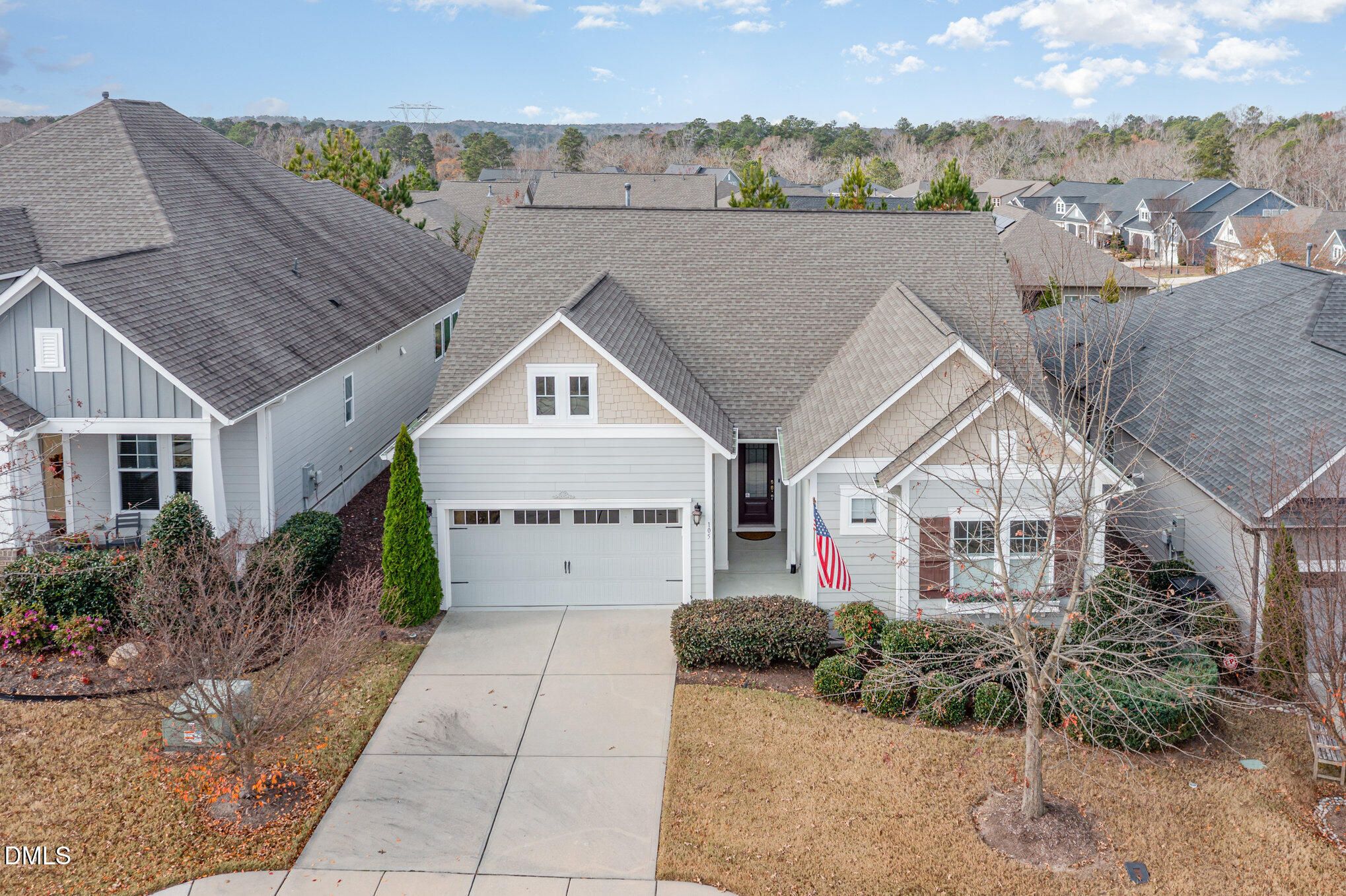 Welcome to Encore - Chapel Hill's Premier 55+ Community in the Desirable Briar Chapel Subdivision. This meticulously designed, one-level home offers the perfect blend of comfort and elegance with 2 bedrooms, 2 bathrooms, and a versatile LG Flex/Study room. The open-concept design features a bright and inviting living room, a stunning kitchen, and a charming breakfast nook, all effortlessly flowing together to create the perfect setting for both relaxation and entertaining. Additionally, a separate dining room adds an extra touch of elegance and functionality. The chef's kitchen is a standout feature, complete with an oversized island, gleaming quartz countertops, high-end stainless steel appliances, plenty of cabinetry, and a walk-in pantry. Every detail has been thoughtfully considered to elevate your lifestyle. The luxurious primary suite is your personal retreat, featuring a spa-inspired walk-in shower and a custom-designed walk-in closet with ample storage, including built-in shelving, racks, and drawers for ultimate organization. Additional upgrades include a retractable shade awning for private outdoor enjoyment, an epoxy-coated garage floor with plenty of storage & cabinetry and a laundry room sink for convenience. Advanced water filtration systems, including a Kinetico whole-house filter and Reverse Osmosis units in the kitchen and primary suite for pure, clean water. For added peace of mind, a HALO UV light is installed in the furnace to ensure fresh, clean air throughout the home. This home is also equipped with a comprehensive security system, featuring exterior cameras to enhance safety. Encore Community Amenities: Resort-style clubhouse, sparkling pool, and fitness center. Tennis courts, pickleball courts, 26 miles of scenic bike trails, playgrounds, dog park and additional clubhouse access within Briar Chapel. Come discover the unparalleled charm of this exceptional Chapel Hill gem - where luxury meets convenience in a vibrant, active community.