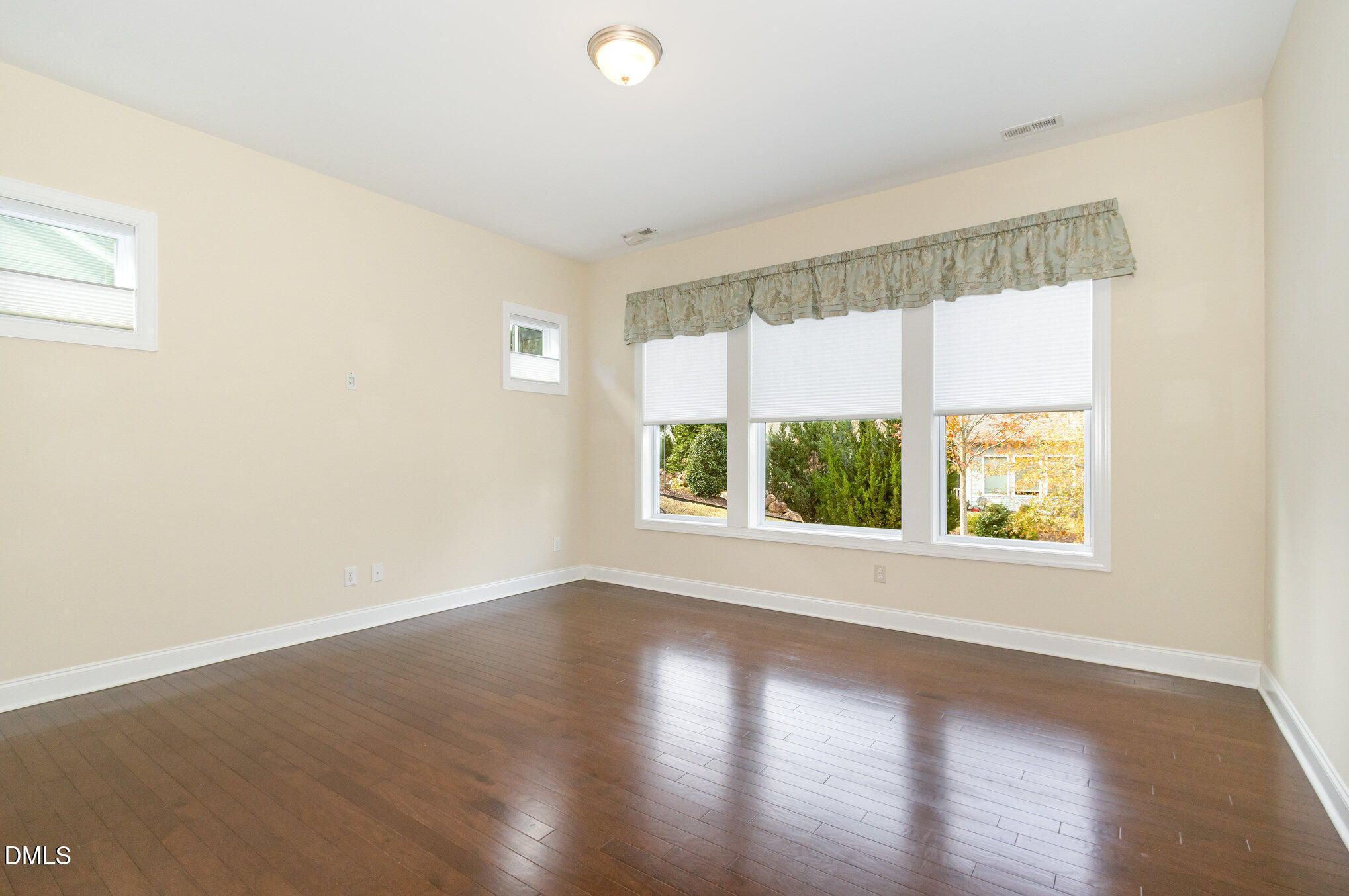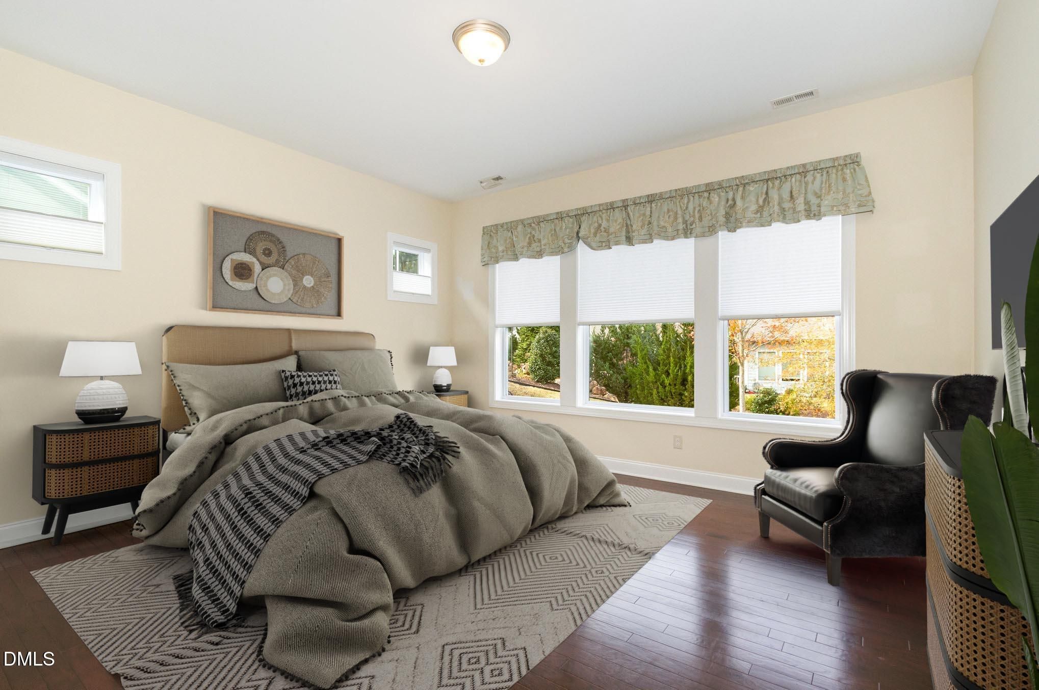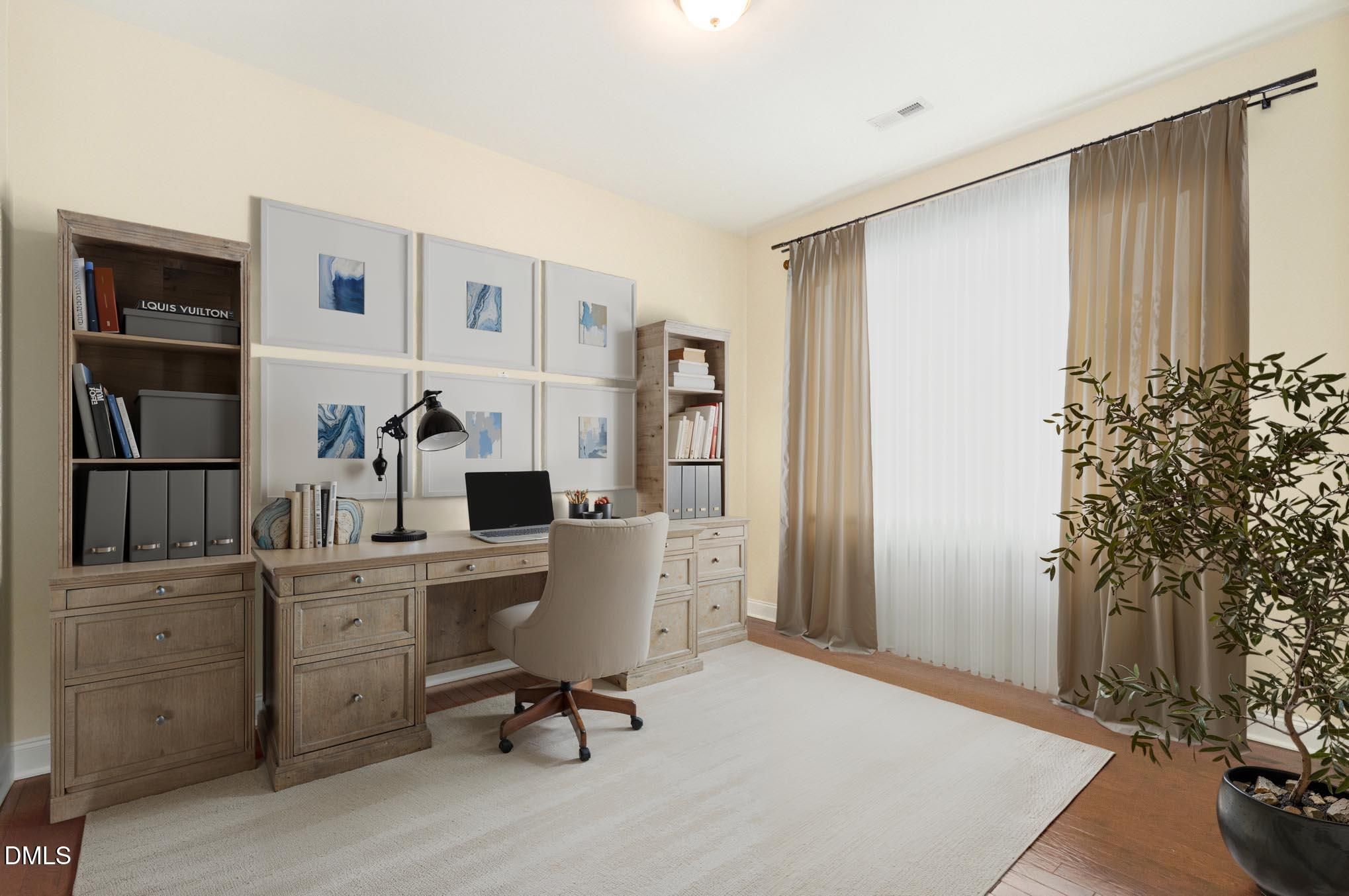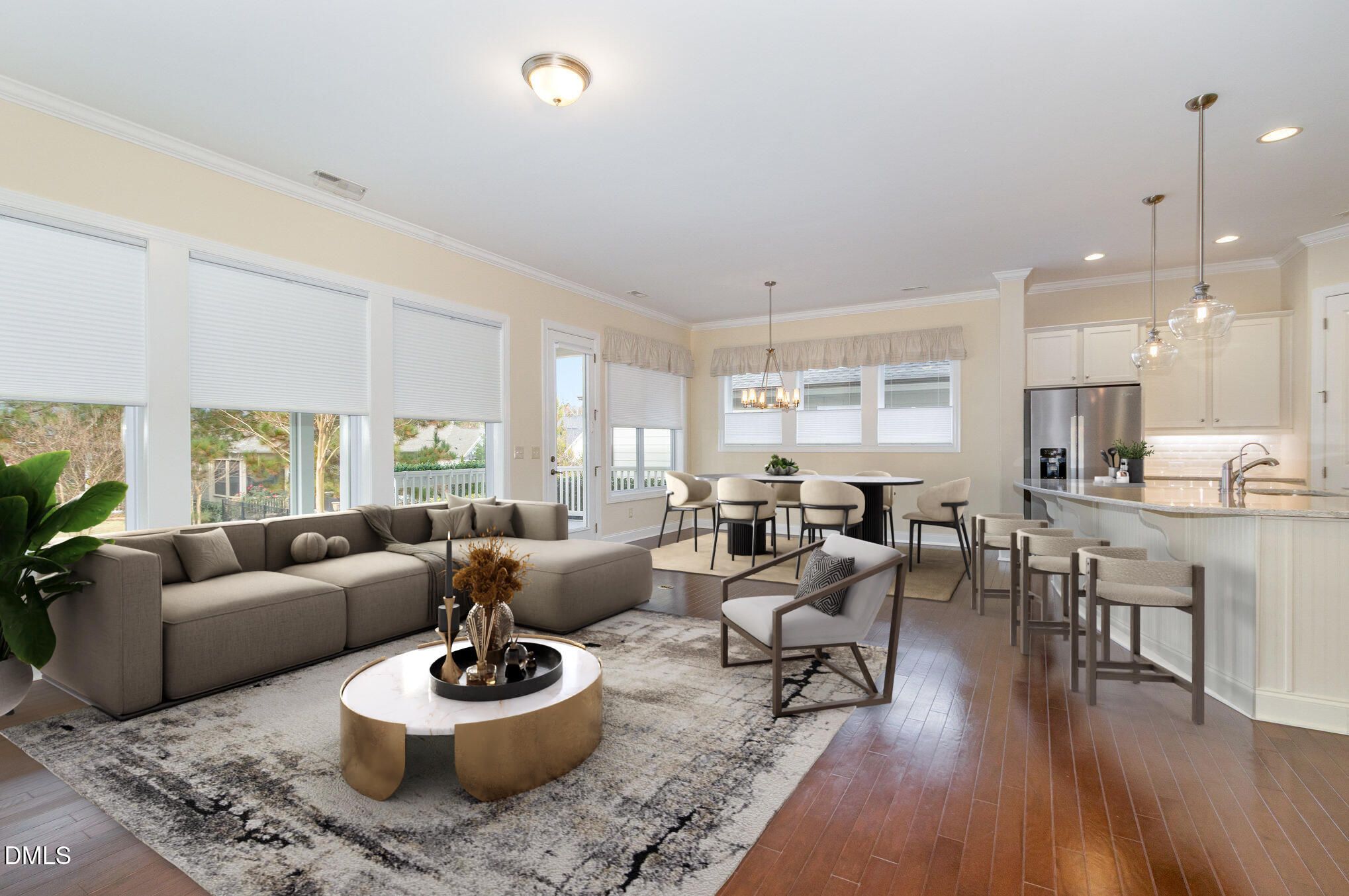 Welcome to Encore - Chapel Hill's Premier 55+ Community in the Desirable Briar Chapel Subdivision. This meticulously designed, one-level home offers the perfect blend of comfort and elegance with 2 bedrooms, 2 bathrooms, and a versatile LG Flex/Study room. The open-concept design features a bright and inviting living room, a stunning kitchen, and a charming breakfast nook, all effortlessly flowing together to create the perfect setting for both relaxation and entertaining. Additionally, a separate dining room adds an extra touch of elegance and functionality. The chef's kitchen is a standout feature, complete with an oversized island, gleaming quartz countertops, high-end stainless steel appliances, plenty of cabinetry, and a walk-in pantry. Every detail has been thoughtfully considered to elevate your lifestyle. The luxurious primary suite is your personal retreat, featuring a spa-inspired walk-in shower and a custom-designed walk-in closet with ample storage, including built-in shelving, racks, and drawers for ultimate organization. Additional upgrades include a retractable shade awning for private outdoor enjoyment, an epoxy-coated garage floor with plenty of storage & cabinetry and a laundry room sink for convenience. Advanced water filtration systems, including a Kinetico whole-house filter and Reverse Osmosis units in the kitchen and primary suite for pure, clean water. For added peace of mind, a HALO UV light is installed in the furnace to ensure fresh, clean air throughout the home. This home is also equipped with a comprehensive security system, featuring exterior cameras to enhance safety. Encore Community Amenities: Resort-style clubhouse, sparkling pool, and fitness center. Tennis courts, pickleball courts, 26 miles of scenic bike trails, playgrounds, dog park and additional clubhouse access within Briar Chapel. Come discover the unparalleled charm of this exceptional Chapel Hill gem - where luxury meets convenience in a vibrant, active community.