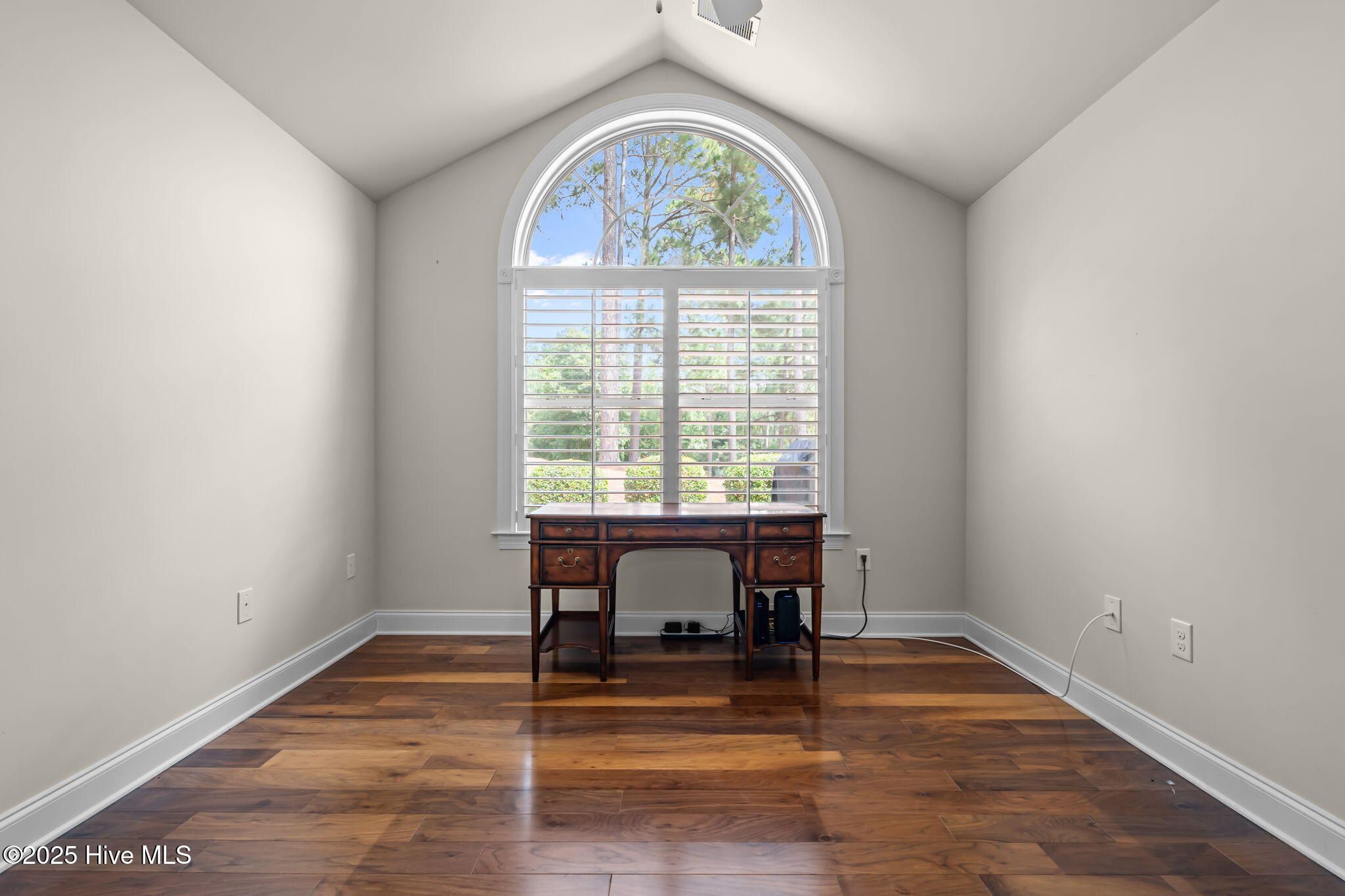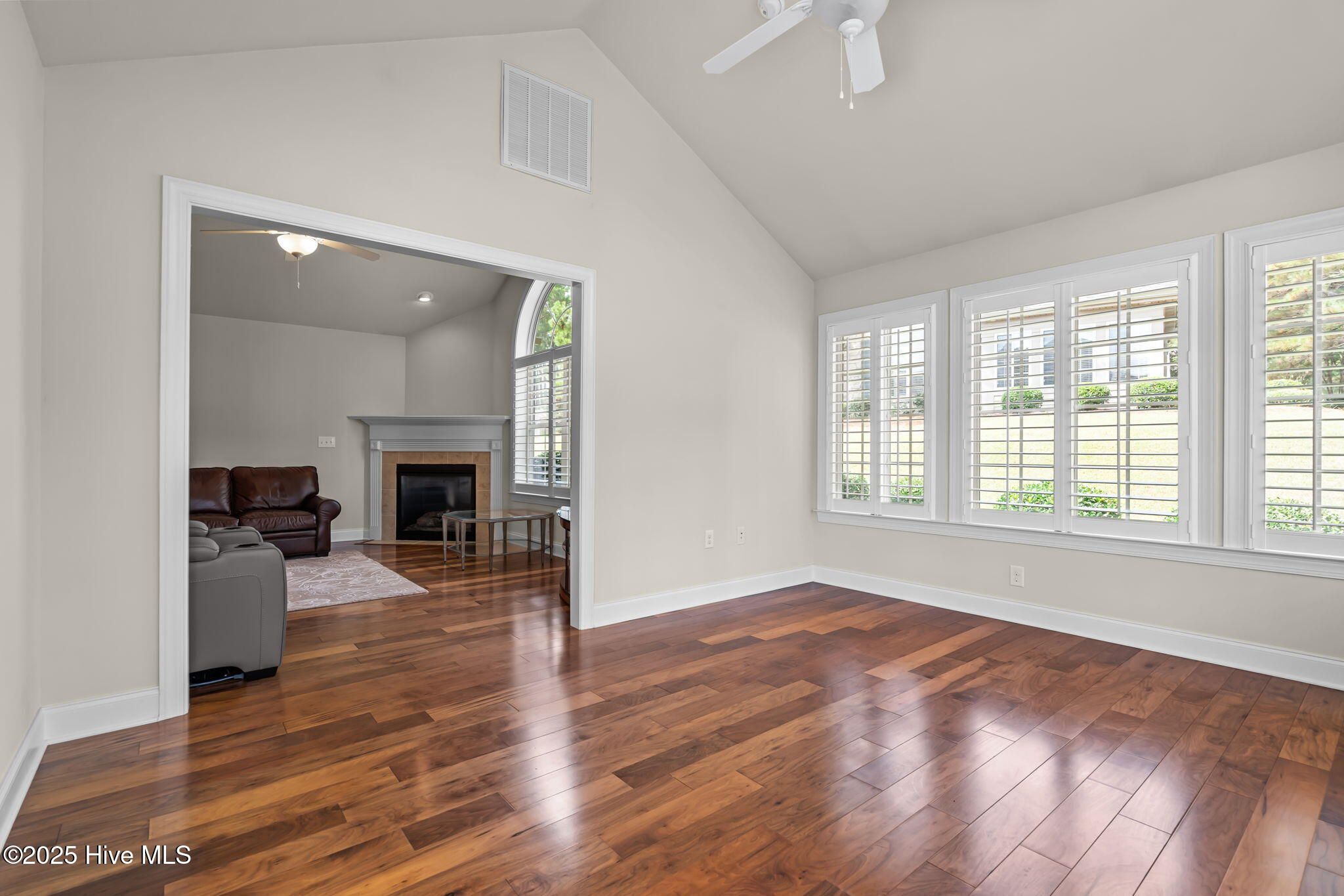 Enjoy maintenance free golf front living! This stunning 3-bedroom, 3-bath condo with a spacious upstairs bonus room and full bath offers the perfect blend of elegance and comfort. Situated on the 2nd hole of the prestigious Mid South Golf Course, you'll enjoy breathtaking views and a lifestyle centered around leisure and luxury. Inside, the gourmet kitchen shines with granite countertops, custom cabinet lighting, and plenty of space to entertain. Rich hardwood flooring and timeless plantation shutters add warmth and charm throughout. The insulated garage door and expansive 6-car driveway provide both convenience and functionality. Whether you're hosting in style, relaxing on the course, or enjoying the peace of your private retreat, this home offers it all.