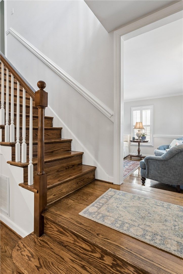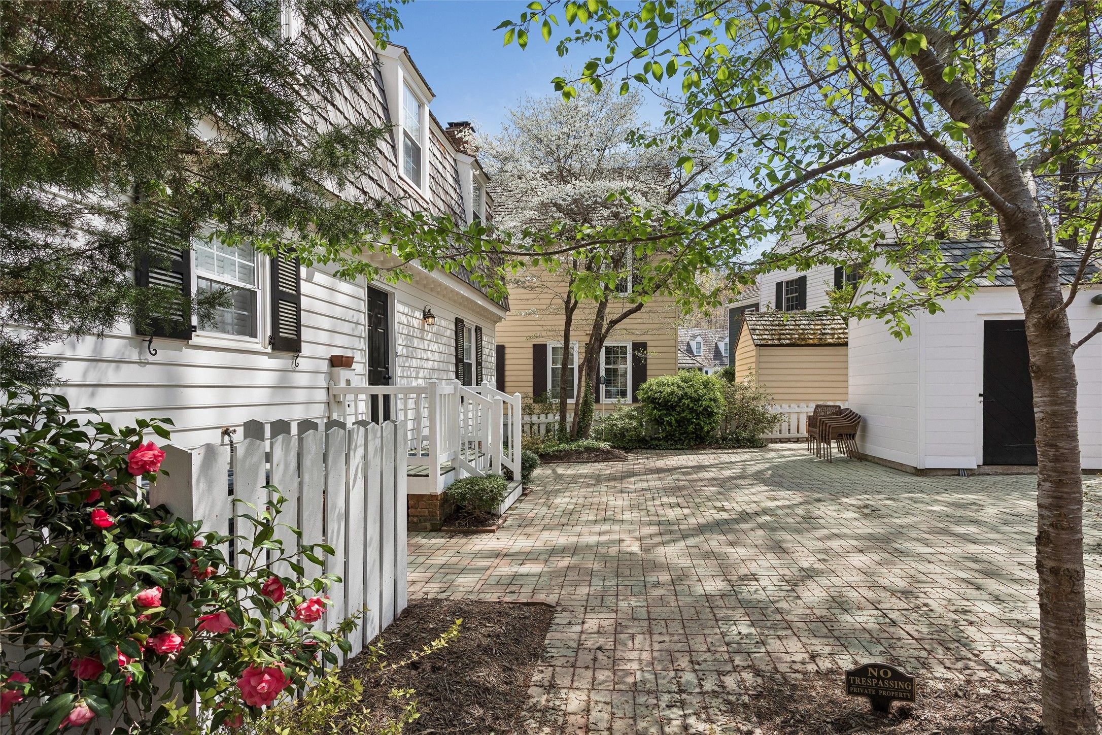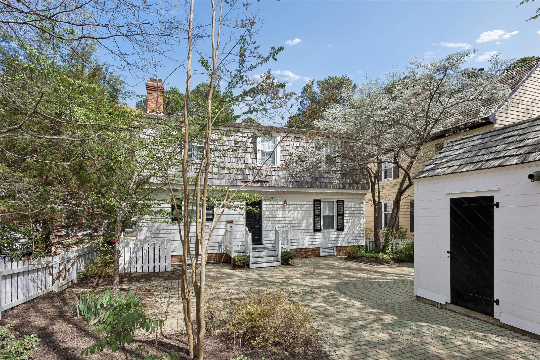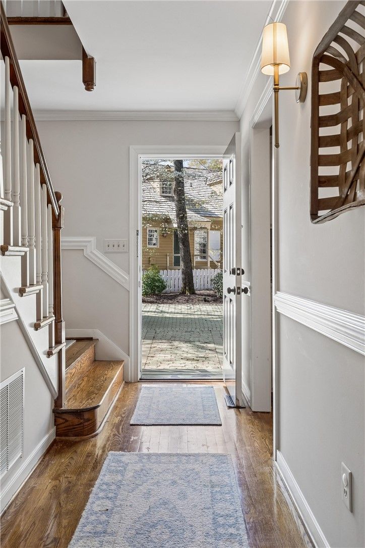 Welcome home to this charming, freshly renovated property in Quarterpath Trace Village of Kingsmill. Designed as a replica of the Ewing House in Colonial Williamsburg, this rare offering features the largest brick patio and yard in the community. Recent updates include hardwood flooring throughout, California Closet systems, an updated kitchen with granite countertops, and renovated bathrooms. The main level offers a formal living room with a brick fireplace, an open living and dining area with built-ins, and an updated kitchen ideal for everyday living and entertaining. Upstairs, the primary suite features a walk-in closet and updated bath, while two additional guest rooms share the full hall bathroom. Updated lighting and fixtures throughout add to the home’s fresh, move-in ready appeal. Located just moments from Kingsmill’s exceptional amenities, residents enjoy over 7 miles of walking trails, 24/7 security, two ponds for kayaking and fishing, a private James River beach, three pools, playgrounds, tennis courts, and more