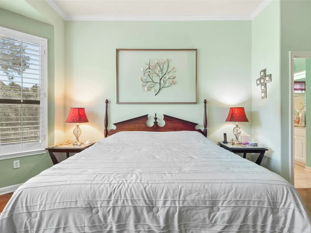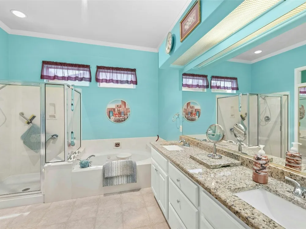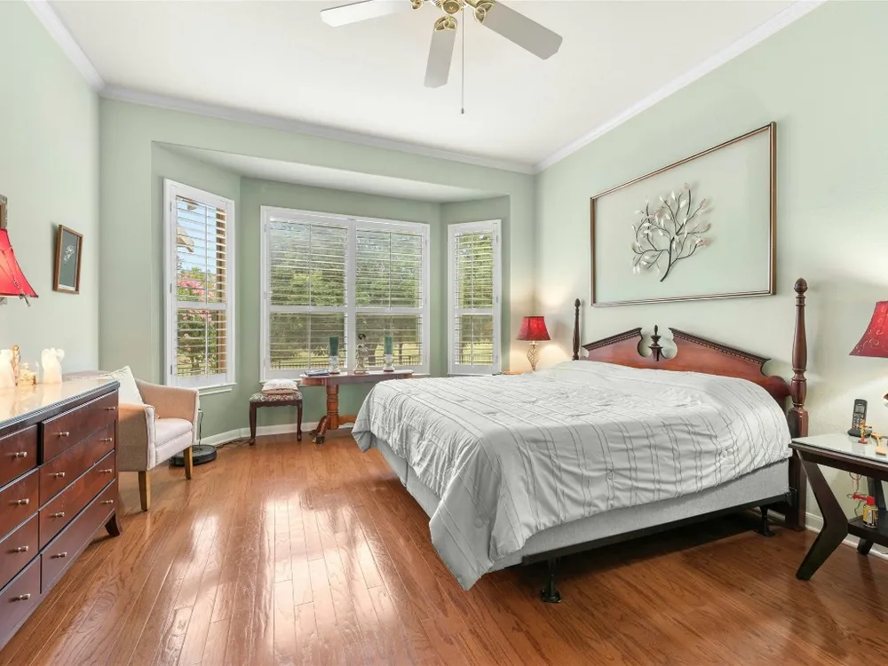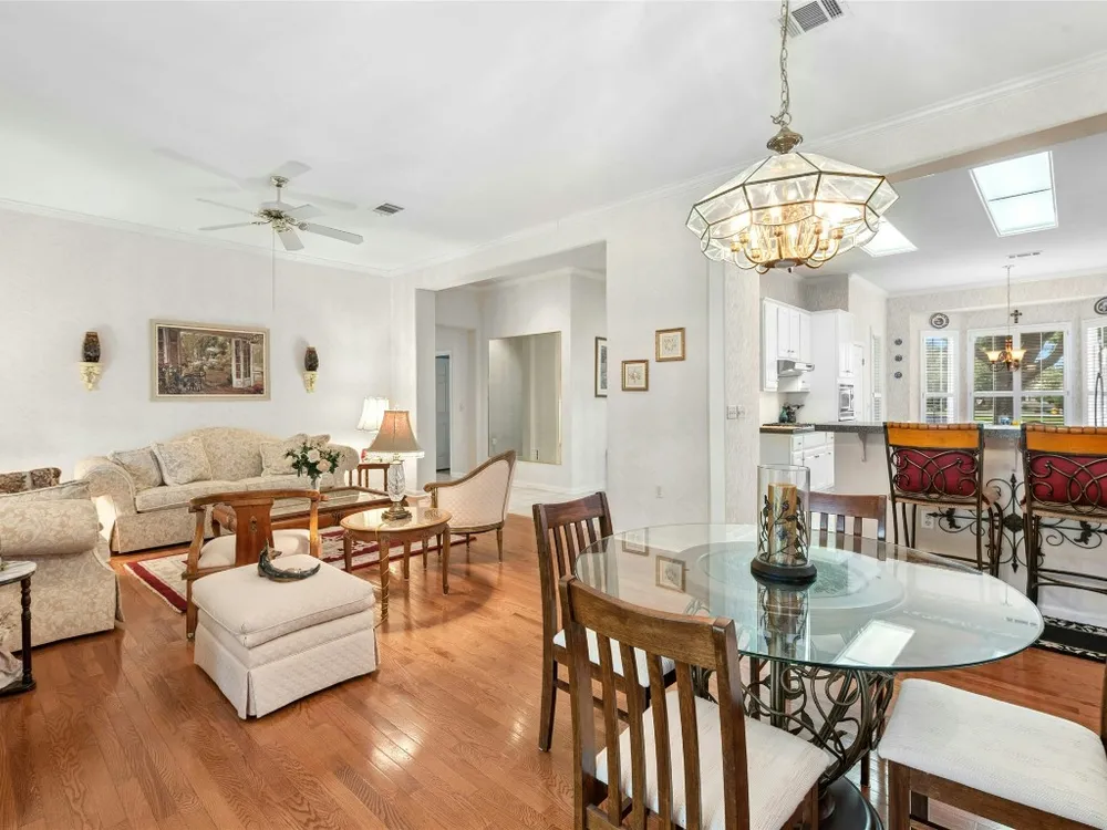 - Breakfast Bar, Ceiling Fan(s), Crown Molding, Separate/Formal Dining Room, Double Vanity, High Ceilings, Kitchen Island, Multiple Dining Areas, Main Level Primary, NoInteriorSteps, Pantry, Quartz Countertops, Recessed Lighting, Walk-In Closet(s)