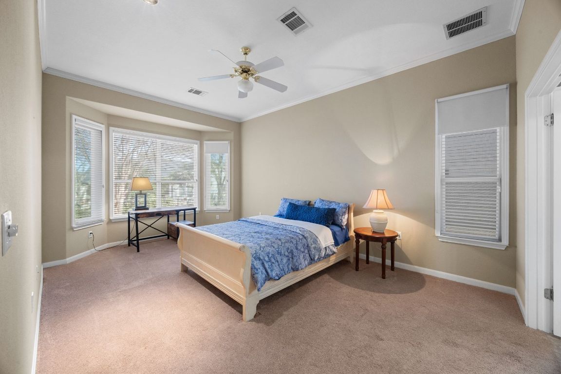 - Bidet, Ceiling Fan(s), Crown Molding, Separate/Formal Dining Room, Double Vanity, Entrance Foyer, Eat-in Kitchen, French Door(s)/Atrium Door(s), Granite Counters, High Ceilings, Multiple Dining Areas, Main Level Primary, NoInteriorSteps, Soaking Tub, Track Lighting, Walk-In Closet(s)