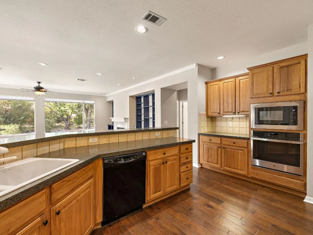 - Built-In Electric Oven, Cooktop, Dishwasher, Electric Cooktop, Disposal, Microwave, Plumbed For Ice Maker, Refrigerator, Water Softener Owned