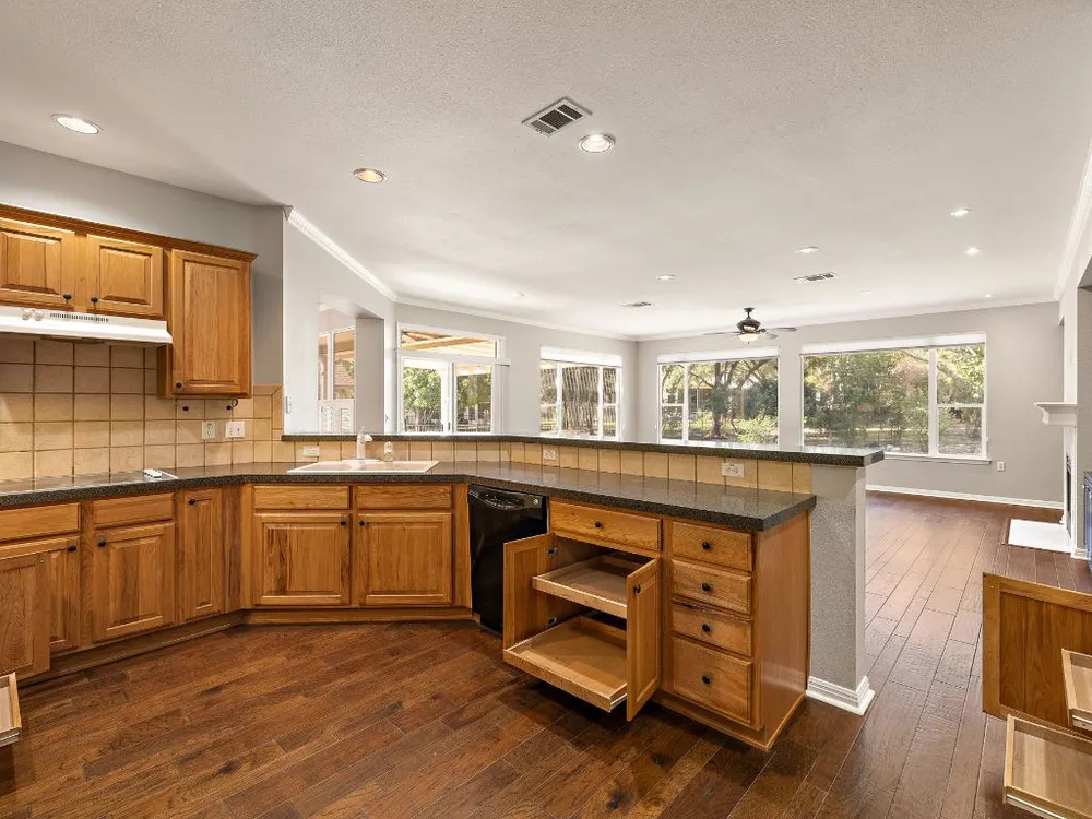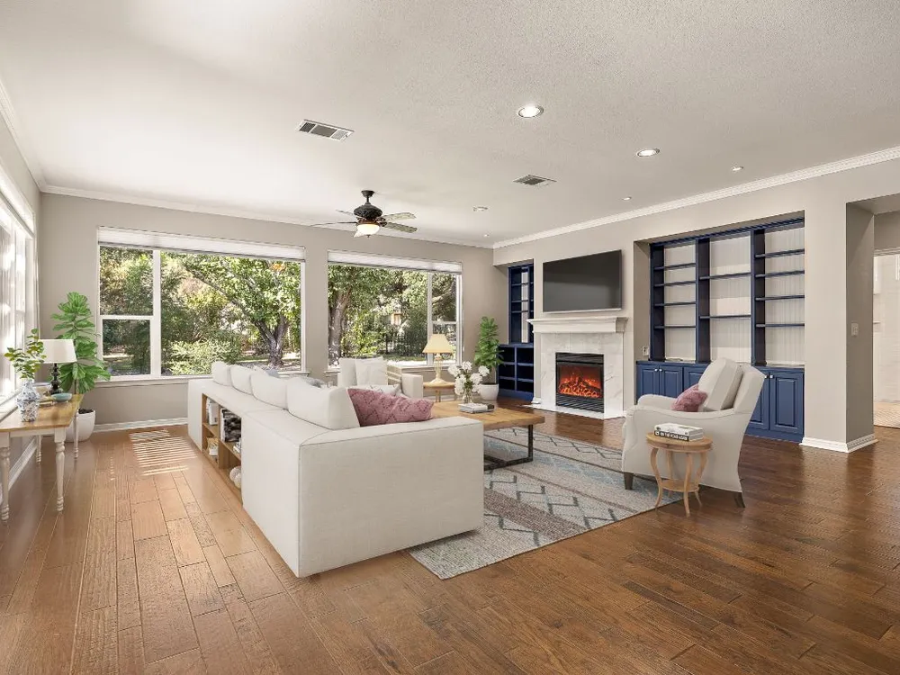 - Bookcases, Built-in Features, Ceiling Fan(s), Separate/Formal Dining Room, Multiple Living Areas, Multiple Dining Areas, Main Level Primary, Open Floorplan, Pantry, Recessed Lighting, Walk-In Closet(s)