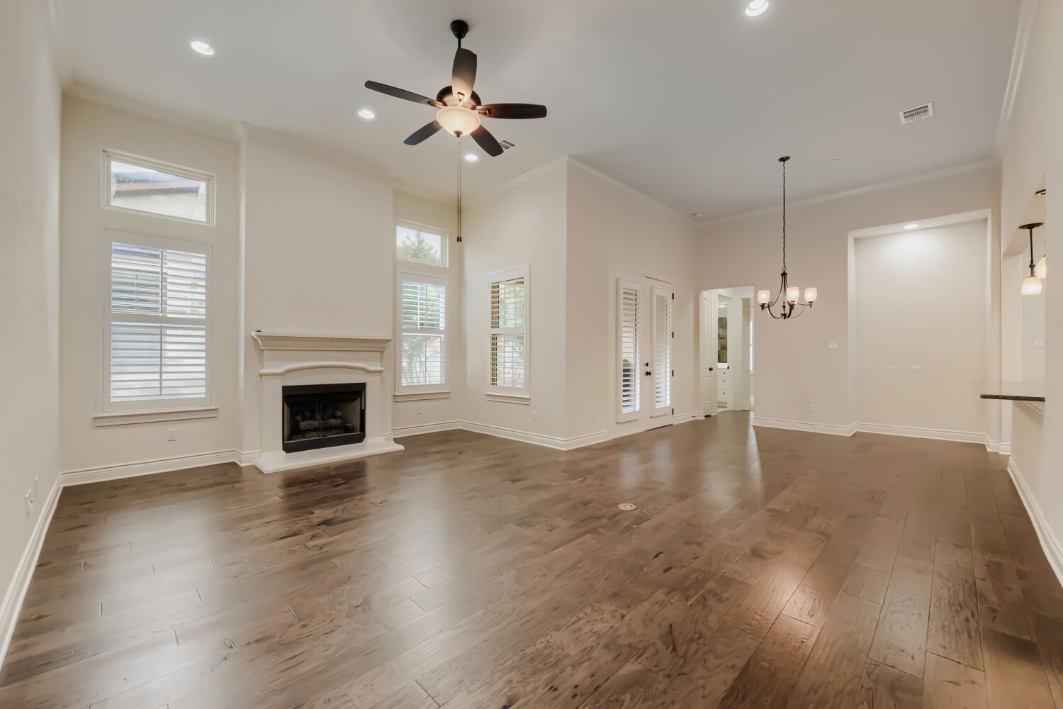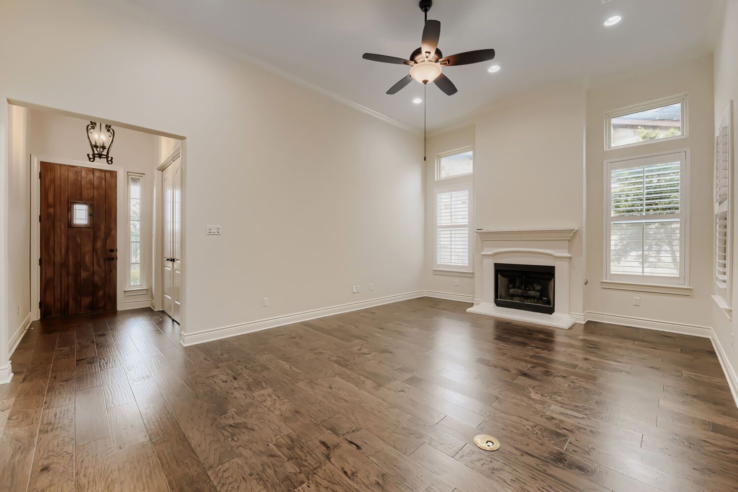 Tucked within the heart of Lakeway, this thoughtfully designed single-story condo offers a rare blend of privacy, comfort, and low-maintenance living. Located in a quiet, beautifully maintained community, 105 Lucia Circle #1 welcomes you with charming stone architecture, manicured landscaping, and a peaceful setting that immediately feels like home. Inside, soaring ceilings and rich wood flooring create a sense of openness throughout the main living spaces. Natural light pours in through oversized windows with plantation shutters, highlighting the spacious living room anchored by a fireplace and framed by tall ceilings that add both character and warmth. Fresh interior paint and new carpet give the home a clean, move-in ready feel! The kitchen is both functional and inviting, featuring granite countertops, abundant cabinetry, stainless steel appliances, and a center island that makes meal prep and gathering easy. The layout flows seamlessly into the dining and living areas, creating an ideal space for everyday living or hosting friends and family. The primary bedroom is privately positioned and offers a spacious, comfortable place to unwind, complete with large windows and an ensuite bath featuring dual vanities and a walk-in shower. A second bedroom and full bathroom provide comfortable accommodations for guests, while a separate flex room offers additional versatility - perfect for a home office, media room, or personal retreat. Just outside, the side patio offers a peaceful outdoor space to relax or entertain, complete with a gas grill already connected to the home’s main gas line - ready for effortless outdoor cooking! Situated just minutes from Lake Travis, golf courses, marinas, hiking trails, and Lakeway’s local restaurants and shops, the location offers the best of Hill Country living with everyday conveniences close by. Comfortable, low-maintenance, and perfectly positioned - this is Lakeway living made easy.