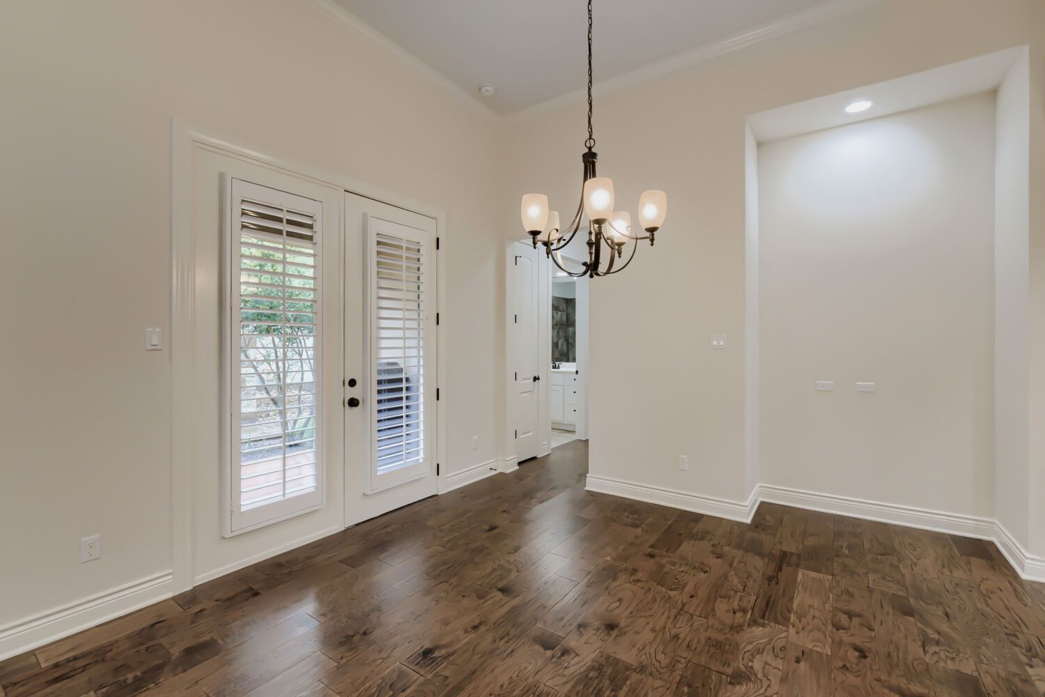 - Breakfast Bar, Crown Molding, Entrance Foyer, French Door(s)/Atrium Door(s), High Ceilings, Main Level Primary, NoInteriorSteps, Pantry, Recessed Lighting, Study, Walk-In Closet(s)