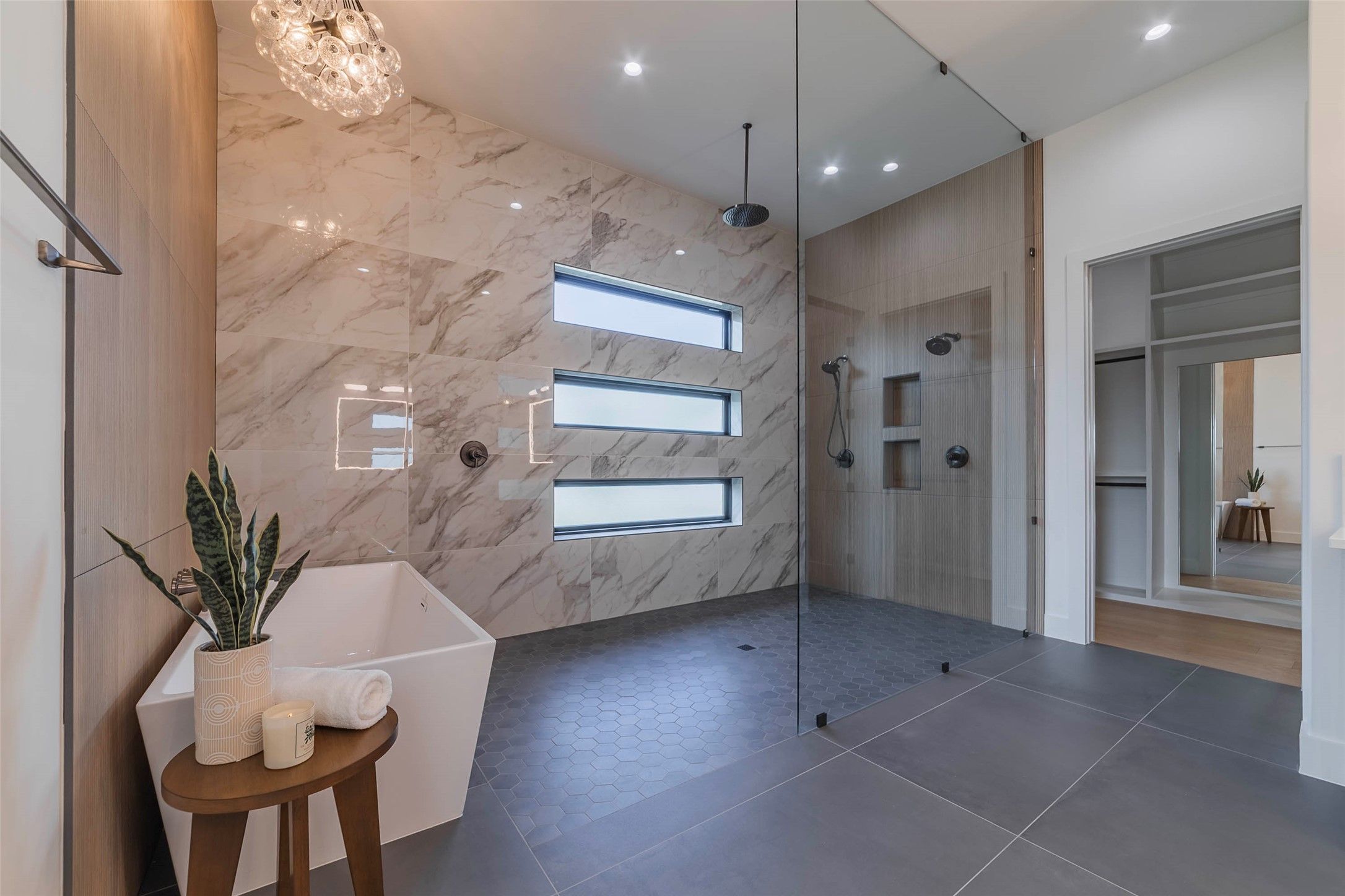- Wet Bar, Breakfast Bar, Bookcases, Built-in Features, Ceiling Fan(s), Entrance Foyer, Granite Counters, High Ceilings, High Speed Internet, Kitchen Island, Low Flow Plumbing Fixtures, Main Level Primary, NoInteriorSteps, Open Floorplan, Pantry, Quartz Countertops, Recessed Lighting, Soaking Tub, Vaulted Ceiling(s), Bar, Walk-In Closet(s)