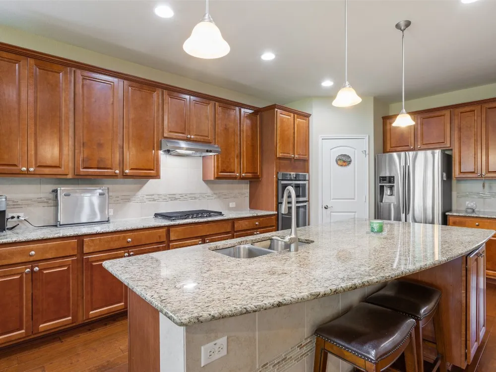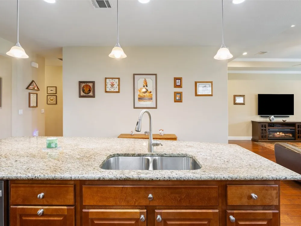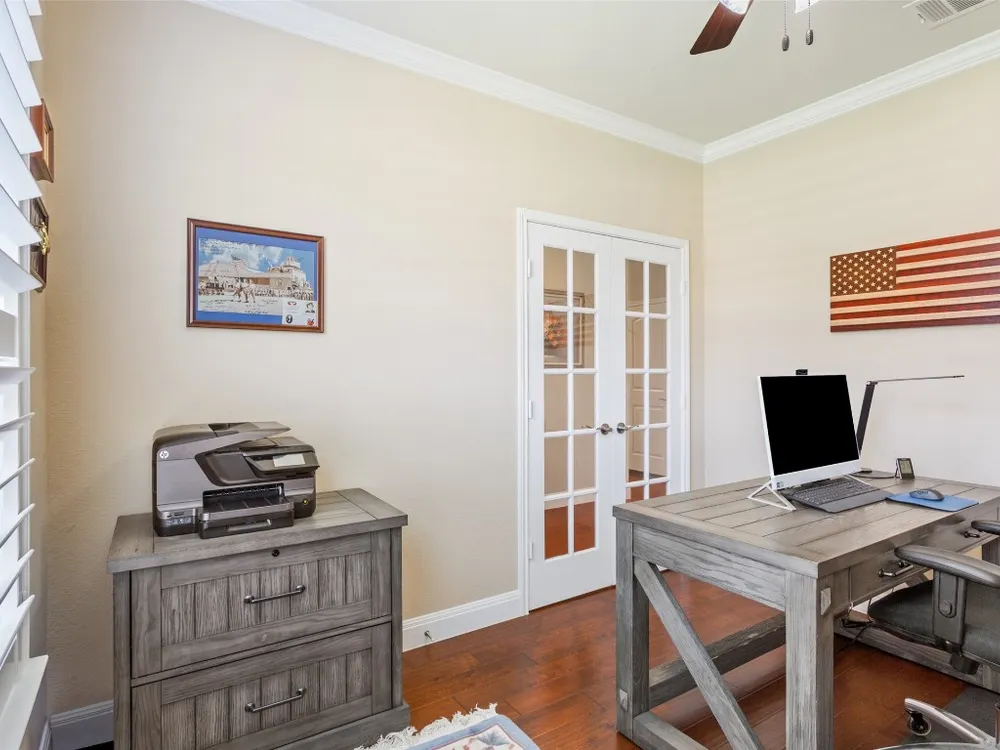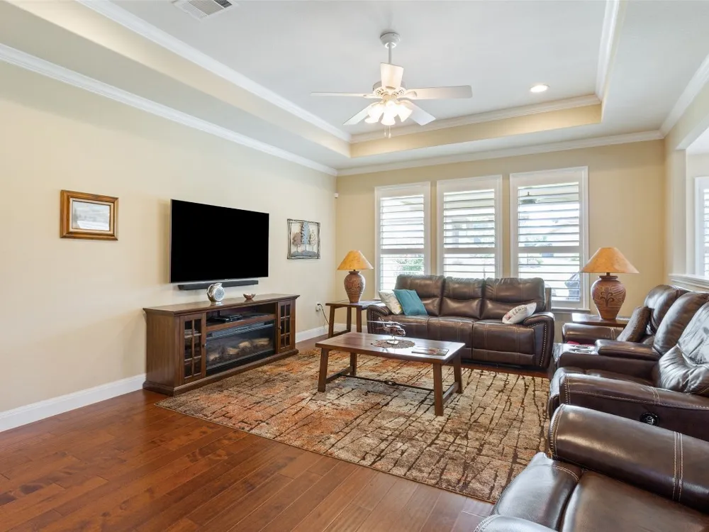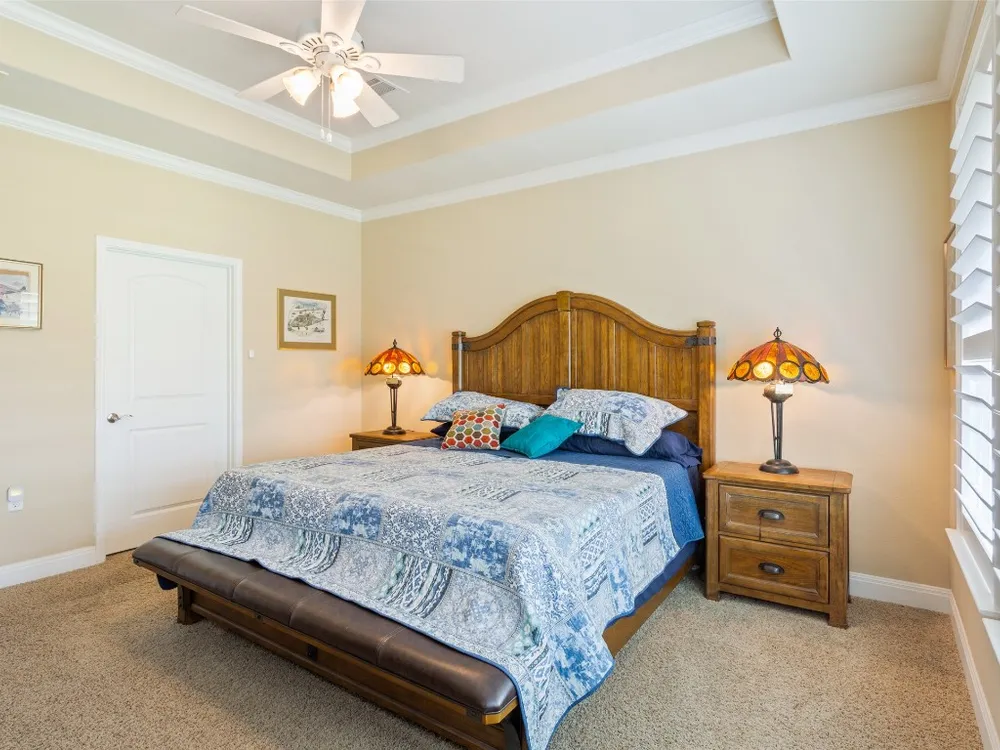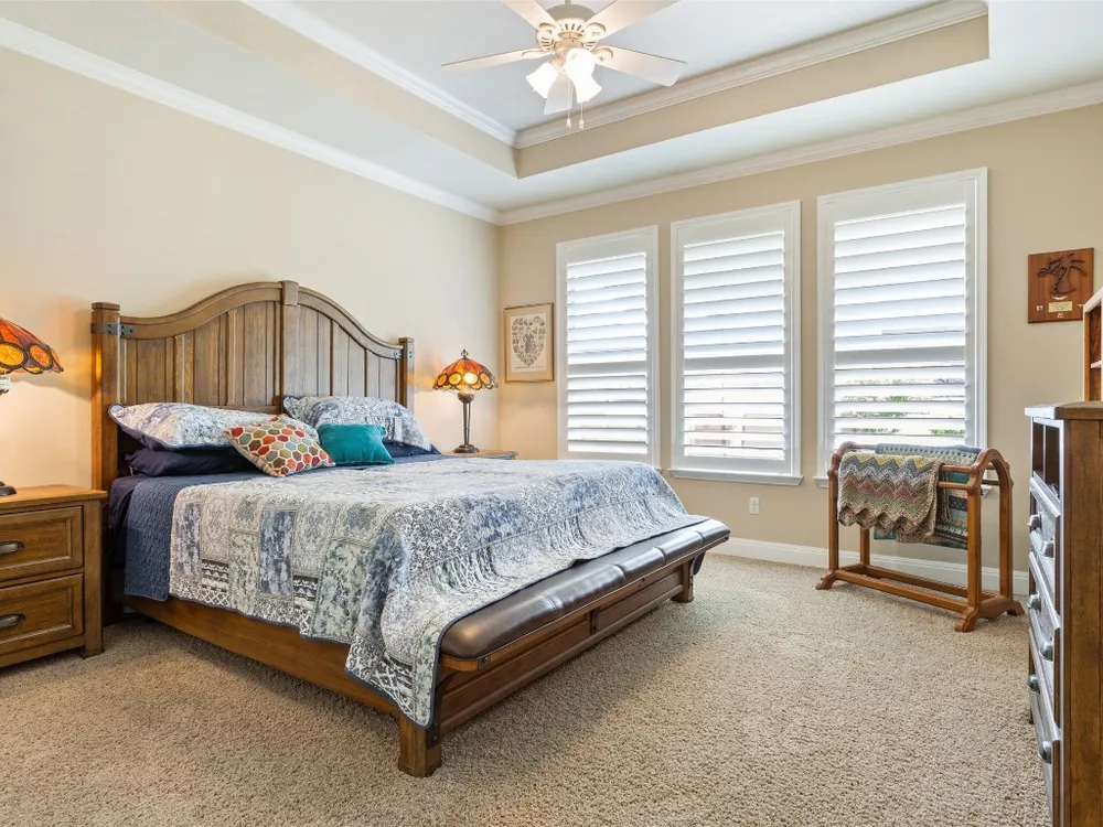 - Breakfast Bar, Tray Ceiling(s), Ceiling Fan(s), Crown Molding, Double Vanity, Entrance Foyer, French Door(s)/Atrium Door(s), Granite Counters, High Ceilings, Kitchen Island, Main Level Primary, NoInteriorSteps, Open Floorplan, Pantry, Recessed Lighting, Walk-In Closet(s)