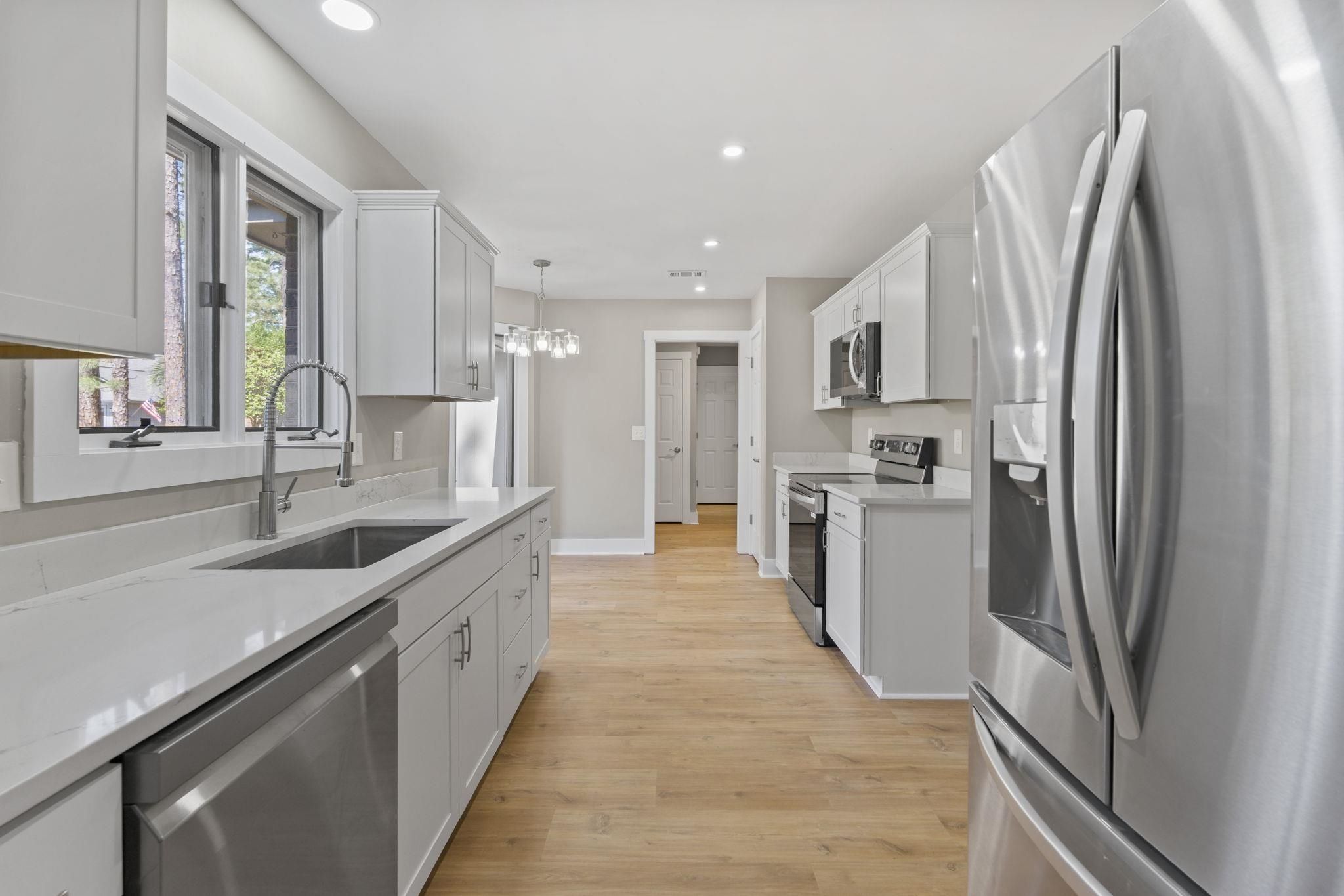Completely renovated home in the established Myrtle Trace community, ideally located just minutes from Carolina Forest shopping, dining, golf, and everyday conveniences. This move-in ready property showcases extensive, high-quality upgrades with a fresh, modern feel throughout. Step inside to a bright and inviting interior featuring high ceilings, fresh paint, and all new flooring. The fully redesigned kitchen offers brand new cabinetry, stainless steel appliances, updated fixtures, and a clean, contemporary style that stands out from other homes in the area. Both bathrooms have been beautifully updated with new vanities, modern finishes, and a custom tile walk-in shower in the primary suite. Throughout the home, you’ll find all new, wider contemporary baseboards and door trim, adding a polished and elevated look, along with all new closet shelving for improved organization and functionality. Additional updates include new ceiling fans, updated lighting, a roof replaced in October–November 2025, and a brand new water heater installed in 2026, offering added value and peace of mind. This home offers a flexible layout with a third bedroom or office option, complete with a fireplace, creating a versatile and comfortable space. Outside, enjoy a long driveway with ample parking and a private backyard surrounded by mature trees, providing a serene, wooded setting. Located in Myrtle Trace with access to community amenities including a pool and clubhouse, and convenient proximity to Carolina Forest, Myrtle Beach, and the Grand Strand, this property delivers a rare combination of updates, location, and lifestyle.