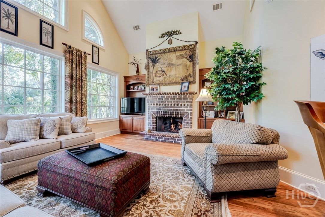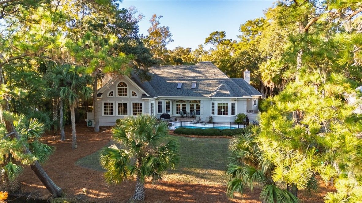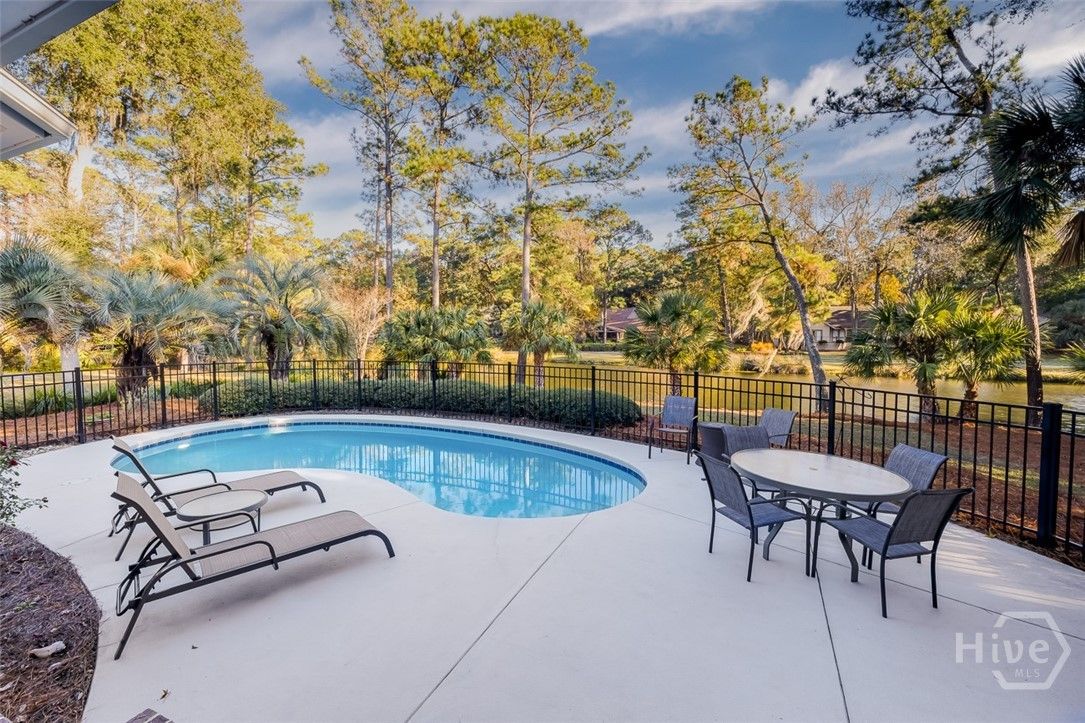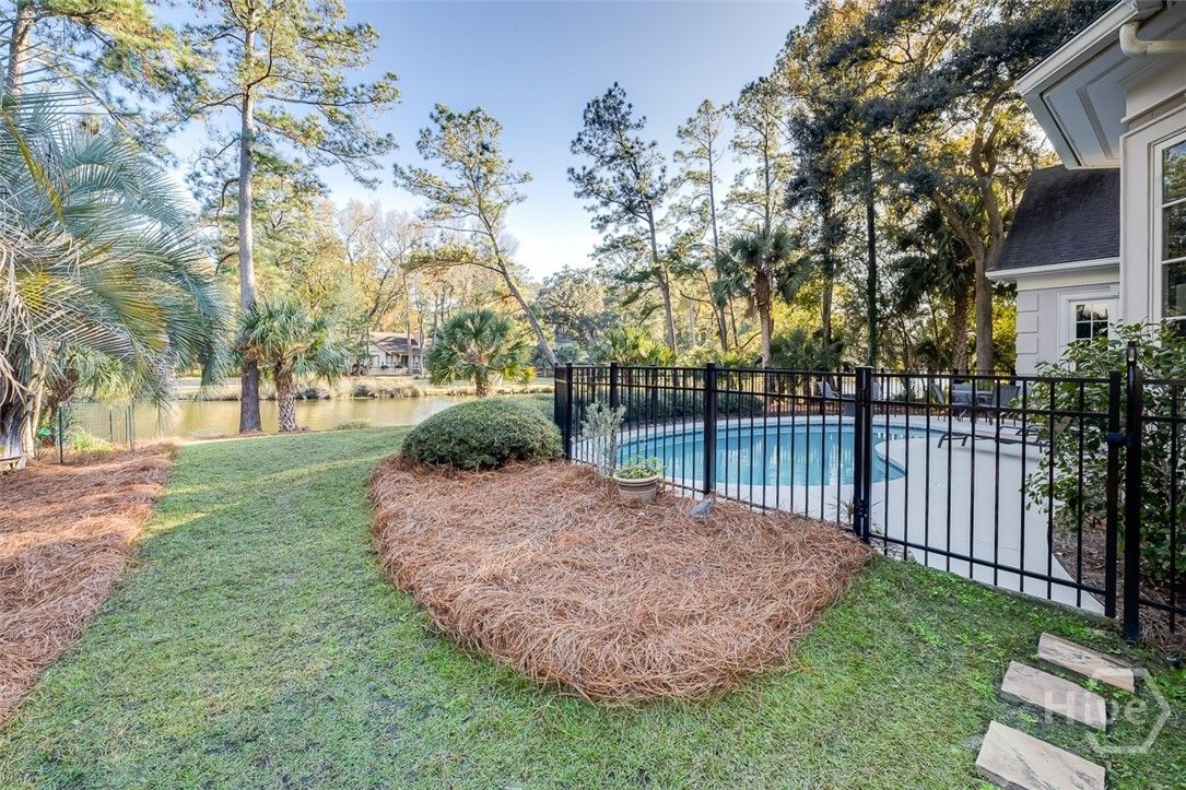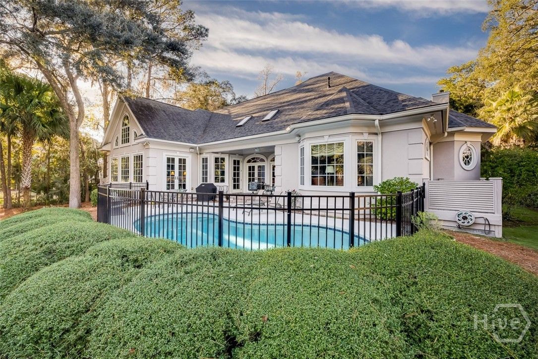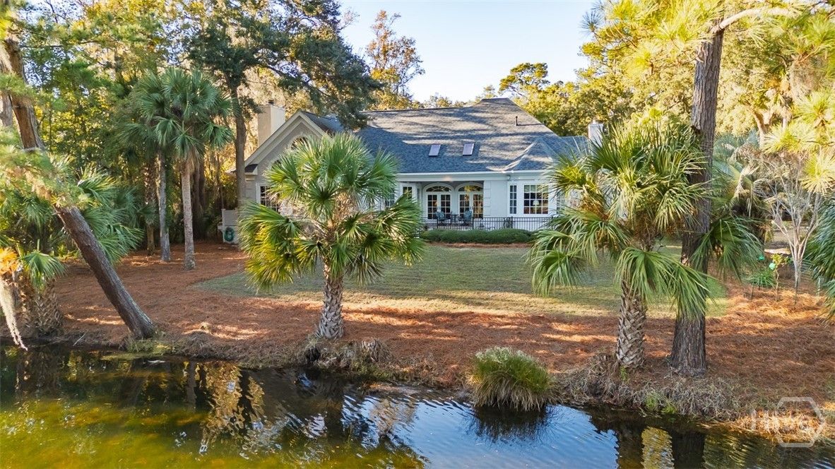 Immaculately maintained and beautifully appointed, this luxury custom-built 4BR/4BA residence in The Landings offers refined Lowcountry living with tranquil lagoon views. Designed for comfort and ease, the home is truly turnkey and thoughtfully appointed throughout. Highlights include soaring volume ceilings, two fireplaces (gas or wood), an exceptional home office, a well-designed kitchen, and a generous laundry room with sink. The spacious primary suite is on the main level and features triple closets, a gracious bath with architectural ceiling detail, and direct access to the covered patio and pool—ideal for private, peaceful enjoyment. All primary living spaces are on one level, with an upstairs bonus room offering a wet bar, the fourth bedroom, and full bath—perfect for guests or multigenerational living. Outdoors, the private backyard showcases a sparkling pool and fenced patio area with natural gas grill, ideal for relaxed entertaining. A whole-house generator provides added peace of mind. Three garage spaces—two full-size plus a third with workbench and additional storage—complete this exceptional offering. A rare combination of quality, privacy, and lifestyle in The Landings. Some amenities require additional membership.