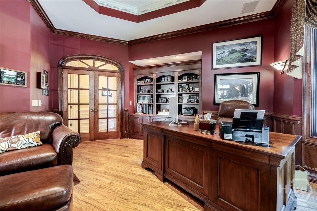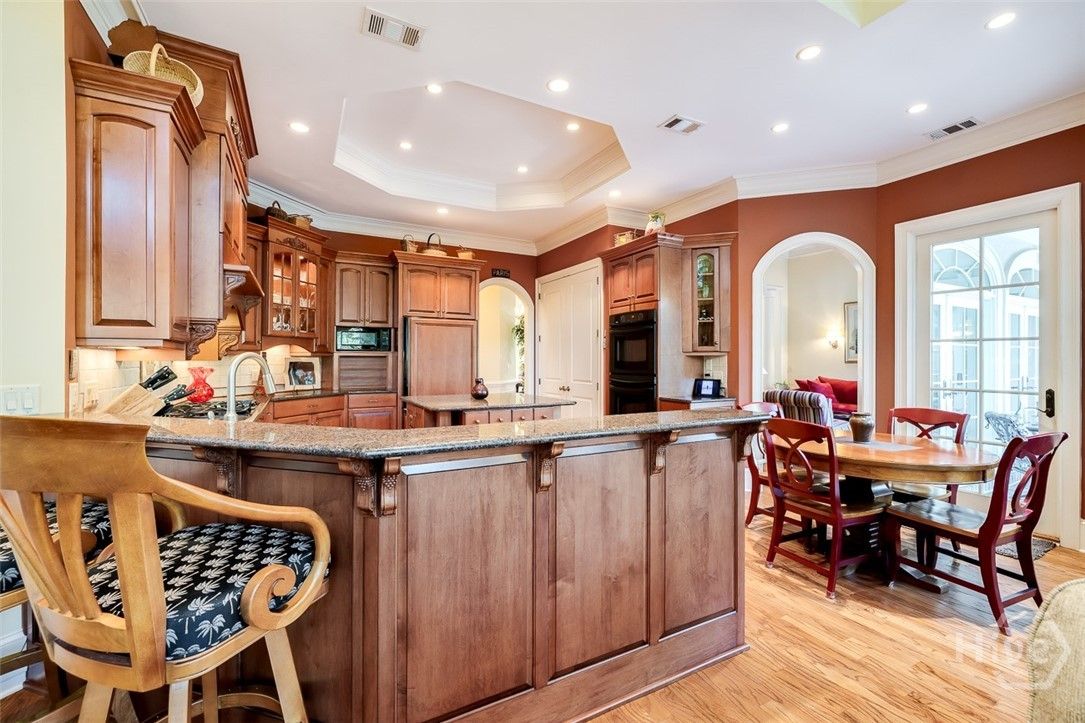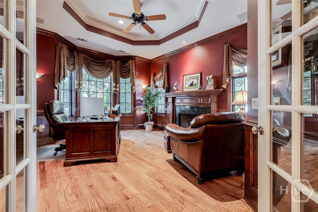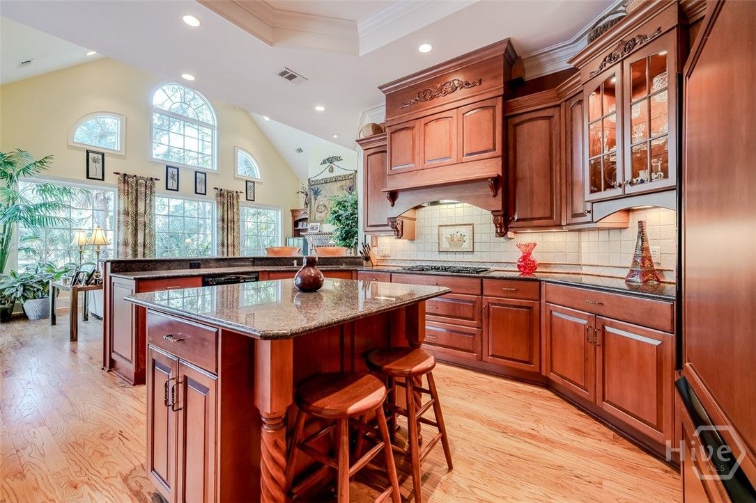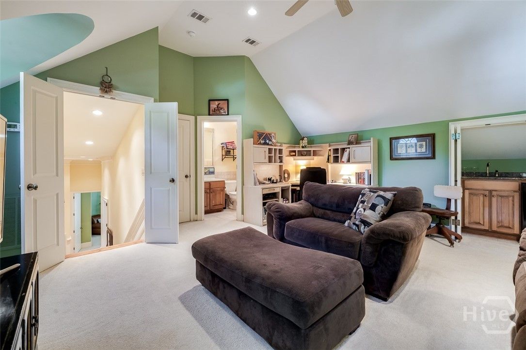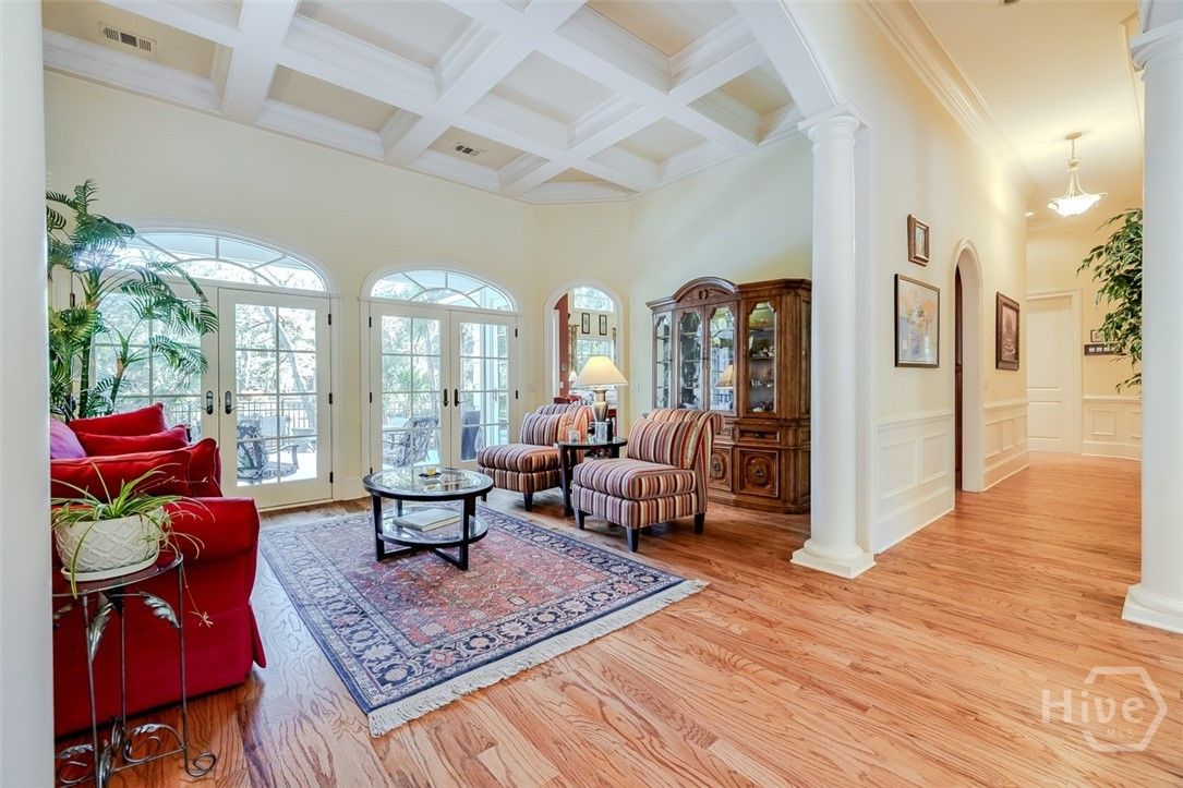 Immaculately maintained and beautifully appointed, this luxury custom-built 4BR/4BA residence in The Landings offers refined Lowcountry living with tranquil lagoon views. Designed for comfort and ease, the home is truly turnkey and thoughtfully appointed throughout. Highlights include soaring volume ceilings, two fireplaces (gas or wood), an exceptional home office, a well-designed kitchen, and a generous laundry room with sink. The spacious primary suite is on the main level and features triple closets, a gracious bath with architectural ceiling detail, and direct access to the covered patio and pool—ideal for private, peaceful enjoyment. All primary living spaces are on one level, with an upstairs bonus room offering a wet bar, the fourth bedroom, and full bath—perfect for guests or multigenerational living. Outdoors, the private backyard showcases a sparkling pool and fenced patio area with natural gas grill, ideal for relaxed entertaining. A whole-house generator provides added peace of mind. Three garage spaces—two full-size plus a third with workbench and additional storage—complete this exceptional offering. A rare combination of quality, privacy, and lifestyle in The Landings. Some amenities require additional membership.
