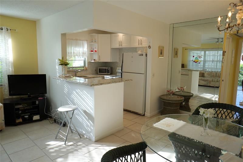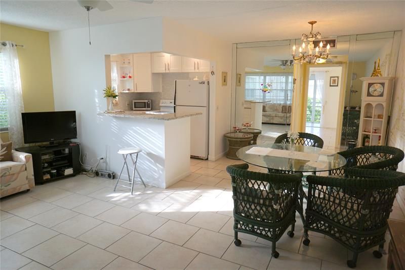 Charming 1BR/1.5BA Condo in Century Village. Unit with modern updates. Tiled flooring all trough. New wood kitchen cabinets, and granite countertop and kitchen window. Updated both bathrooms with new vanities. Large screen tailed balcony with hurricane shutters and garden view to the north. Clubhouse with movie theater and mayor entertainment activity. Within this secured, gated haven, enjoy yourself in amenities like tennis, pickleball, shuffleboard, heated & indoor pools, fitness center, and jogging paths. With 24-hr security and drive by patrol assistance. Enjoy the added luxury of free bus service, ensuring effortless commutes throughout. Century Village East represents the luxurious, leisure-filled living. Adult 55+ community. All furniture's included in the sale.