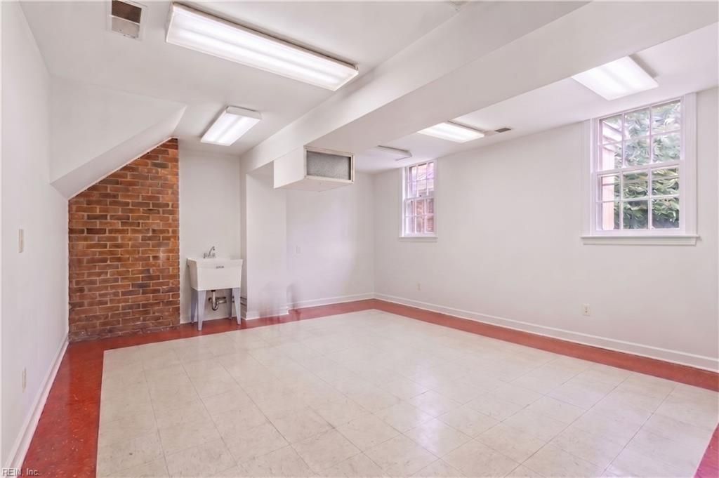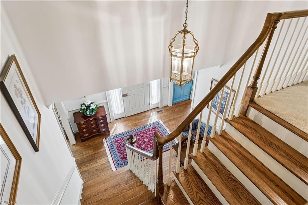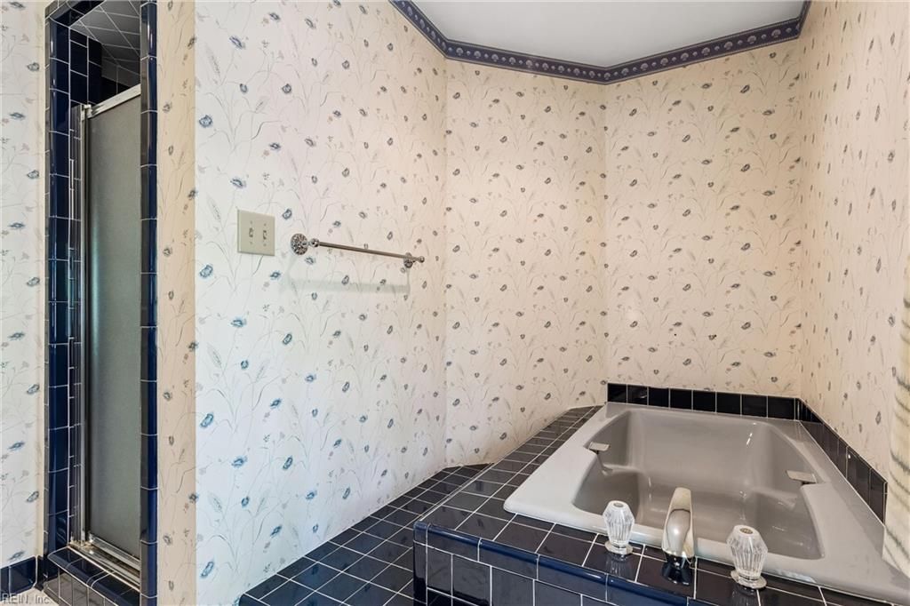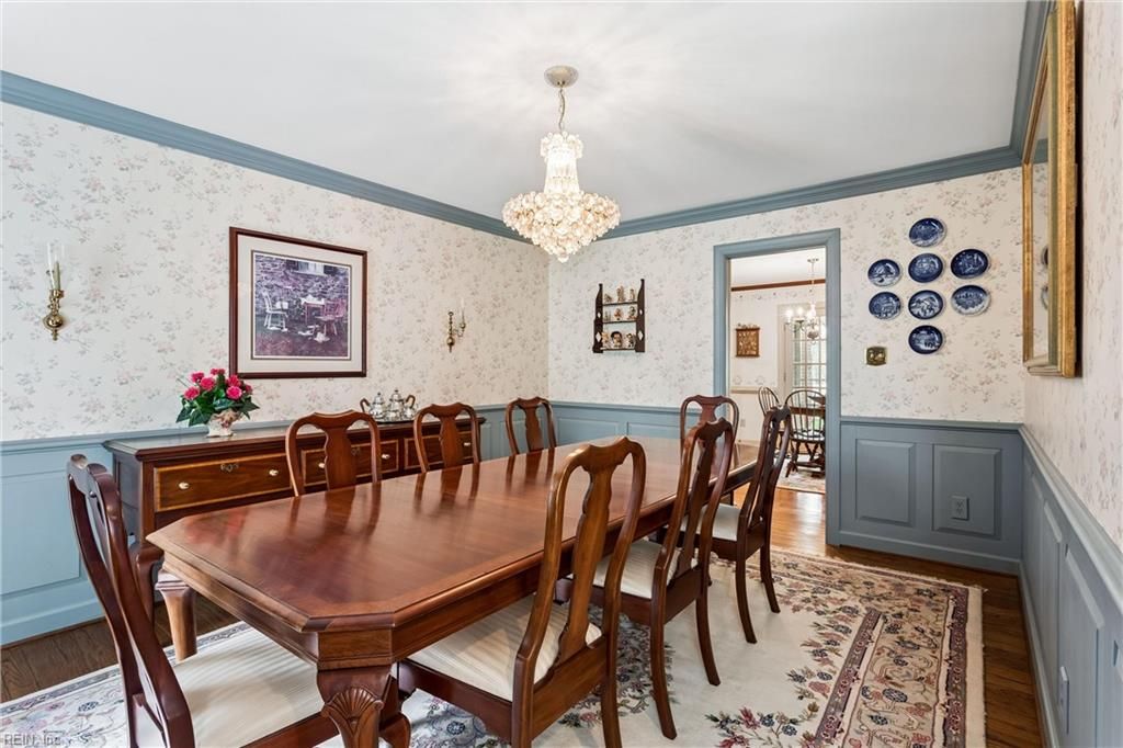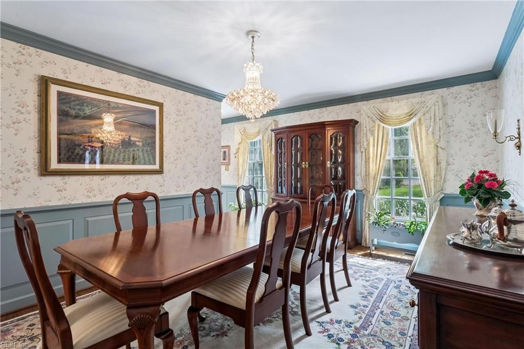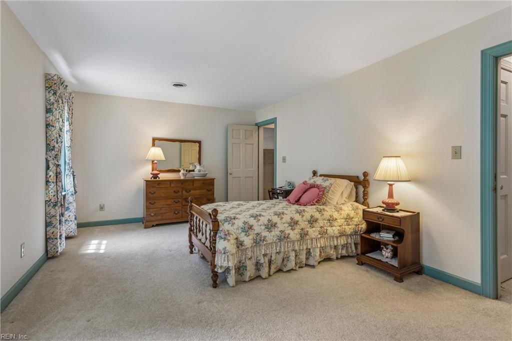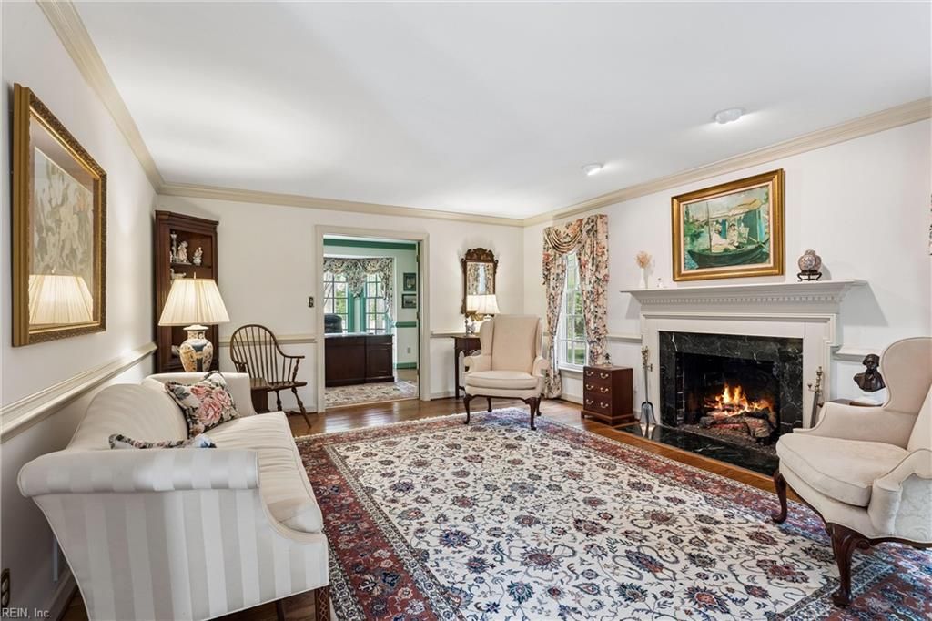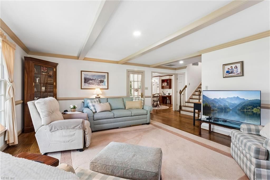 Ronald Curtis custom brick home on a quiet cul-de-sac between the 6th and 7th fairways of the Kingsmill River Course. One-owner residence features random-width hardwoods and custom cherry cabinets from Lancaster County, PA. Kitchen includes a new GE Cafe refrigerator and cabinets with removable stained-glass inserts. The great room offers beamed ceilings and a brick fireplace, plus a formal living room with a second marble fireplace.The floor plan allows a main-level bedroom conversion as the dining room sits adjacent to a full bath and large closet. The study can transition to a dining space; removing built-ins reveals 2ft of extra depth over finished drywall. Upstairs, the primary suite has two walk-in closets. The massive 4th bedroom has dual staircases and attic access for a potential en-suite addition.Garage includes a contained workshop with professional ventilation/exhaust. Updates include a 2024 upstairs HVAC and a 40-year roof.