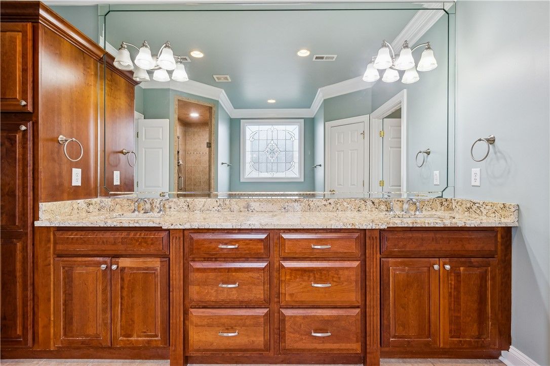 Beautiful move in ready home in Ford’s Colony offering 2,850 square feet with 4 bedrooms and 3.5 baths, including a first floor primary suite. Newly refinished hardwood floors anchor the main level, and the home has been professionally painted throughout. Custom built-ins by Colonial Kitchens add character and smart functionality, while a custom added all season sunroom with its own mini split expands the living space year round. Plantation blinds throughout add a finished touch. Outdoor features include a Trex deck with natural gas hookup for a grill or smoker and an irrigation system.