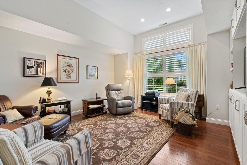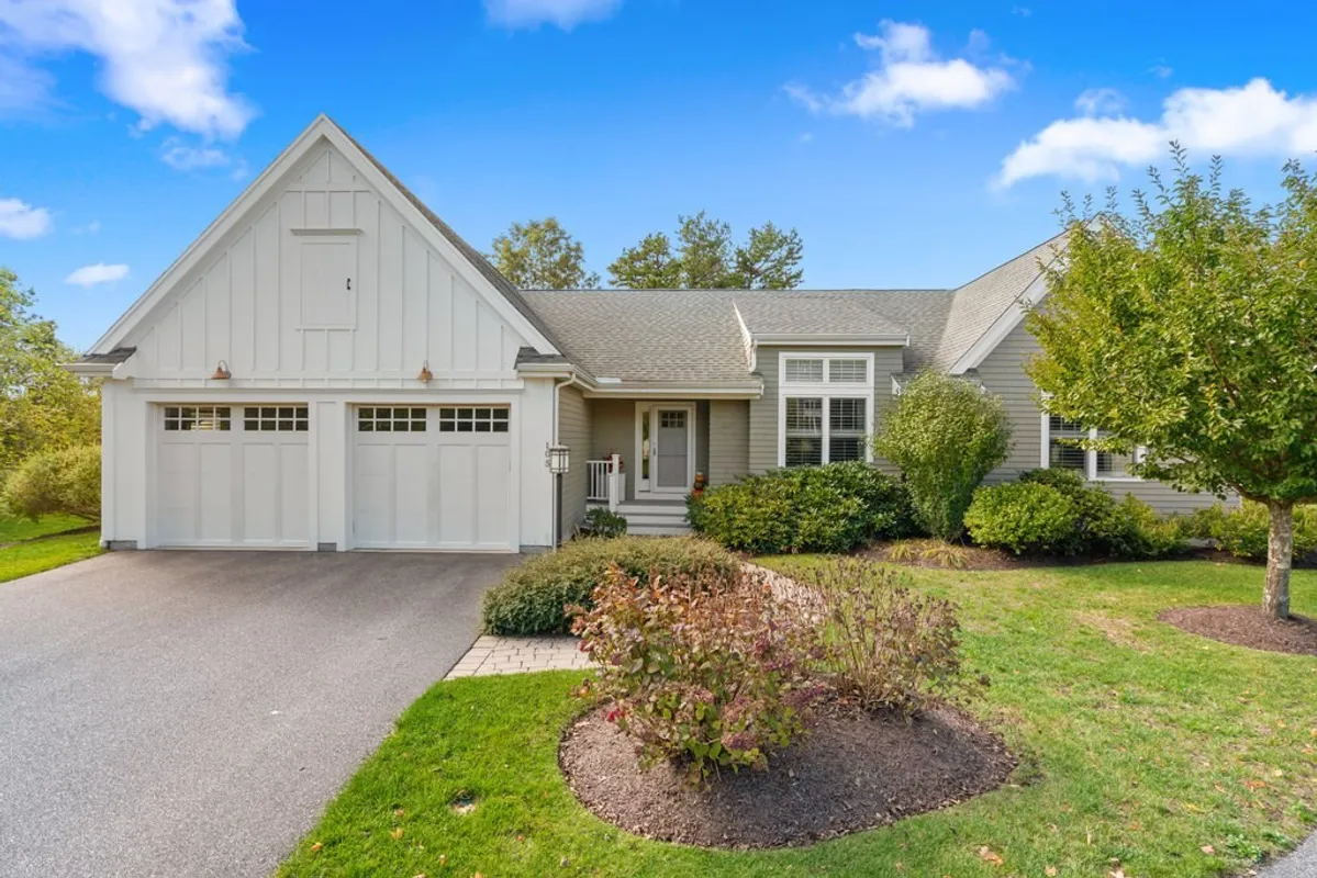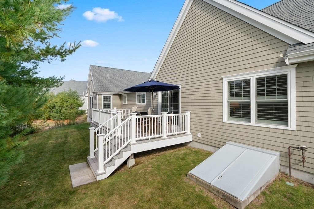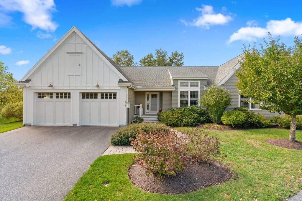 Stunning free-standing, open concept condominium in the desirable 55+ Seton Highlands neighborhood at The Pinehills! Offering premium upgrades throughout, the welcoming living room features a cathedral ceiling, a quartz-surround gas fireplace, plantation shutters, and Hunter Douglas blinds. The bright kitchen/dining area has a sliding door that opens to a spacious composite deck overlooking a large backyard—ideal for relaxing or entertaining guests. The kitchen is outfitted with upgraded white cabinetry, Bosch stainless steel appliances, double ovens, a gas cooktop, a glass tile backsplash, and pull-out shelves in every cabinet. The den is enhanced with a privacy wall that separates it from the foyer. The master ensuite boasts upgraded carpet, a tray ceiling, custom blinds, and a walk-in closet. A generously-sized guest bedroom and a full bath complete this perfectly proportioned home. Subject to suitable housing.