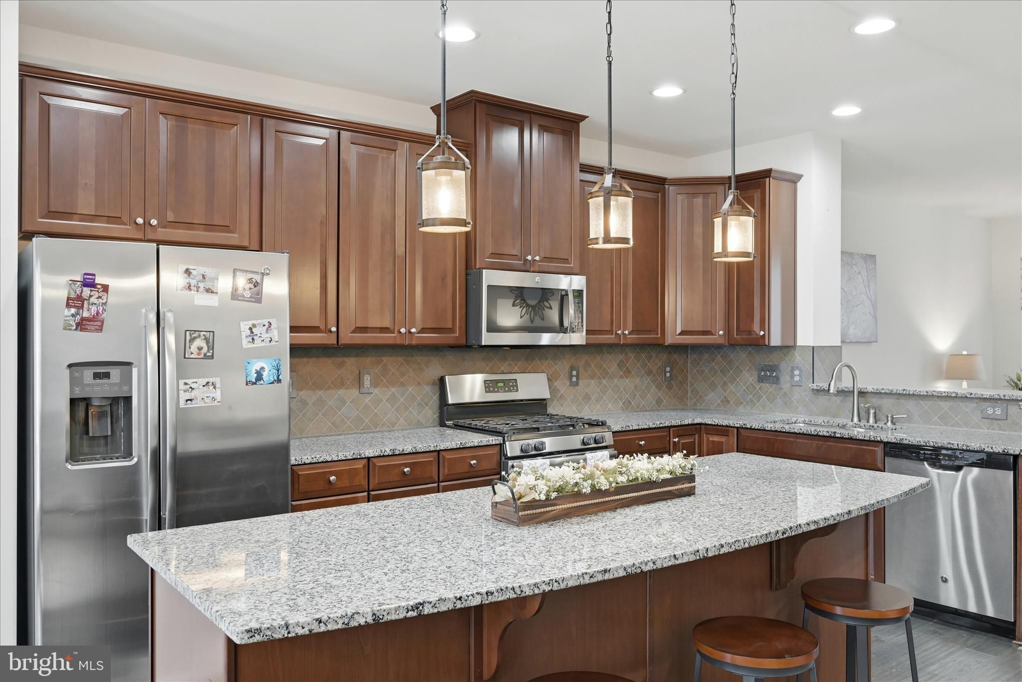 Fresh, polished, and truly turn-key—this beautifully upgraded townhome is ready to impress from the moment you arrive. Thoughtful updates include a brand-new roof (2026), stylish all-new light fixtures, new carpet throughout the upper level, and custom window coverings that add a clean, modern feel. Step outside to enjoy the new patio, perfect for relaxing or hosting, while the home’s exterior has been recently power washed—including the windows—for a crisp, like-new appearance. Inside, the open-concept layout is filled with natural light and elevated by tasteful designer finishes throughout—creating a warm, inviting space that’s ideal for both everyday living and entertaining. Built in 2017, this home offers over 2,300 finished square feet across three levels, featuring 3 bedrooms, 2 full baths, and 2 half baths. The heart of the home is the gourmet kitchen, complete with granite countertops, a tile backsplash, stainless GE appliances, and a large center island with seating—perfect for gathering. Hardwood flooring flows through the main living areas, adding both durability and style. Upstairs, the spacious primary suite features a private bath with double vanities, an oversized walk-in shower, and a generous walk-in closet. Two additional bedrooms share a well-appointed full bath. All new faucets! The entry level offers a welcoming foyer, garage access, powder room, and a versatile recreation room with hardwood flooring and walk-out access to the backyard. Enjoy outdoor living on the large Trex-style deck, ideal for entertaining or unwinding. Set within a vibrant 117-acre lake community, residents enjoy an impressive list of amenities including a dog park, pickleball and tennis courts, walking and biking trails, natural lake access, and a community lodge. Even more exciting—the additions include a pool, clubhouse, fitness center, and pier. Located in a highly convenient area close to schools, shopping, and major commuter routes including Rt. 81 and Rt. 66, this home offers the perfect blend of comfort, style, and accessibility. Outdoor enthusiasts will love being just a short drive from the Shenandoah River, Skyline Drive, the Appalachian Trail, and numerous parks. Move-in ready, beautifully maintained, and packed with upgrades—this is one you don’t want to miss.