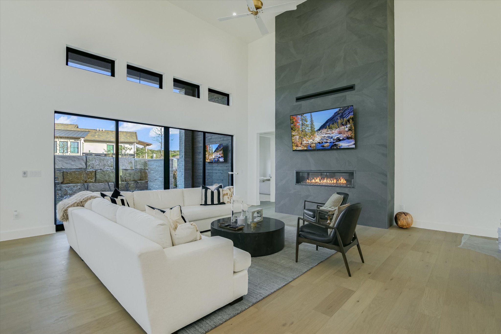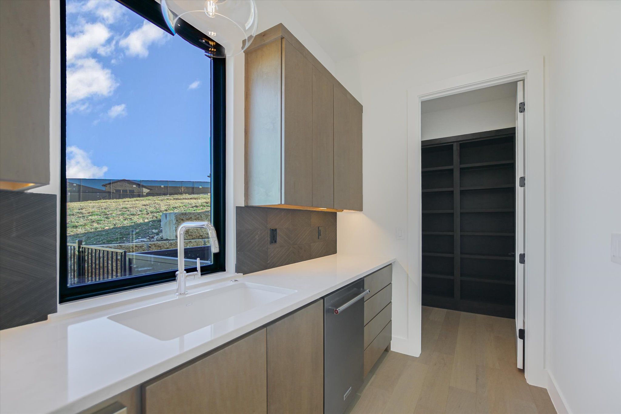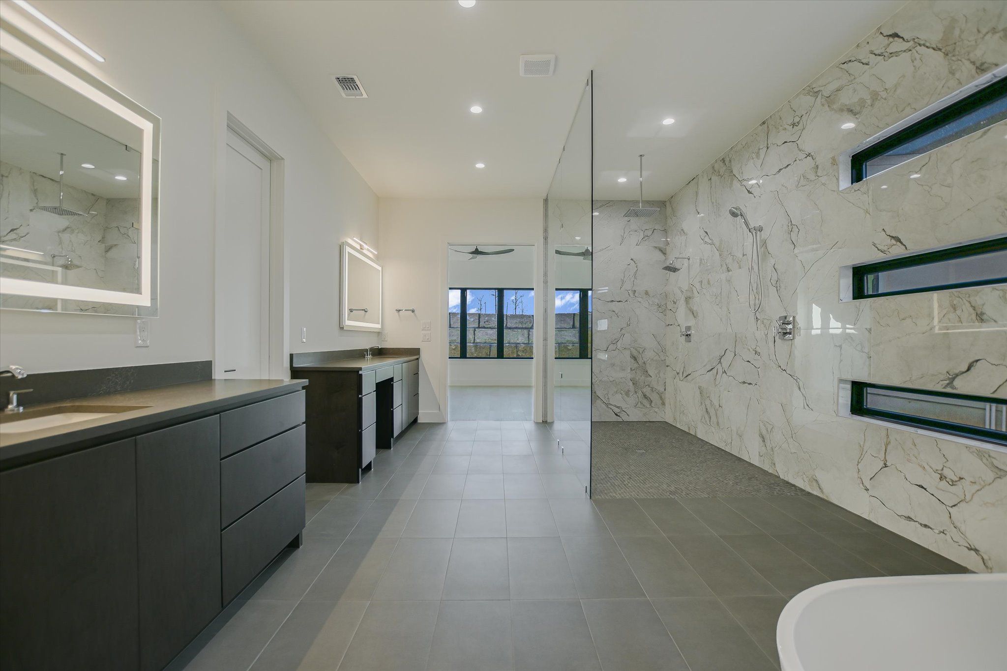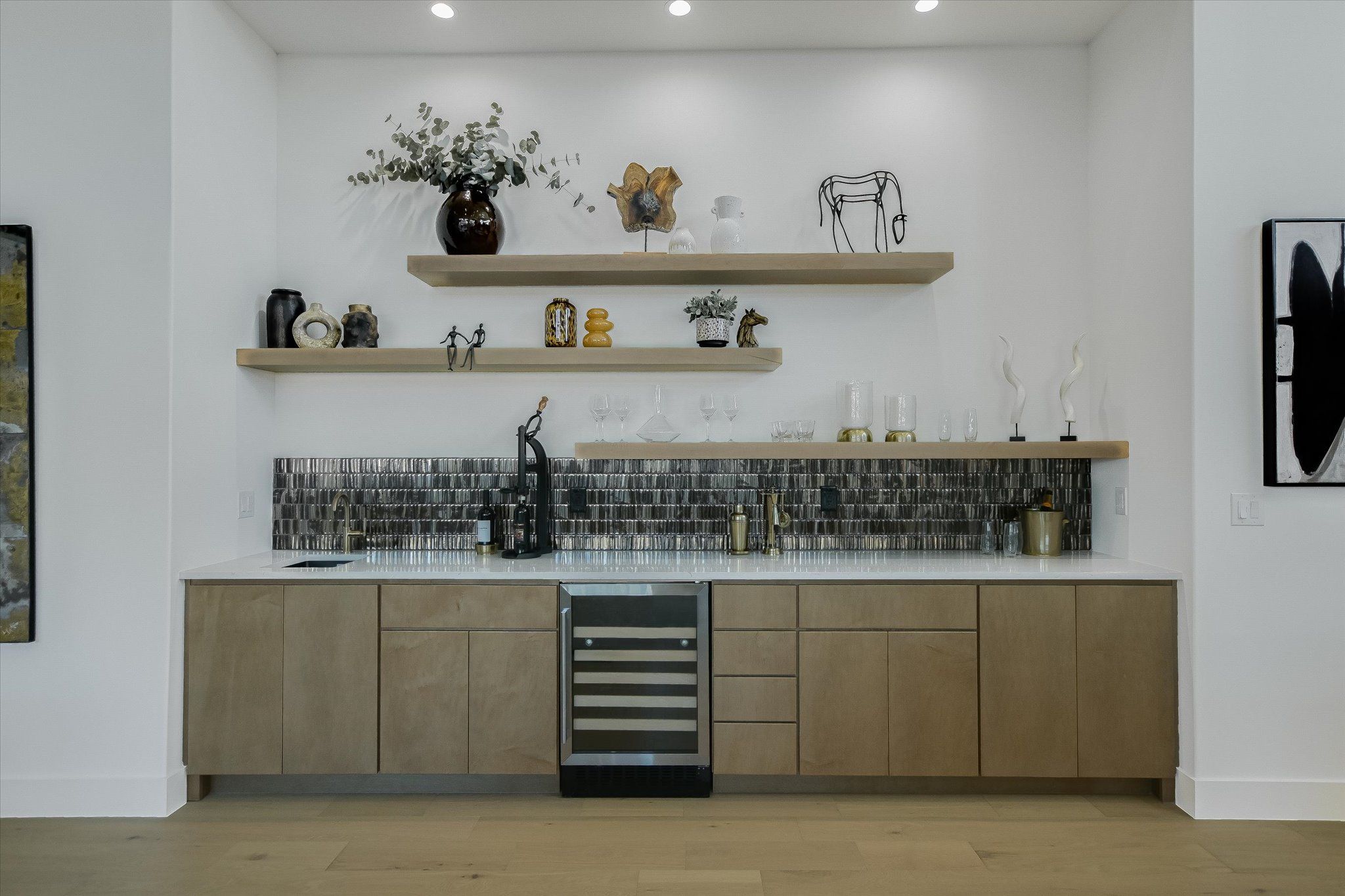 - Wet Bar, Built-in Features, Ceiling Fan(s), Chandelier, Double Vanity, Entrance Foyer, Eat-in Kitchen, High Ceilings, Kitchen Island, Main Level Primary, NoInteriorSteps, Open Floorplan, Pantry, Quartz Countertops, Recessed Lighting, See Remarks, Soaking Tub, Bar, Walk-In Closet(s)