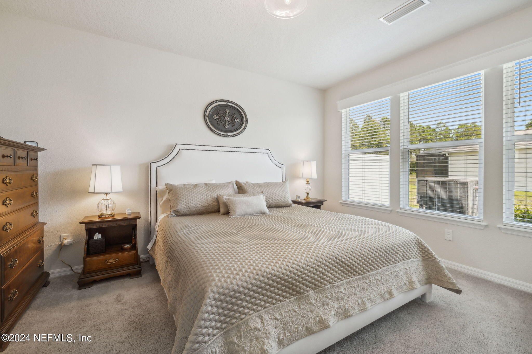 GREAT INVESTOR OPPORTUNITY! SELLER REQUIRES A 3 YEAR LEASE-BACK AT MARKET MONTHLY RENTAL RATE (currently $2900) AS A CONDITION OF THE SALE. Situated on a beautiful corner lot, this Ellenwood villa offers added privacy and an enhanced sense of space, making it the perfect retreat. The home has $32,000 in upgrades and finishes not included in the basic new construction home! To begin with, there are amazing California Closet built-ins in the great room/dining room and the office that are not only beautiful but also provide functionality and a great use of the space. Don't miss those photos! You will love the screened lanai, ideal for enjoying the outdoors while staying protected from the elements, plus a paver patio. The kitchen has a french door refrigerator and the seller has included the washer, dryer, a drop zone, window coverings, raised toilets, and a ring doorbell in the offering. Don't miss those photos! You will love the screened lanai, ideal for enjoying the outdoors while staying protected from the elements, plus a paver patio. The kitchen has a french door refrigerator and the seller has included the washer, dryer, a drop zone, window coverings, raised toilets, and a ring doorbell in the offering. Both baths have been updated with beautiful walk-in showers and there is custom lighting in the kitchen, living room and owner's suite. The garage has been upgraded with an epoxy floor & built-in storage, providing both durability and organization. Don't miss viewing this home. You will not find a more meticulous owner who will continue to care for the home like it is theirs! (There are no pets at the residence.) Lawn care and irrigation included in your HOA fee. There is a on time capital contribution of $3000 at closing. There is a monthly Food and Beverage minimum of $80 per month, billed twice a year. Purchaser is eligible for discount membership incentives to join Ponte Vedra Inn & Club, The Lodge & Club, The RIver Club, or Epping Forest Yacht Club.