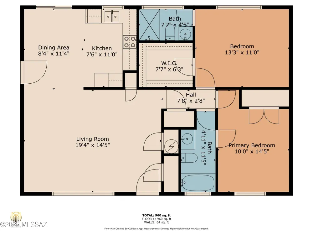 - Total bathrooms: 2