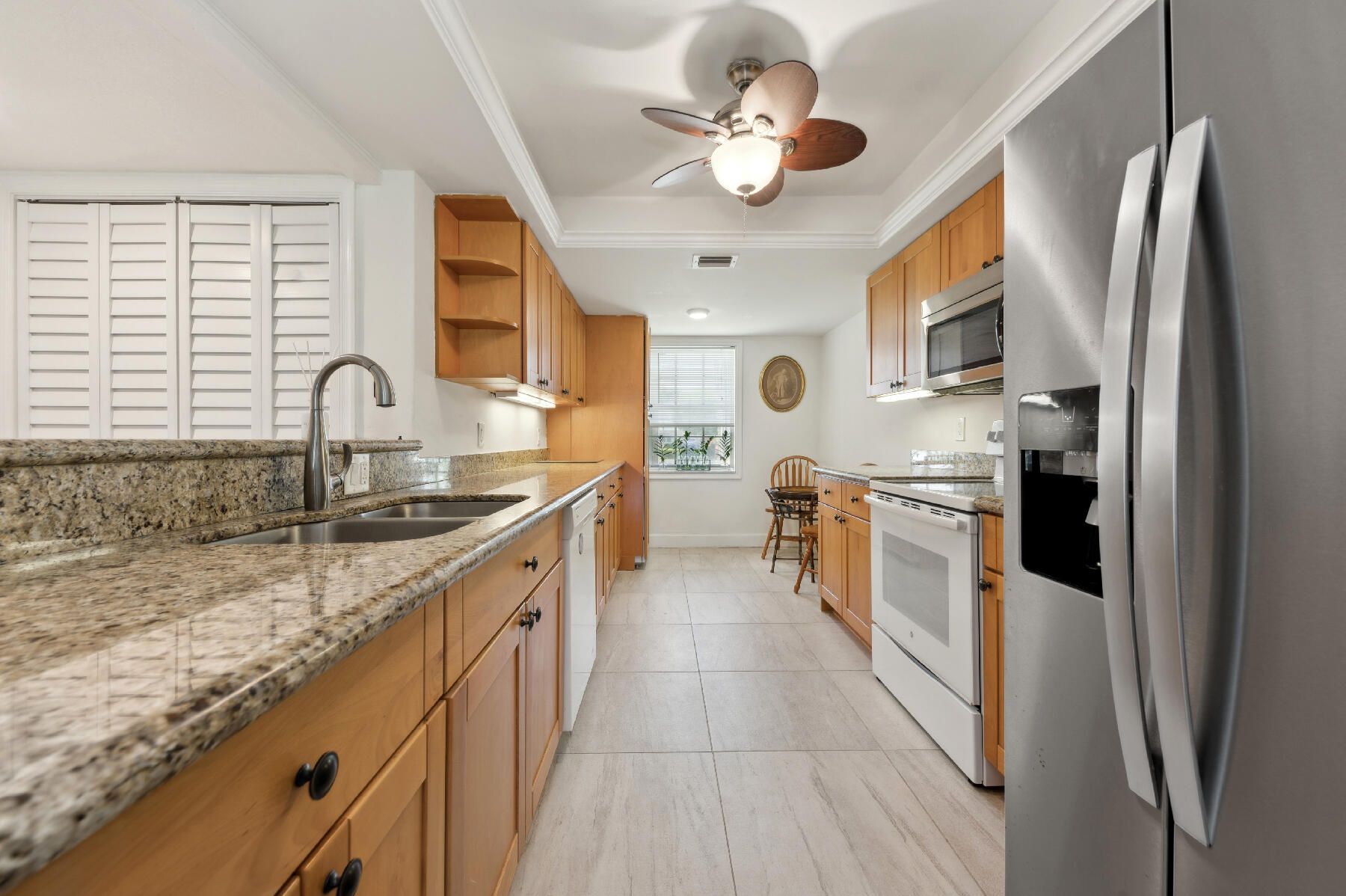 Welcome to Your 55+ Coastal Sanctuary. Experience the best of FL living in this beautiful 3 bed, 2 bath condo situated steps from the Intracoastal Waterway. This condo offers a blend of comfort and waterfront access for those dreaming of life by the water. Inside you'll find porcelain tile throughout, a kitchen with wood cabinetry, granite countertops, along with an in-unit washer/dryer for your convenience. Both bathrooms are tastefully updated and feature walk-in showers. Step outside and enjoy the Intracoastal View and direct access to a boat dock just steps from your patio. The dock is available for rent and can accommodate boats up to 35ft, making it perfect for boating enthusiasts. When you're ready to feel the sand between your toes, the beach is just a short walk to the East.