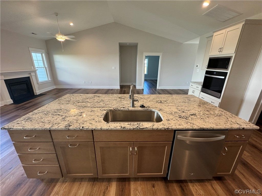- Bedroom on Main Level, Dining Area, Fireplace, Granite Counters, High Ceilings, Kitchen Island, Bath in Primary Bedroom, Main Level Primary, Pantry, Recessed Lighting, Walk-In Closet(s)