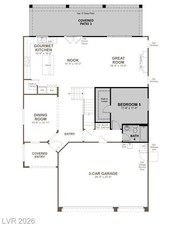 * Brand New Richmond American Designer Home * - Features Include - 9' ceilings w/8' doors throughout, first-floor bedroom w/full bath, walk-in shower at primary bath, extended covered patio w/center-meet sliding doors, 8' garage doors, Smart wifi programmable thermostat, BBQ stub, soft water loop, gourmet kitchen config. w/GE stainless-steel appliance pkg., Premier maple cabinets w/almond finish and 42" uppers; upgraded quartz kitchen and bath countertops, tile backsplash at kitchen, upgraded stainless-steel kitchen sink and matte black faucet, add'l. ceiling fan prewires, upgraded matte black bath faucets and accessories, upgraded carpet and ceramic tile flooring throughout; laundry sink and cabinets, Mission style stair rails, video doorbell, + more!