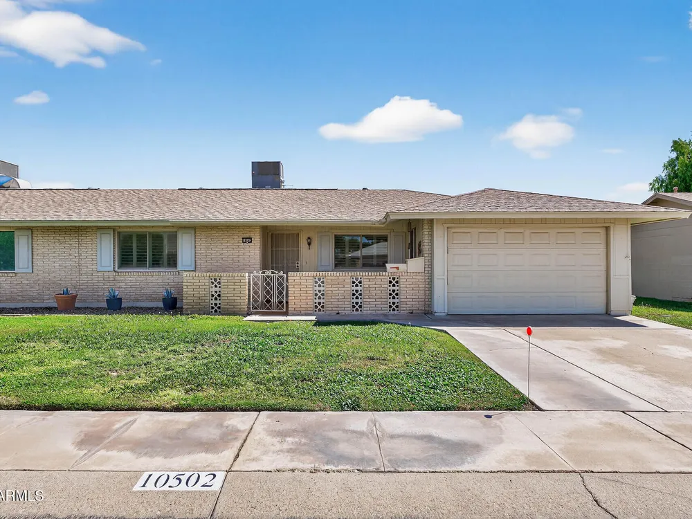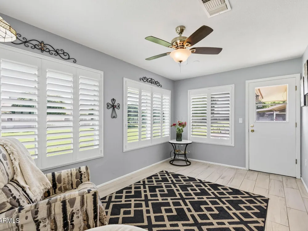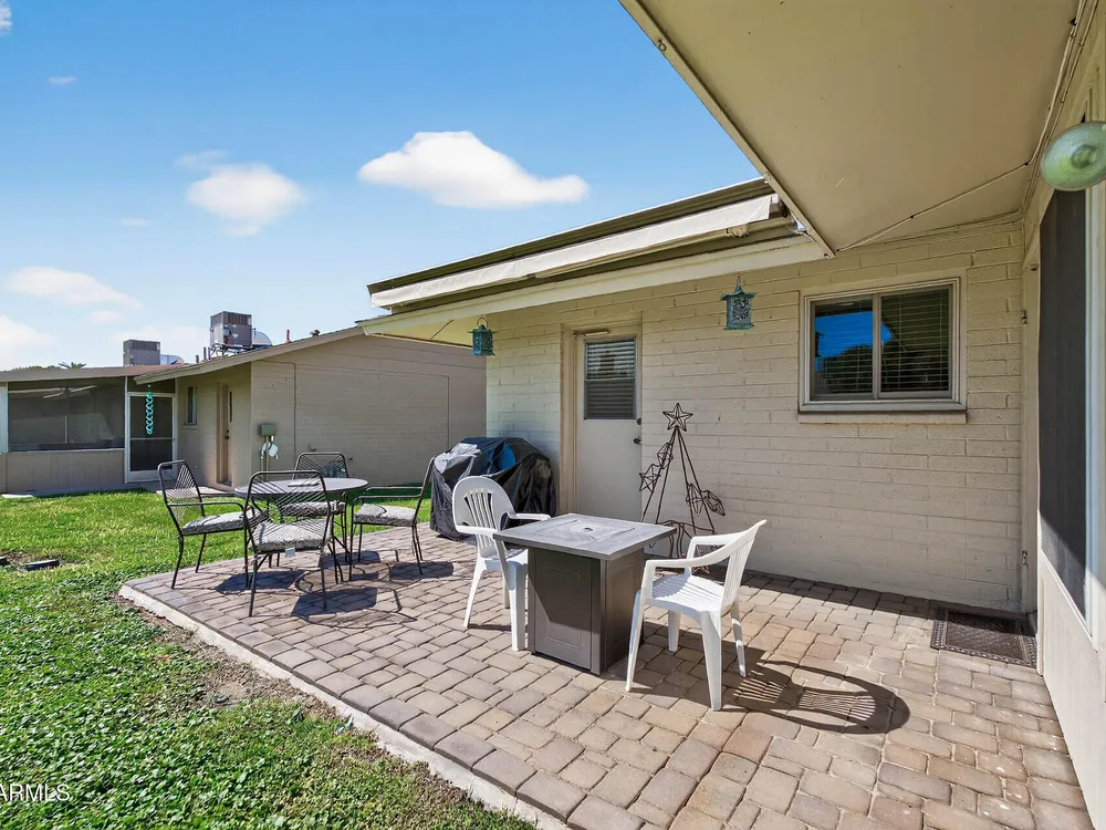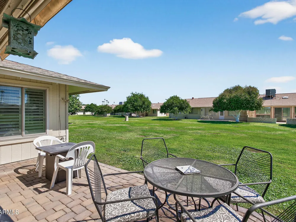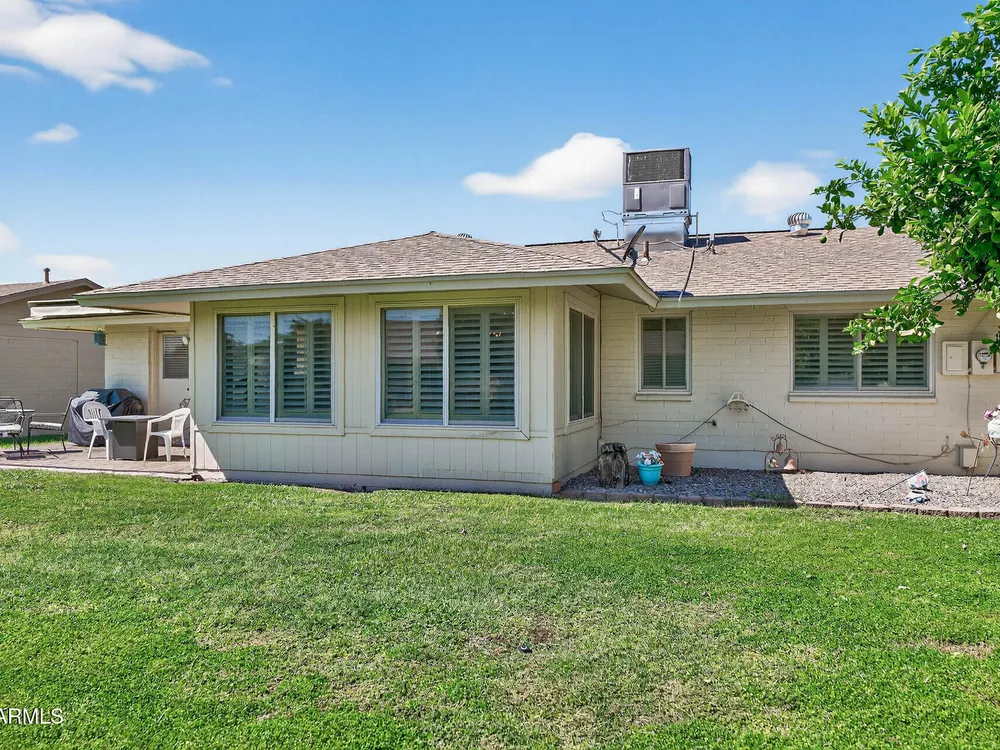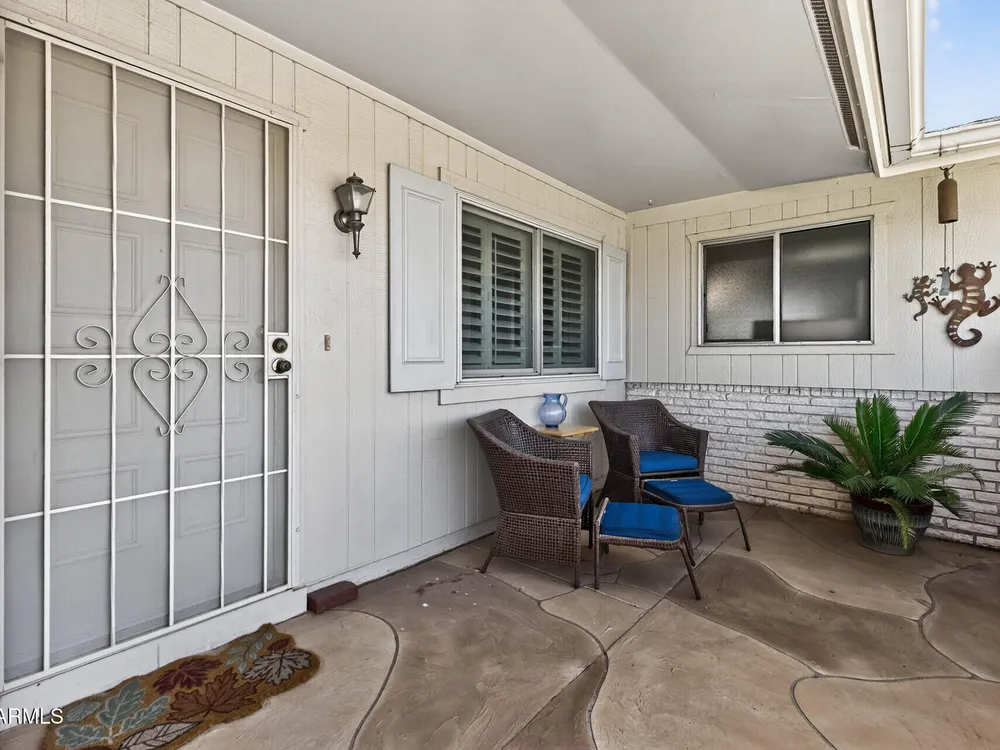 Welcome to the Castle Supreme meets Taj Mahal of Sun City, a completely remodeled, move-in ready retreat showcasing high-end finishes throughout. This 2-bedroom, 2-bath gem features Anderson windows, shutters throughout, custom paint and a seamless blend of ceramic tile & upgraded carpet. The custom kitchen boasts quartz countertops, a farm sink, updated appliances and pull-out pantry shelves, while the bathrooms sparkle with elegant custom vanities. A tankless water heater, single-car garage, and remote-controlled retractable awning add comfort and convenience. Move outside to enjoy your private patio, or head just minutes away to golf, tennis, pickleball, bowling, shopping, dining, hospitals & clinics. Truly a rare opportunity — your Castle Supreme and Taj Mahal combined into one home!