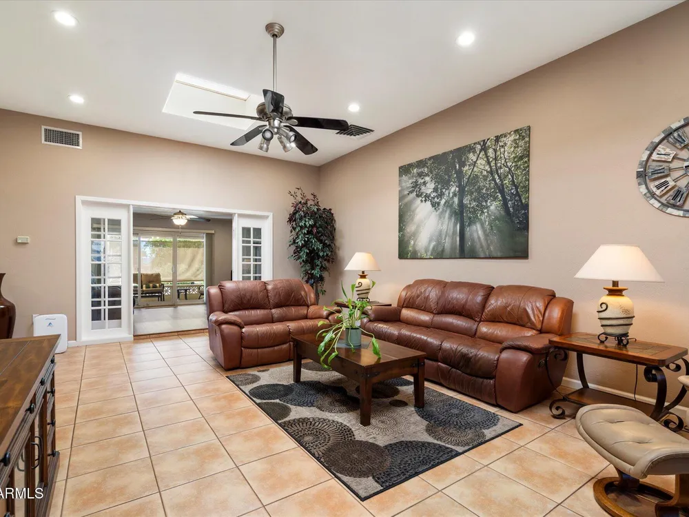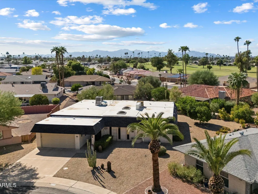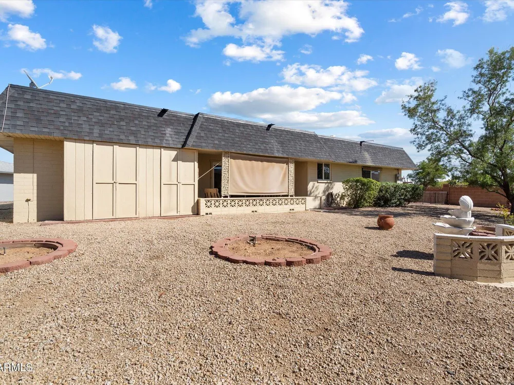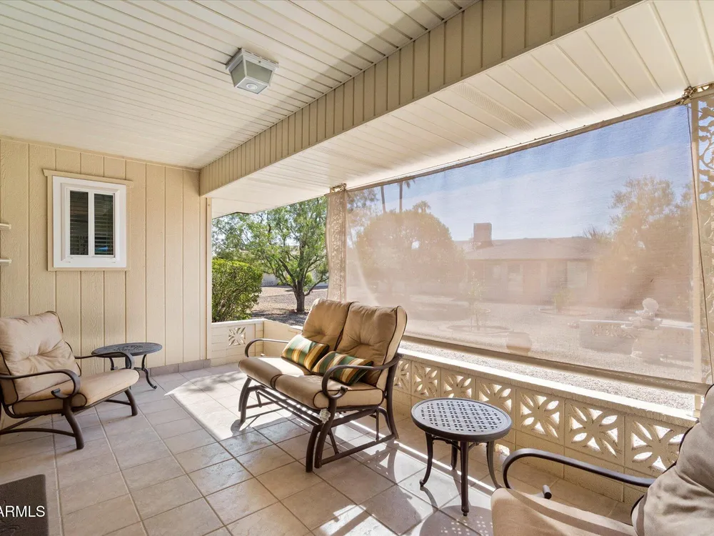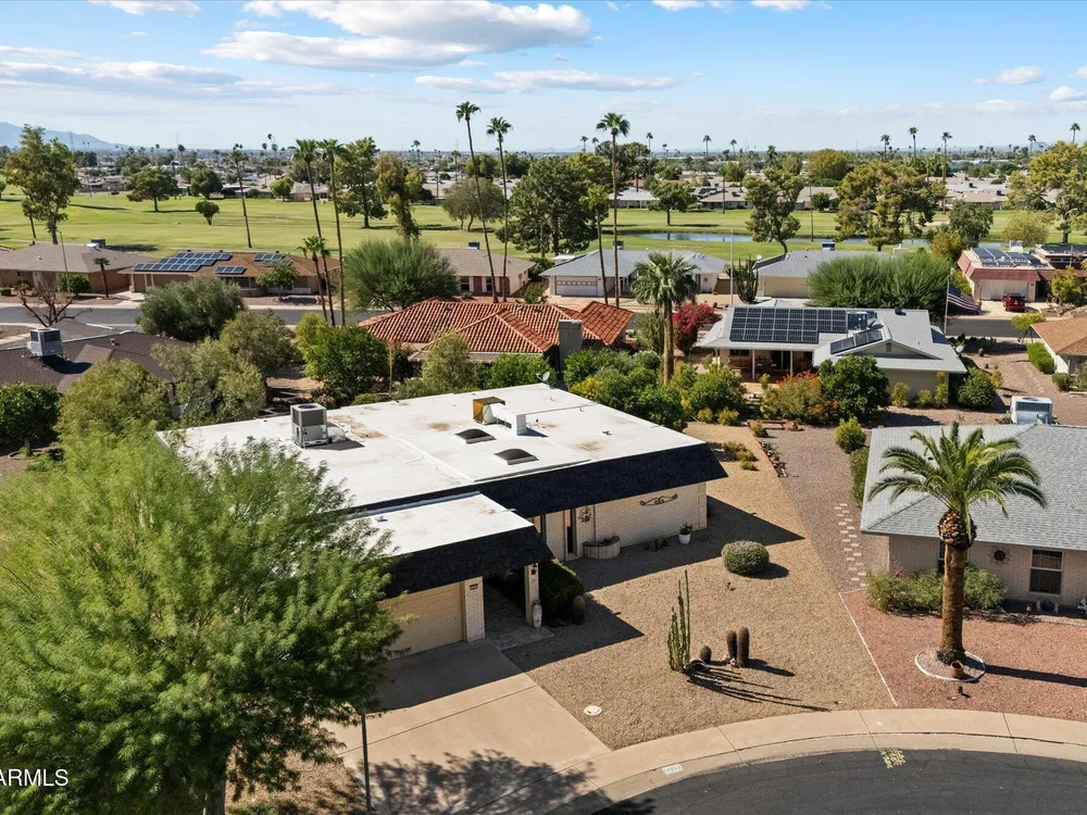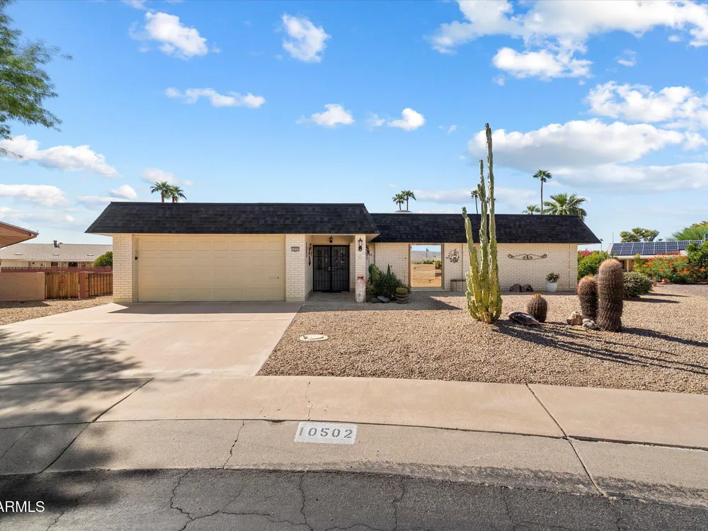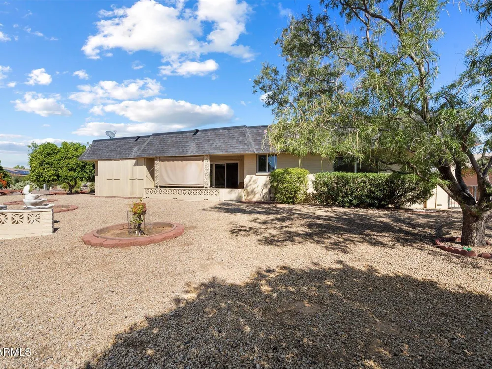 Extremely clean and well-maintained, this single-story block home is nestled in the desirable 55+ Sun City community! Step through elegant double doors into a bright and open family room featuring tall ceilings, skylights, tile flooring, and a cozy gas fireplace. The versatile floor plan includes a formal living and dining room with wood-look vinyl plank flooring, a stylish powder room, and a separate office (3rd bedroom) with French doors. The kitchen boasts granite countertops, white cabinetry, tile backsplash, stainless steel appliances with gas cooking, built-in microwave, walk-in pantry, and a sunny breakfast nook. Both bedrooms include ensuite baths and plenty of closet space, while the spacious primary suite offers a walk-in closet, built-in cabinetry, and a vanity area. Enjoy indoor-outdoor living with a covered back patio featuring tile flooring and sunshade, plus a charming side courtyard off the dining room. Sitting on a huge 10,000+ sq ft lot, this home also offers a 2-car garage with built-ins, whole-home water filtration, and numerous updates: new dishwasher (2021), roof recoated (2023), A/C (2021), water heater (2021), vinyl flooring (2020), kitchen remodel (2018), master bath remodel (2022), and upgraded electrical panel (2018). Conveniently located near recreation centers, golf, lakes, and medical facilitiesthis home combines comfort, function, and Sun City living at its best! Most furniture available on a separate bill of sale. Welcome to your next chapter in Sun City, AZ where 55+ living meets resort-style amenities. This vibrant community gives you unlimited access to 7 recreation centers, 7 golf courses, 18 lighted tennis courts, 9 swimming pools, and a 25,000-square-foot fitness center. Dive into arts, woodworking, ceramics, computers, and more in the many clubs and activity spaces. With miles of walking paths, year-round classes, and a calendar bursting with social events, you've got all the ingredients for fun, friendship, and wellness right at your doorstep.