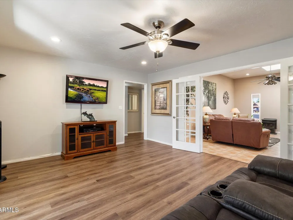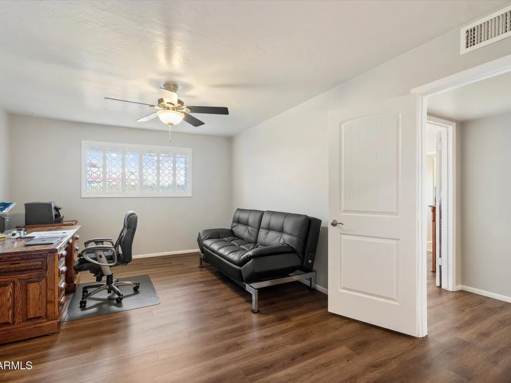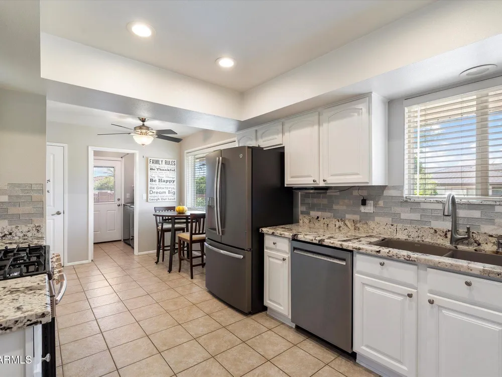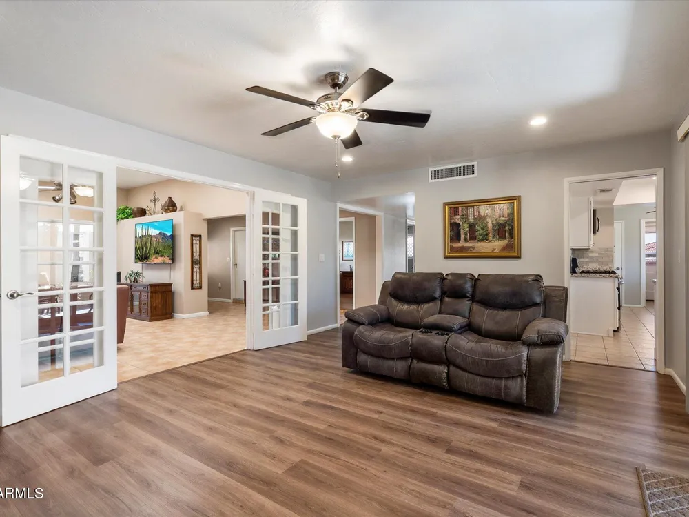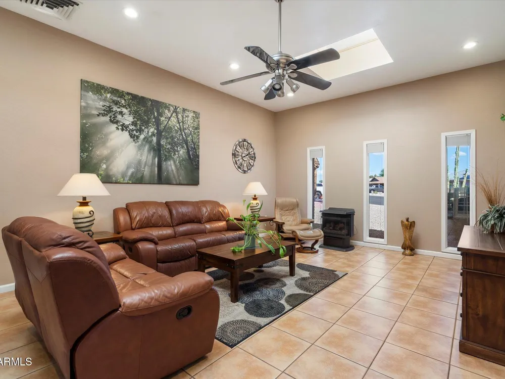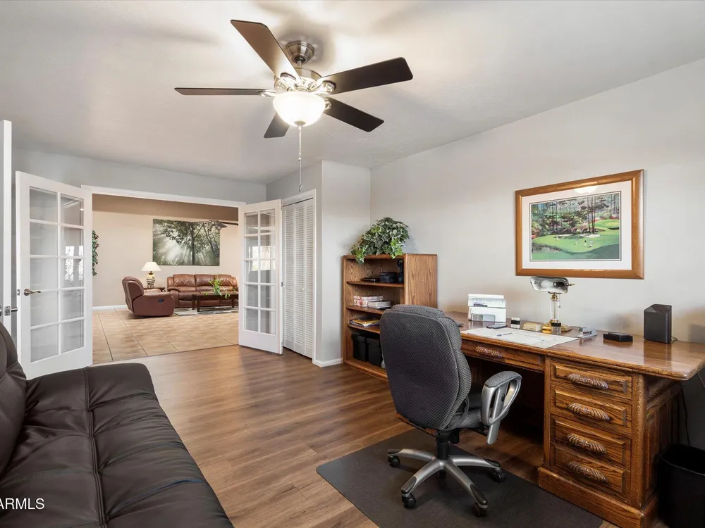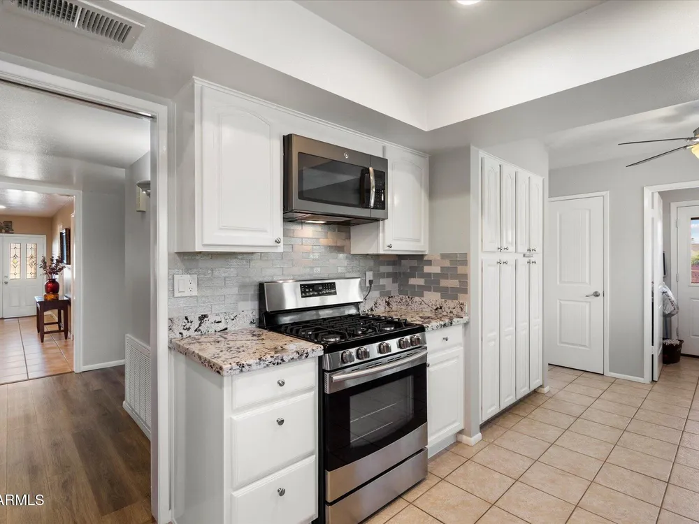 Extremely clean and well-maintained, this single-story block home is nestled in the desirable 55+ Sun City community! Step through elegant double doors into a bright and open family room featuring tall ceilings, skylights, tile flooring, and a cozy gas fireplace. The versatile floor plan includes a formal living and dining room with wood-look vinyl plank flooring, a stylish powder room, and a separate office (3rd bedroom) with French doors. The kitchen boasts granite countertops, white cabinetry, tile backsplash, stainless steel appliances with gas cooking, built-in microwave, walk-in pantry, and a sunny breakfast nook. Both bedrooms include ensuite baths and plenty of closet space, while the spacious primary suite offers a walk-in closet, built-in cabinetry, and a vanity area. Enjoy indoor-outdoor living with a covered back patio featuring tile flooring and sunshade, plus a charming side courtyard off the dining room. Sitting on a huge 10,000+ sq ft lot, this home also offers a 2-car garage with built-ins, whole-home water filtration, and numerous updates: new dishwasher (2021), roof recoated (2023), A/C (2021), water heater (2021), vinyl flooring (2020), kitchen remodel (2018), master bath remodel (2022), and upgraded electrical panel (2018). Conveniently located near recreation centers, golf, lakes, and medical facilitiesthis home combines comfort, function, and Sun City living at its best! Most furniture available on a separate bill of sale. Welcome to your next chapter in Sun City, AZ where 55+ living meets resort-style amenities. This vibrant community gives you unlimited access to 7 recreation centers, 7 golf courses, 18 lighted tennis courts, 9 swimming pools, and a 25,000-square-foot fitness center. Dive into arts, woodworking, ceramics, computers, and more in the many clubs and activity spaces. With miles of walking paths, year-round classes, and a calendar bursting with social events, you've got all the ingredients for fun, friendship, and wellness right at your doorstep.