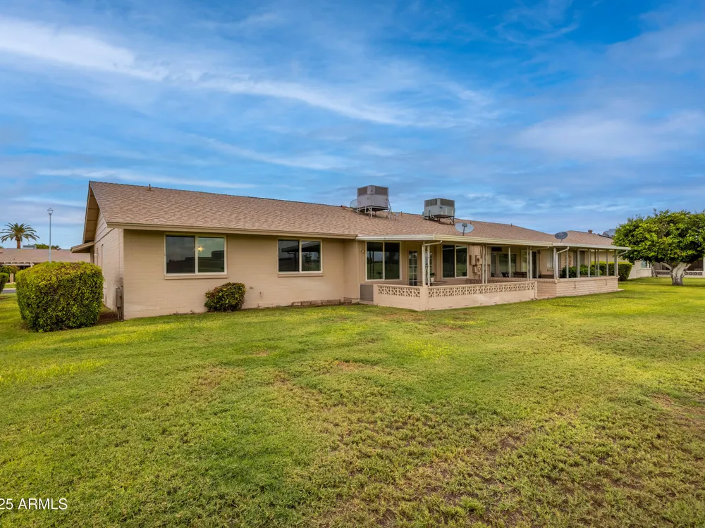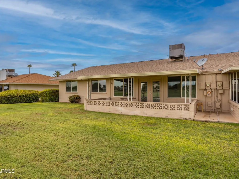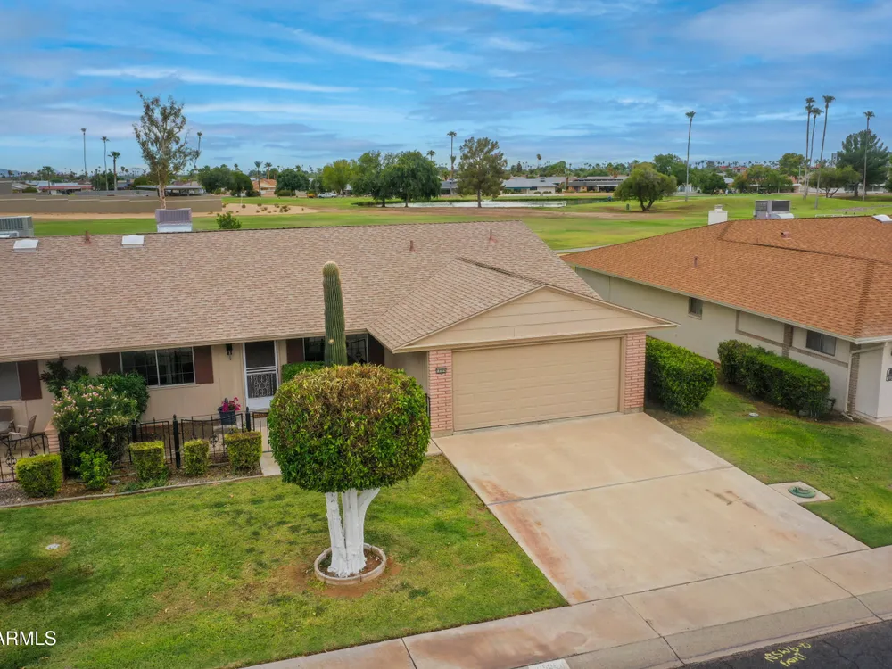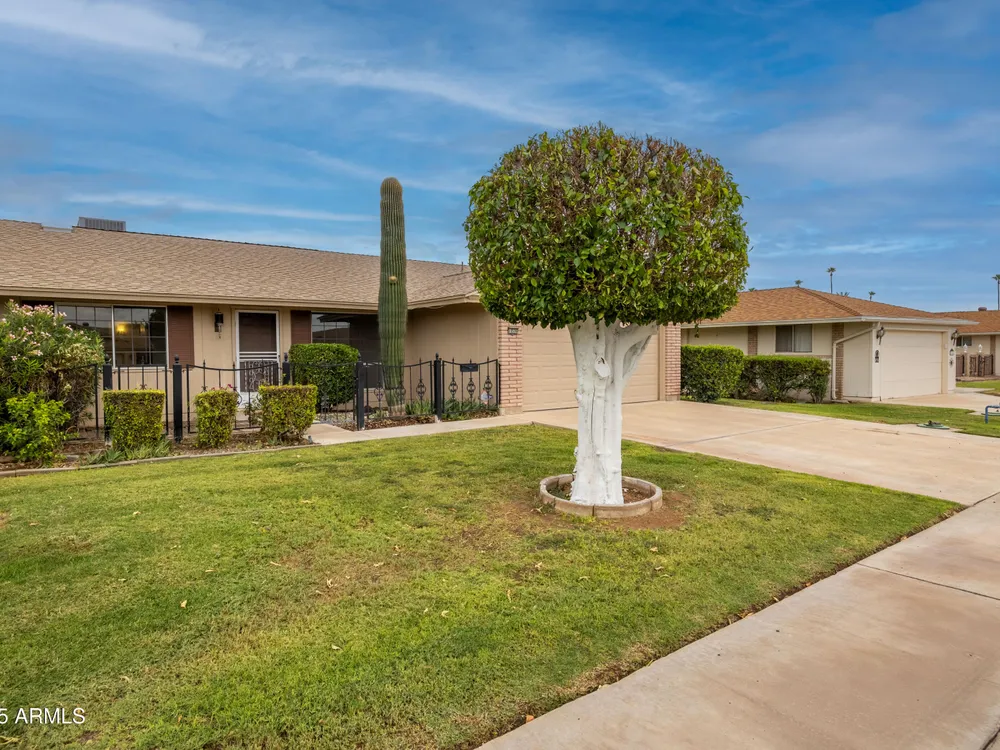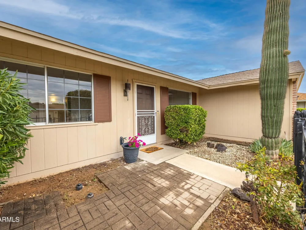 GORGEOUS GOLF COURSE GEMINI IN THE HEART OF SUN CITY! PRIVATE COURTYARD ENTRANCE. OPEN, BRIGHT KITCHEN FEATURES WHITE CABINETS, QUARTZ COUNTER TOPS, STAINLESS STEEL APPLIANCES ALL IN '25. BOTH BATHROOMS REMODELED IN '25. PRIMARY BATHROOM HAS A ZERO ENTRY SHOWER TOO! CARPET/TILE IN '25. DUAL PANE WINDOWS ON GOLF COURSE SIDE & FRENCH DOOR LEADING TO COVERED PATIO. TWO CAR GARAGE WITH ATTACHED CABINETS. HVAC-'16. SEWER REPLACEMENT IN '25. YOU WILL LOVE THIS PLACE!!