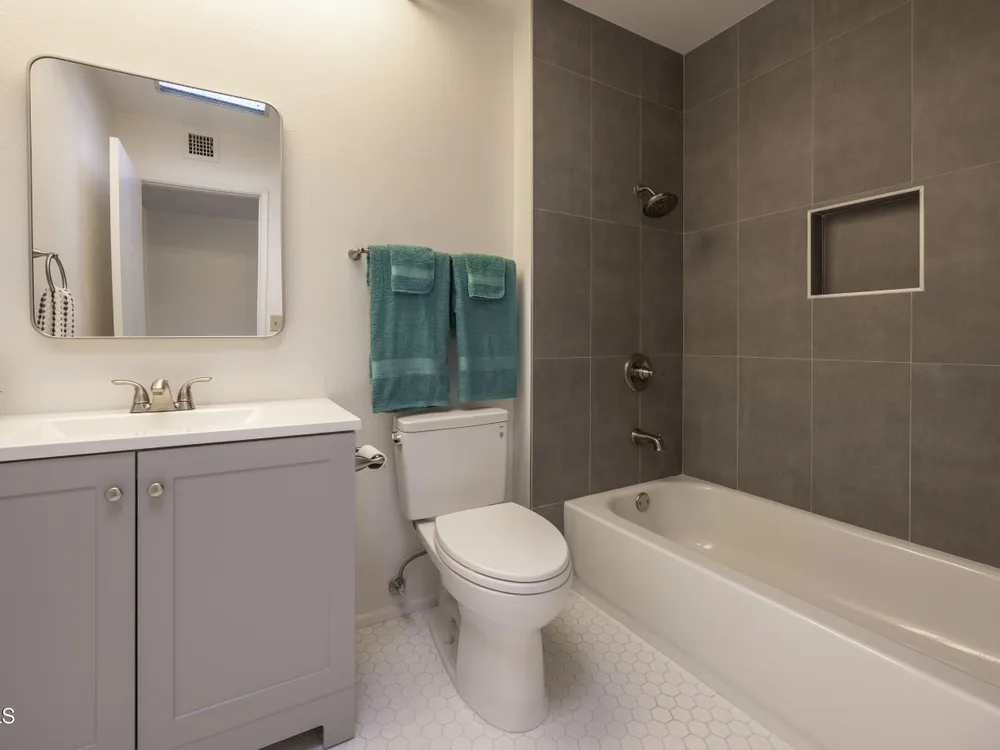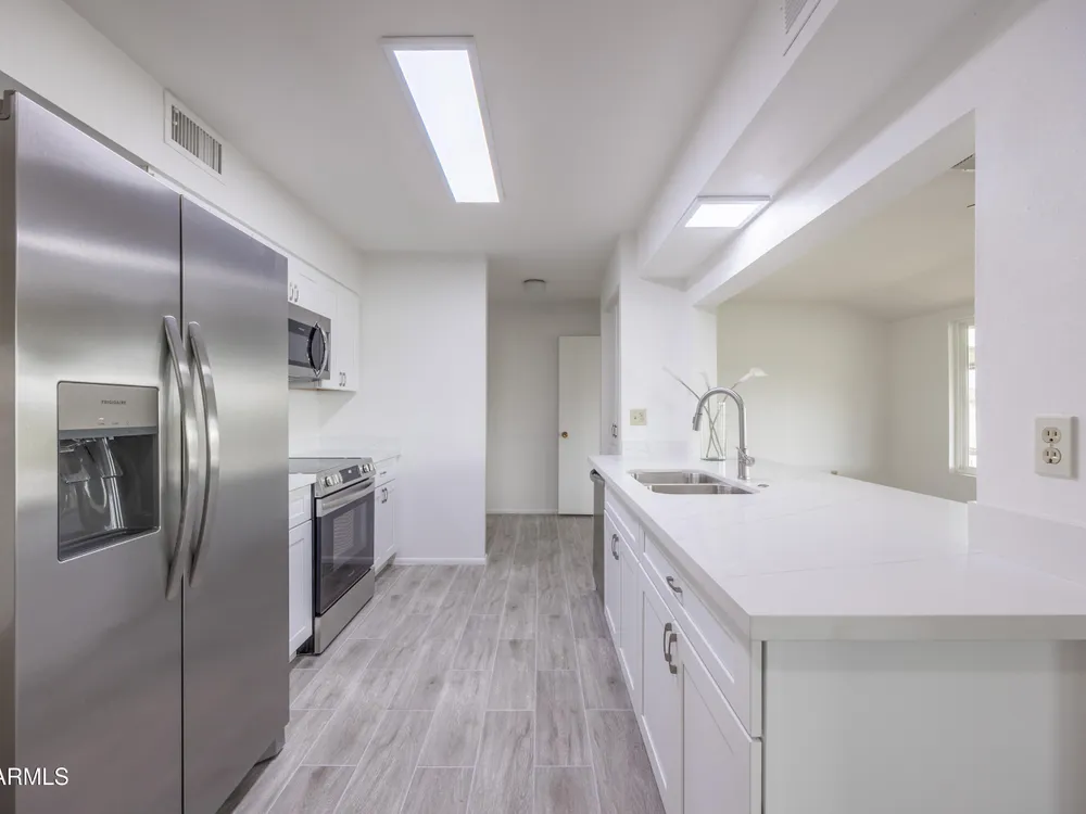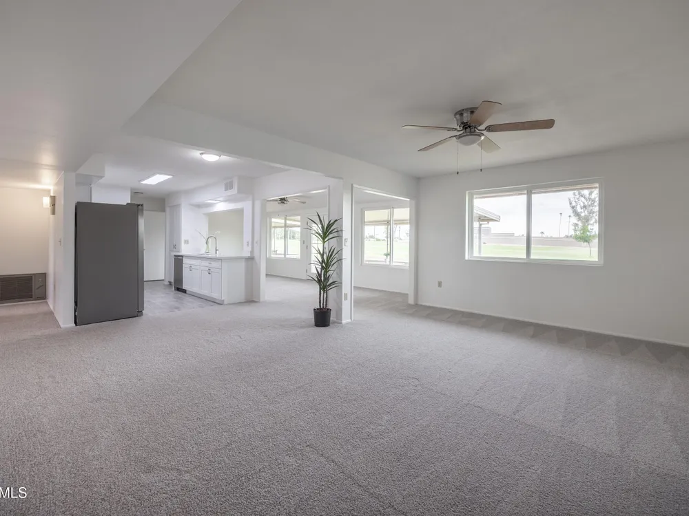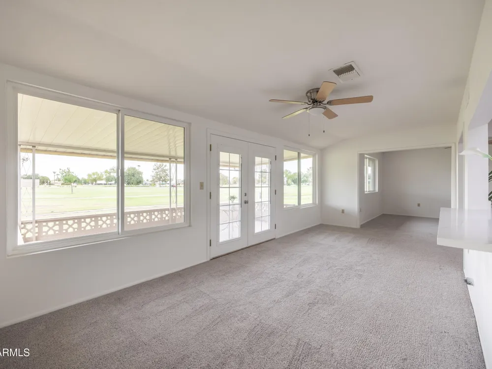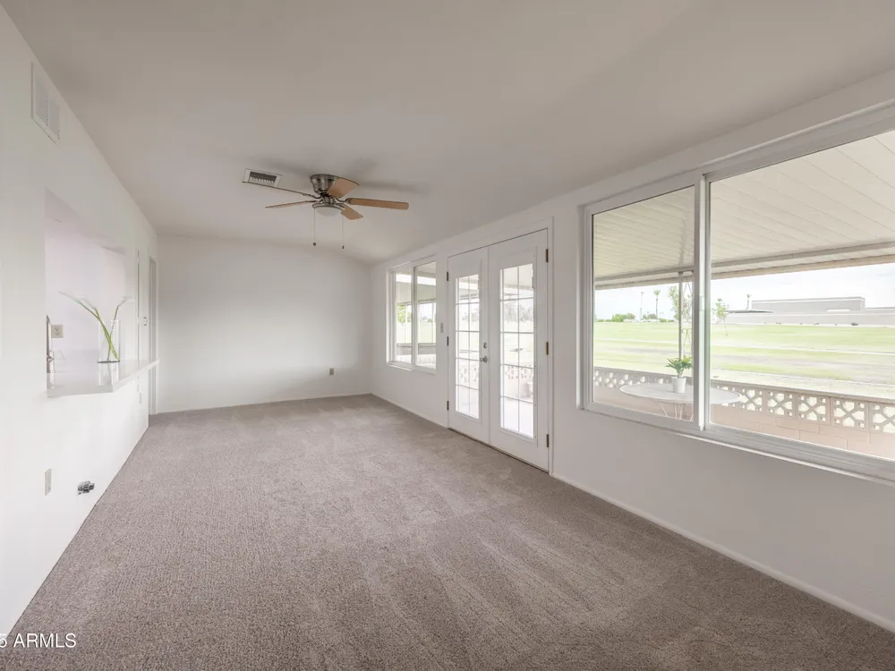 GORGEOUS GOLF COURSE GEMINI IN THE HEART OF SUN CITY! PRIVATE COURTYARD ENTRANCE. OPEN, BRIGHT KITCHEN FEATURES WHITE CABINETS, QUARTZ COUNTER TOPS, STAINLESS STEEL APPLIANCES ALL IN '25. BOTH BATHROOMS REMODELED IN '25. PRIMARY BATHROOM HAS A ZERO ENTRY SHOWER TOO! CARPET/TILE IN '25. DUAL PANE WINDOWS ON GOLF COURSE SIDE & FRENCH DOOR LEADING TO COVERED PATIO. TWO CAR GARAGE WITH ATTACHED CABINETS. HVAC-'16. SEWER REPLACEMENT IN '25. YOU WILL LOVE THIS PLACE!!