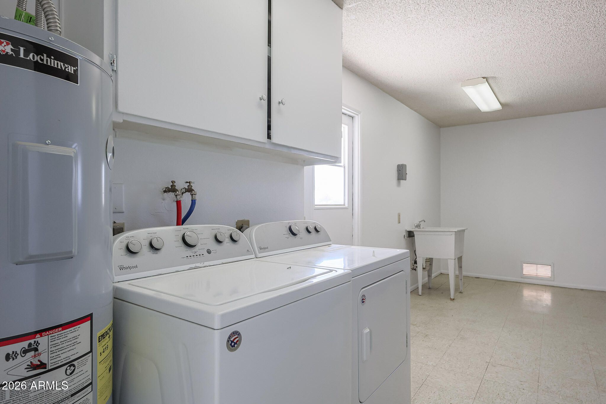 Location, Location, Location! Conveniently located yet quietly tucked away, this well-maintained 2-bedroom, 1.75-bath home offers comfort, style, and easy living close to shopping and activities. The home has been completely repainted, including the kitchen cabinets and garage, and features beautiful new flooring in all the right areas. Both bathrooms have new vanities and updated lighting fixtures, giving the home a fresh, modern feel. Enjoy relaxing in the large enclosed lanai with windows, adding approximately 300 sq. ft. of additional living space--perfect for entertaining or enjoying Arizona's sunshine year-round. The inviting front entry features a flagstone concrete topper, adding great curb appeal. Additional features include: " Bedroom ceiling fans " Whirlpool side-by-side refrigerator with ice maker " Whirlpool dishwasher " New hardware " Neutral color palette " 50-gallon hot water heater The garage includes storage cabinets and a utility tub, while the low-maintenance landscaping makes this home easy to care for and enjoy. This move-in ready home truly has so much to offer in a fantastic location!