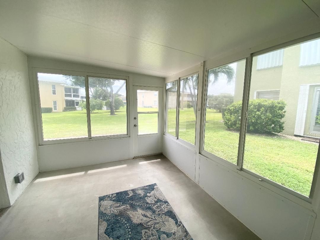PINES OF DELRAY. Rarely available 1st floor corner with 3 distinct outdoor patios! This 2 - bedroom -2 bath residence spans an impressive 1167 sqft under air that's protected by ALL 2022 installed impact glass windows and impact sliding doors. There's sliding door access onto the 2022-built 16 x 10 screened patio with 4 sets of 58'' tall slider windows. Plus there's the 15 x 10 open patio and the 13 x 8 under roof patio. The interior also boasts 17.5 x 17.5 ceramic tile in main living areas and PERGO laminate planks in master bedroom. This is complemented by contemporary wall colors, mostly 5.6'' baseboards, crown molding and tract lighting in the living room/dining area. The ''smooth ceiling'' kitchen boasts a granite countertop, tile backsplash, 9'' deep s/s sink and 2022/23 appliances Welcome to the Pines of Delray, a vibrant 74-acre active adult community featuring 115 meticulously maintained buildings with a total of 684 residences. Developed by Melrose Development Ltd between 1974 and 1978, this community boast two clubhouses, two heated pools, fitness rooms and courts for tennis, pickleball, and bocce. With newly painted exteriors and new roofs installed in 2025 using CERTAINTEED "cobblestone gray" Landmark designer shingles, the Pines of Delray is both aesthetically pleasing and structurally sound. Located just 2.6 miles from the Atlantic Ocean and a 3.5 mile drive to "Downtown" Delray Beach' with its botique shopping, over 120 dining options and cultural venues, this community offers an ideal blend of relaxation and convenience. The Pines of Delray is situated within the city limits of Delray Beach, ensuring that its 26 streets and street lights are well-maintained by the city. You'll enjoy an active lifestyle in a welcoming environment that prioritizes comfort and accessibility. 2025 MONTHLY MAINTENANCE FEE: $595 The $595 includes water & sewer, fiber optic cable, in-unit WIFI (internet access), fully funded reserves ($56.65 of the $595/M goes to reserves ) and usage of 2 recreational centers and sports activity courts. Those buyers concerned about future special assessments please keep in mind that -unlike some other nearby communities- all roofs were just replaced, all building exteriors were just painted, the city maintains the roads and street lights and the clubhouses are not in need of renovation. 2025 ANNUAL REAL ESTATE TAXES: $3224 (Without exemptions) As a resident of Delray Beach you are eligible for a "City Resident Downtown Parking Permit" for $12/year. The permits allow for free parking seven days a week in designated garages, surface lots and side-streets in Downtown Delray. For beach usage parking you may be eligible for the Senior Beach Permit for $95/yr. The permit allows for free parking at the the following locations without paying meter fees: Sandoway Park; Anchor Park; Ingraham Park; Orange Grove; Atlantic Dunes North & South Lots and Ocean Blvd/State Road A1A - South of Miramar Dr and North of Atlantic Ave. BUYER GUIDELINES: At least one approved occupant must be 55+; approved co-occupants must be 18+, but can only be in residence when a 55+ approved occupant is in residence at the same time; up to 2 indoor cats, 2 caged birds and tropical fish are welcome as pets; emotional support dogs and service dogs are also eligible; owner and guest parking is limited to automobiles, SUVs, fully windowed passenger vans; motorcycles and small personal non-commercial open bedded pickup trucks (with no visible signage, tools or equipment); all vehicles must fit within the white stripes of parking spaces in both length and width; after 18 months of ownership owners are eligible to lease out their unit (approved leases must be for a 4 month minimum) and only one lease is allowed per 12 month period); title to a property cannot be taken by an LLC, a corporation, business trust, business partnership or business co-ownership; however title can be in a personal or family trust, a non-business partnership or co-ownership, a life estate or a Lady Bird Deed; a minimum credit score of 650 is required of all buyers on the purchase contract; no business can be run out of a unit where customers or clients come to the unit or onto the common grounds; no smoking is permitted on catwalks, stairwells or non-enclosed patio areas in back or in front of a unit; seller financing or private financing is not permitted; you can have guests stay in the unit without the owner being present for a maximum of 30-days per calendar year; wind-chimes or other types of noise-makers cannot be hung on the exterior of buildings. **************** The information provided on these pages is not warranted nor guaranteed as 100% accurate. It is subject to inadvertent error, omission, miscalculation, misinterpretation and misinformation. It has not been independently verified that all the features indicated for the appliance, equipment and flooring actually exist-as the features are taken from the manufacturer's on-line specs about that model number and features may have been modified or eliminated by the manufacturer without updating the information on-line. All measurements, dimensions, capacities, sizes, monetary figures, rules & regulations, city of Delray Beach amenities and buyer guidelines shown are not warranted nor guaranteed and need to be independently verified. This highly sought-after 1st floor corner residence offers 2 bedrooms and 2 full baths across an impressive 1,167 square feet. The layout includes a spacious 17-foot long eat-in kitchen and a generous 29-foot long living room/dining area, perfect for entertaining. The master bedroom features two walk-in closets and a linen closet, while the second bedroom is conveniently located next to its own full bathroom. Enjoy outdoor living with THREE PATIOS, including a 2022 built 16' x 10' screened patio that is accessed through impact sliding glass doors. Designed for relaxation and year-round usage, the patio has 4 sets of 58" tall acrylic sliding w