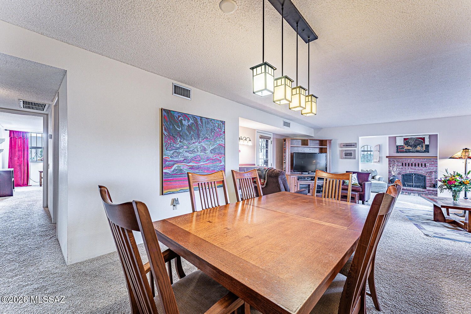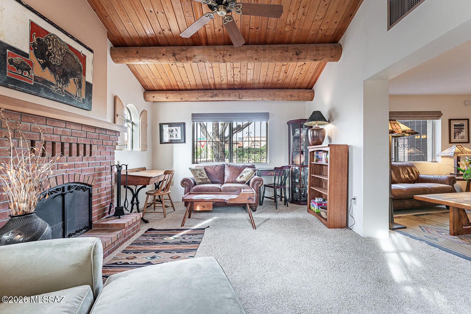 This charming stand-alone residence is nestled in a vibrant retirement community & offers a Unique Bonus Room and a Cozy Fireplace. An ideal blend of comfort & convenience, it's perfect for full-time living or seasonal enjoyment. Step into a beautiful entry and a welcoming courtyard that hints at the lovely outdoor spaces. A spacious corner lot ensures privacy, ample room for relaxation, and entertainment. The backyard patio boasts stunning mountain views for peaceful Arizona sunsets. An expansive great room with a designated dining area serves as the heart of the home, with an additional bonus room that can easily become an office, den, or media room with a cozy fireplace and charming windows. The bonus room invites natural light to fill the space.