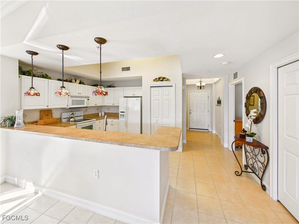 Don’t miss this one! This rarely available, 3-bedroom residence delivers space, comfort, and long-term value. This top-floor, end unit stands out immediately with vaulted ceilings that create an open, airy feel and an abundance of natural light. Being an end unit means extra windows and a noticeably peaceful atmosphere—perfect for relaxed Florida living. The atmosphere is light, bright, peaceful and private, making it easy to relax and unwind the moment you step inside. The spacious balcony is the perfect setting to enjoy the shimmering lake views, mature trees, and serene natural scenery that create a true sense of calm. The home is offered furnished, so you can settle in effortlessly or continue using it as a turnkey investment. An added bonus? Seasonal renters are already in place, providing instant income from day one—an ideal setup for buyers looking to offset expenses or ease into ownership. Large closets and a dedicated laundry room offer convenience and extra storage space, in addition to a dedicated storage unit near the elevators. And then there’s the lifestyle. Pelican Preserve, widely regarded as Fort Myers’ premier 55+ community, is known for its vibrant, friendly atmosphere and unmatched amenities. The Town Center features a 99-seat theater, live entertainment, a woodworking shop, and a butterfly garden. Stay active with a full fitness center, indoor and outdoor lap pools, walking paths, and a resort-style pool with on-site dining and a poolside bar. Golf enthusiasts will appreciate the championship golf course with optional membership, while miles of walking trails, scenic ponds, conservation areas, farmers’ markets, concerts, car shows, and endless social events make it easy to stay as active—or as relaxed—as you choose. Three-bedroom, top-floor end units in this setting are rarely available, especially with income already in place. This is more than just a condo—it’s an opportunity to step into a lifestyle that truly feels good, surrounded by beauty, comfort, and one of Southwest Florida’s most sought-after active adult communities. Schedule your private showing today.