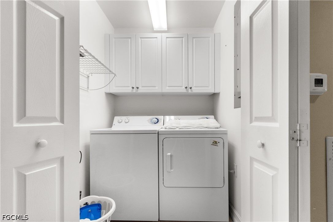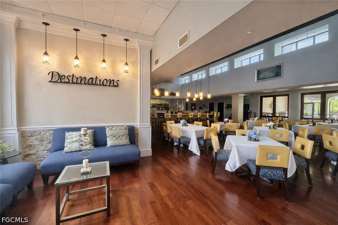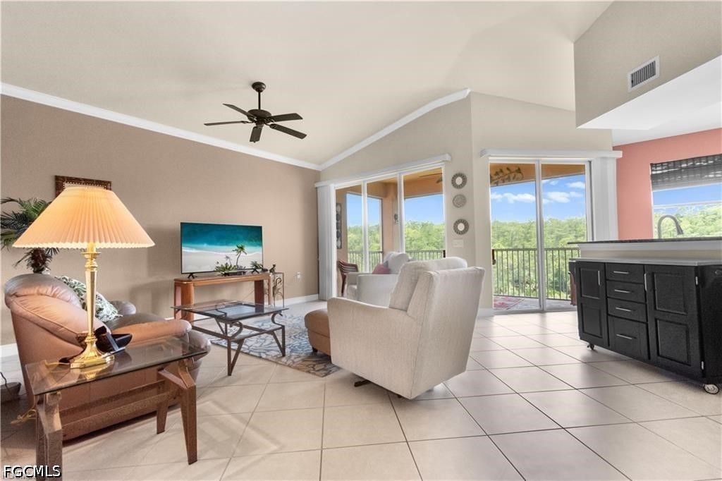 Skip the moving truck, this top-floor corner condo at Pelican Preserve comes completely turnkey, golf cart included! Vaulted ceilings and corner windows flood the space with natural light, and the private lanai looks out over water and preserve, the kind of view you'll never get tired of. A 2021 AC, covered parking, and elevator access keep daily life easy. But the real draw is what's outside your door. Pelican Preserve delivers the kind of amenities most resorts can't match: three pools, 12 pickleball courts, eight Har-Tru tennis courts, a concert pavilion, fitness center, theater, woodworking shop, on-site restaurants and more! Between the clubs, card games, farmers markets, live music, car shows, and a packed events calendar, there's always something going on and someone to do it with. Optional golf memberships available. When you do leave the gates, RSW Airport, top healthcare, dining, and shopping are all within easy reach. Low-maintenance, move-in ready, and priced to reflect the finishes, this one is about the lifestyle, and that part is exceptional.